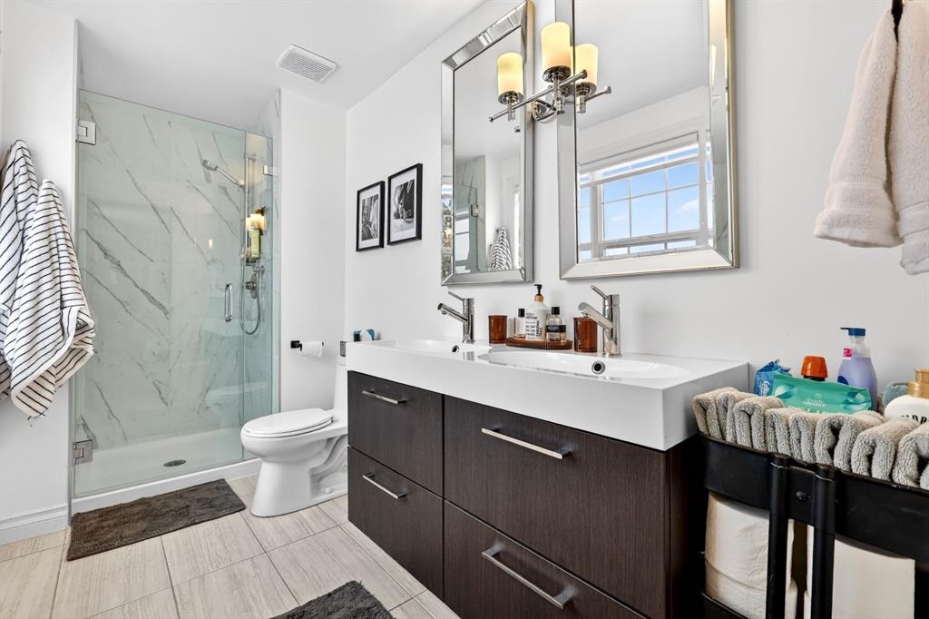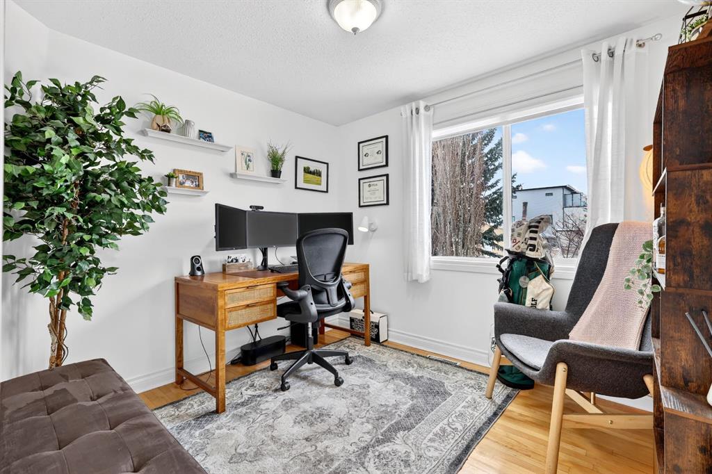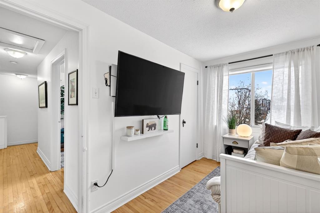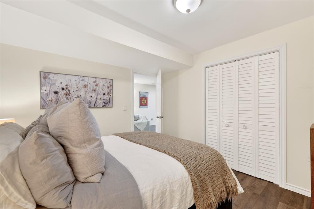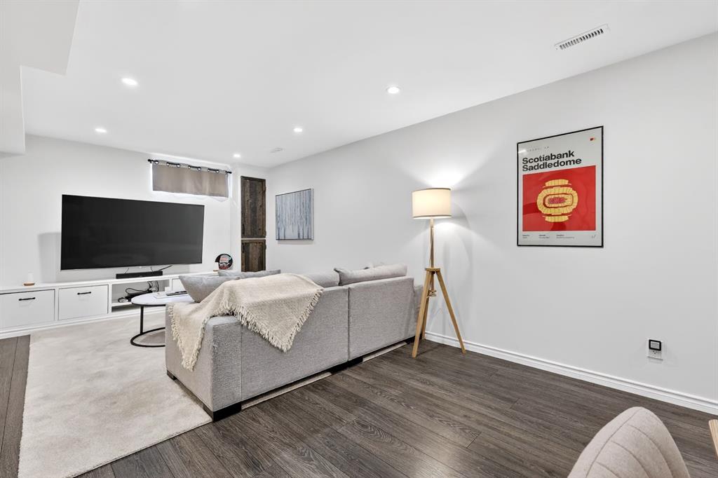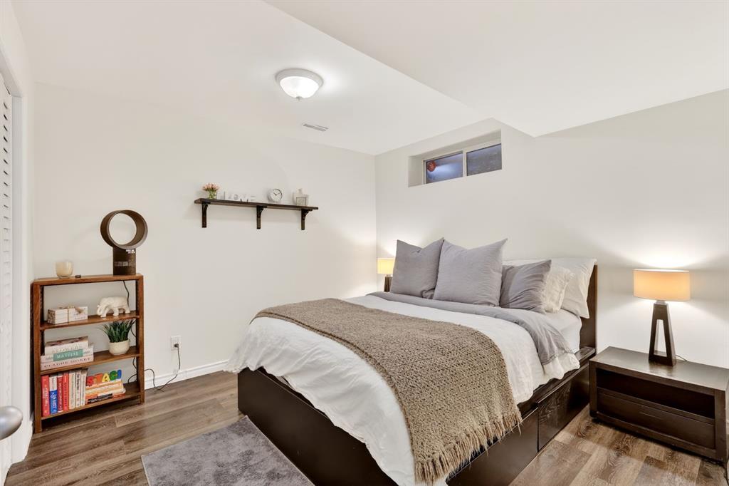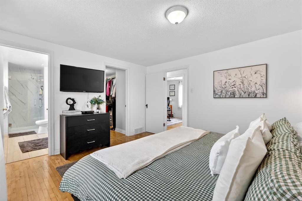 Upstairs offers three bedrooms ideal for a growing family, including a spacious primary retreat complete with a large walk-in closet and a beautiful ensuite featuring dual vanities and a recently renovated shower completed in 2026. Two additional bedrooms and a full 4-piece bathroom complete the upper level. The fully developed lower level adds incredible flexibility with a spacious recreation/media room and an additional non-conforming bedroom, perfect for guests, a home office, or a gym. Outside, enjoy the expansive landscaped south-facing backyard with patio. The property also features an oversized double detached garage plus a rare oversized driveway offering ample additional parking. Ideally located just down the road from a park, close to numerous schools, and only minutes from Calgary’s Downtown Core, this home offers a quick commute and easy access to the vibrant dining and shopping of Marda Loop. Notable improvements since purchase include the primary ensuite shower renovation in 2026, new roof in 2024, vinyl siding in 2024, fence and deck in 2022, interior paint in 2022, and the addition of air conditioning. This is a move-in ready home combining location, lifestyle, and thoughtful upgrades, presenting an exceptional opportunity in Garrison Woods.