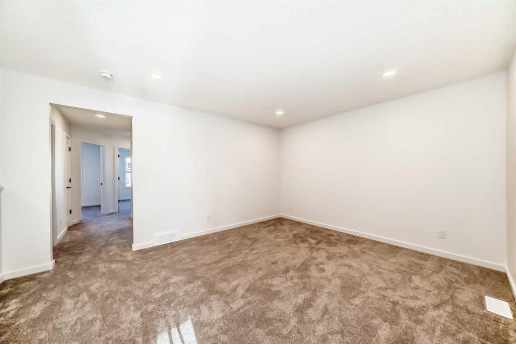 THIS IS THE FLOOR PLAN YOU CHOOSE – The Yorkshire at 63 Creekside Path is wide, deliberate, and refreshingly different. On the main floor, the kitchen is built for use – The WATERFALL QUARTZ ISLAND earns its place as the command centre, backed by FULL-HEIGHT CABINETRY and DUAL PANTRY CABINETS that keep counters clear without trying. A 5-BURNER GAS COOKTOP and CHIMNEY HOOD handle real cooking, while the integrated wall oven and microwave stack keep the space clean and intuitive. The upgraded 3 PANEL PATIO DOOR pulls light across the dining area and makes the deck feel like part of everyday life, not a seasonal accessory. The main floor layout offers that open concept vibe that brings in natural light and ambience, while the configuration still offers plenty of space for each area to have its own unique zone. Function and style become the top priorities with a spacious front entry, a pantry & mudroom walkthrough to the garage, and everything you need in the right place. Upstairs gets the layout right. FOUR BEDROOMS cluster around a CENTRAL BONUS ROOM that works as a true hub. The primary bedroom is positioned as its own zone—connected, but clearly protected, with an ensuite that finishes things properly: soaker tub under the window, dual sinks for peaceful mornings, and an upgraded tiled shower with bench that feels intentional. Three well proportioned secondary bedrooms keep the floor flexible for kids, guests, or work from home needs, and the upper laundry with cabinetry and sink – removes one more daily negotiation from the routine. And then there’s the garage—the rare win. A 3 CAR TANDEM layout with extra length finally settles the parking versus storage argument. Vehicles, bikes, bins, tools… it all fits without creative gymnastics. Set in Sirocco at Pine Creek, with PATHWAYS through the coulees, the GOLF COURSE NEARBY, this is a community that’s settling in—while access to Macleod, Stoney, and 22X keeps the city within easy reach. This isn’t about more house. It’s about a house that finally keeps up. Book a showing—you’ll be glad you saw this one in person.