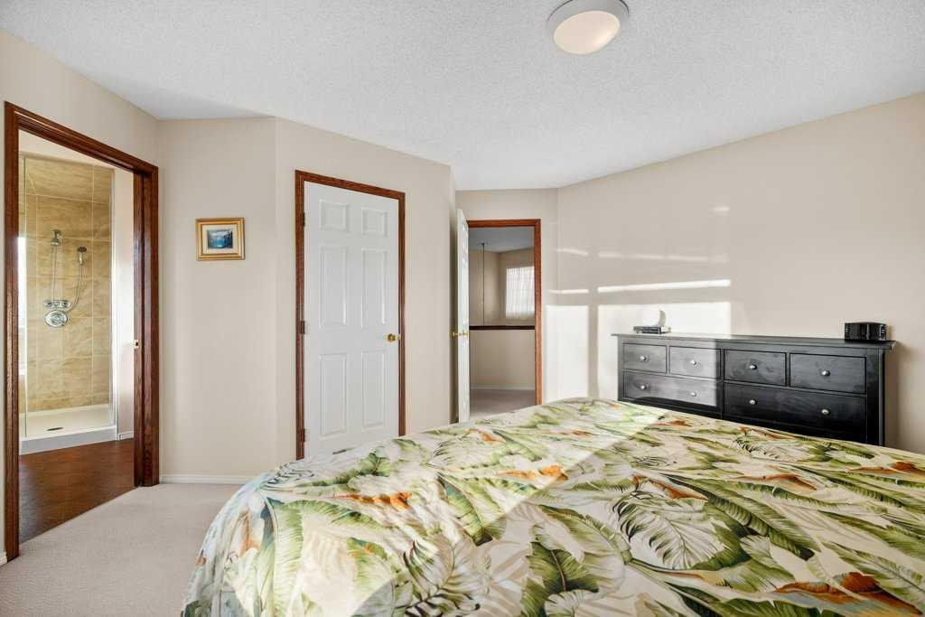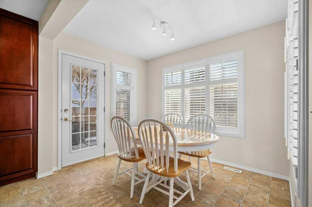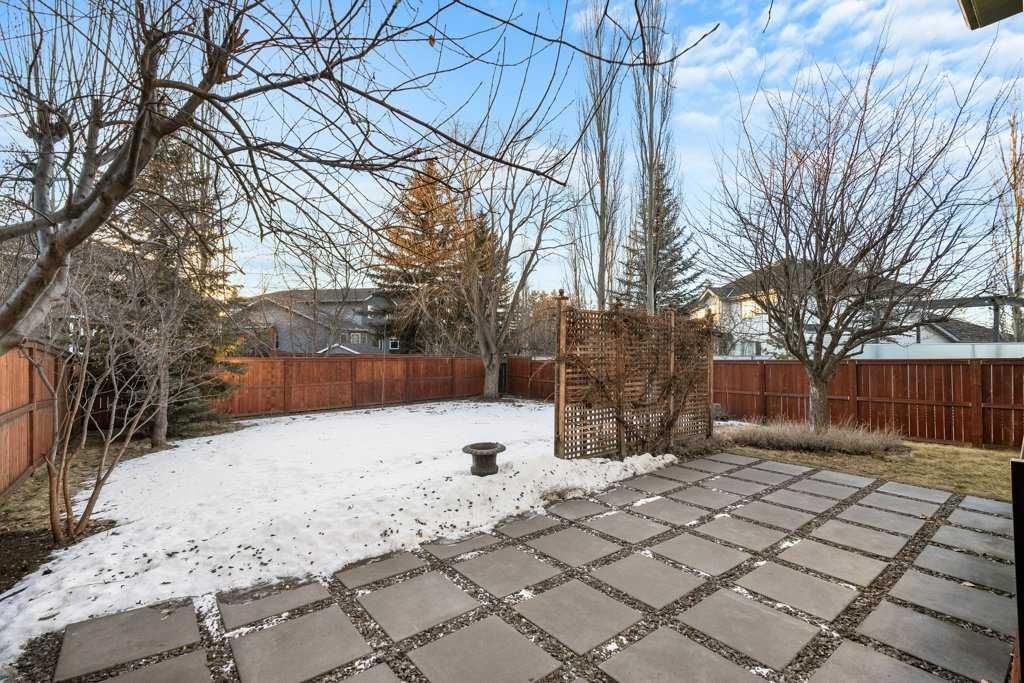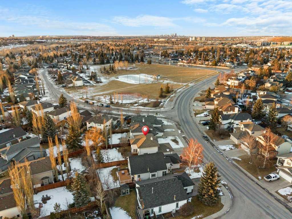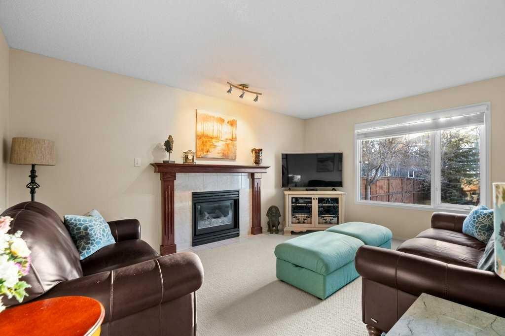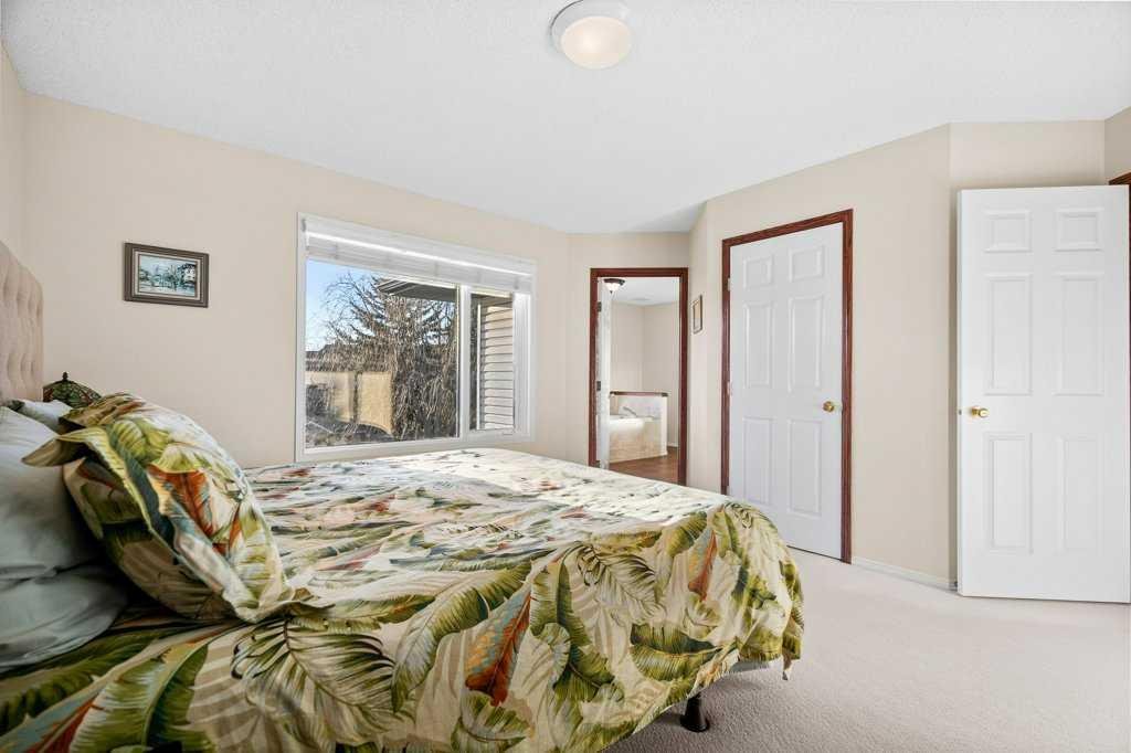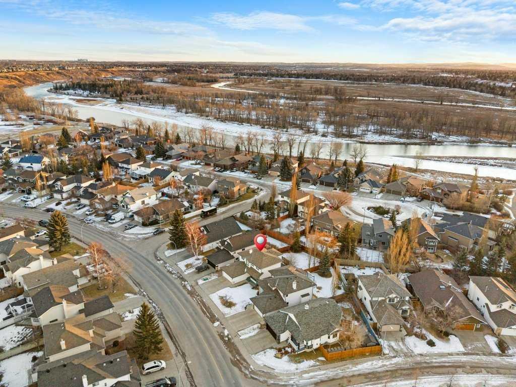 This home is simply impeccable and proudly offered by its original owners. Thoughtfully maintained and updated, the property features a vinyl and stone front exterior, with Poly B professionally removed, central air conditioning, and a freshly painted exterior. Built by Jager Homes in the desirable Birchwood model, the home showcases quality craftsmanship throughout.. Upon entry, you are welcomed by an open-to-above front foyer accented by hardwood flooring. A front-facing flex room with carpet offers versatility as a home office or sitting room and leads into the formal dining area, complete with pocket French doors. The spacious kitchen and nook were beautifully renovated in 2008, featuring extended-height cabinetry, with solid wood cabinet doors, granite countertops, a full appliance package, pantry cabinet, and a diagonal tiled backsplash. The bright nook is surrounded by windows with shutters and includes a garden door with phantom screen, opening to a massive and private south-facing backyard. This exceptional outdoor space features mature grapevines and lavender, a lower patio, a five-year-old fence, and an expansive lawn ideal for children and pets. Back inside, the family room enjoys peaceful backyard views and is anchored by a gas fireplace with tiled surround. The main level is completed by a 2-piece bathroom with granite storage vanity, a functional laundry room with coat closet and additional upper cabinetry, and direct access to the double attached garage, which is insulated, drywalled, painted, and well finished. Upstairs, carpet and railing lead to a well-laid-out upper level offering four bedrooms and two full bathrooms. The front bedroom features an IKEA-built-in closet system plus an additional closet, while two additional bedrooms are thoughtfully positioned with a 4-piece bathroom in between, complete with a granite storage vanity. The primary bedroom, located at the rear of the home, enjoys sunny south-facing views and comfortably accommodates large furniture. It includes a walk-in closet and a renovated 4-piece ensuite with a Jacuzzi tub, large tiled standalone shower, and granite storage vanity. Newer Kohler toilets with soft-close lids are installed throughout the home. The professionally developed basement (with permits) offers flexible space to suit a variety of family needs. Highlights include knockdown ceilings, under-stair storage, a side utility/storage room with workshop area and rough-in for a sump pump, and a large rec room with new carpet, fresh paint, and updated lighting. The layout allows for the addition of a fifth bedroom without compromising living space. Completing the lower level is a utility room with a newer hot water tank and water softener, linen closet, and a 4-piece bathroom with tiled tub and surround and storage vanity. All of this is ideally located steps from river and ridge pathways, green space, local shopping and services, and Eagle Quest Golf Course, with quick access to Deerfoot trail!