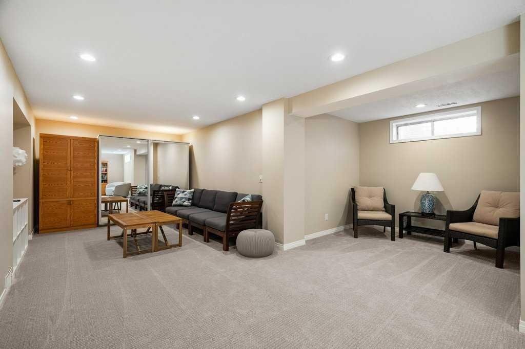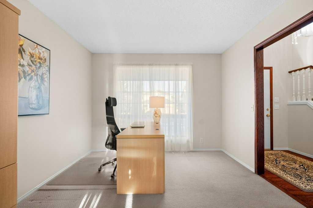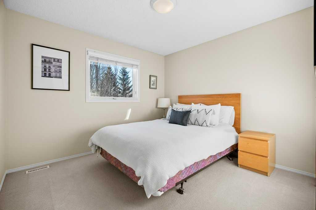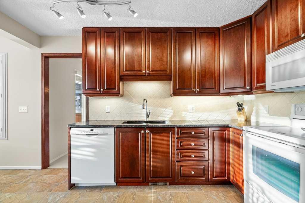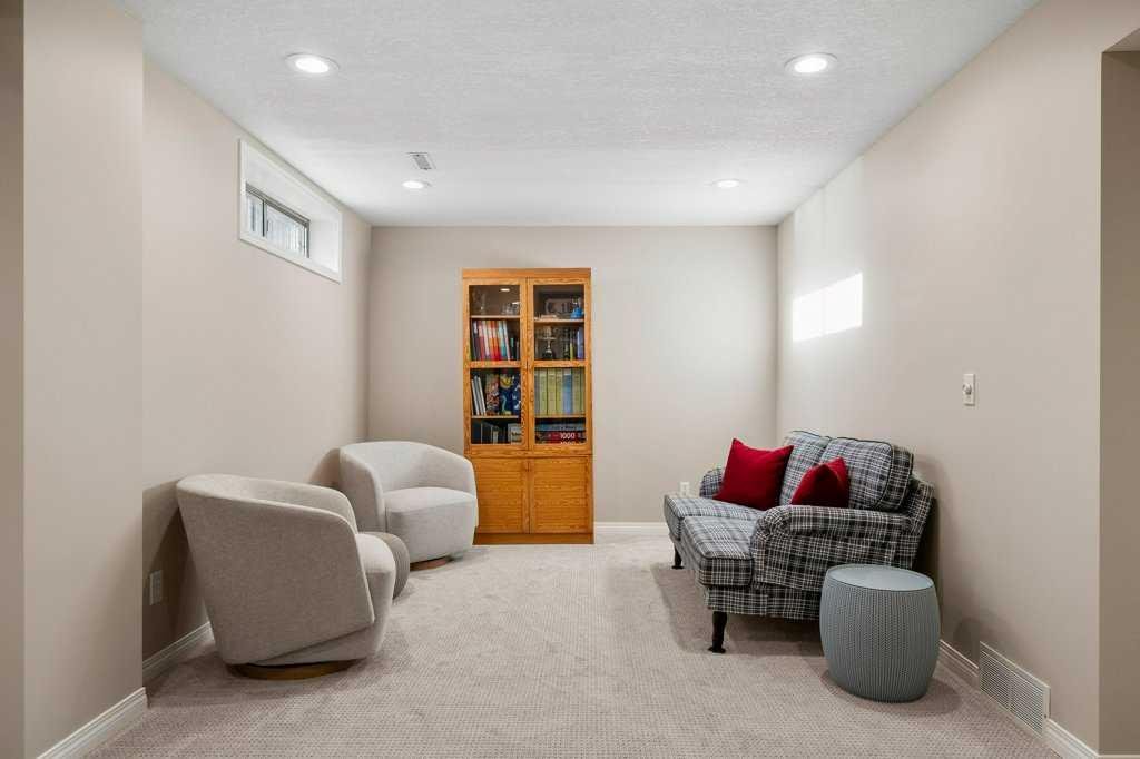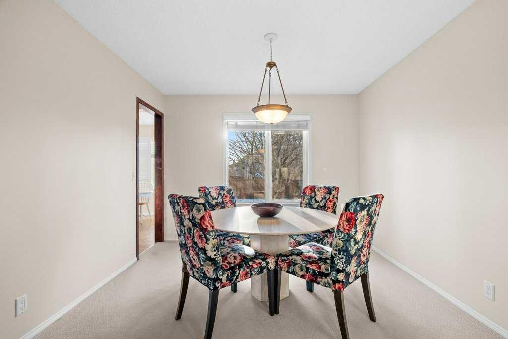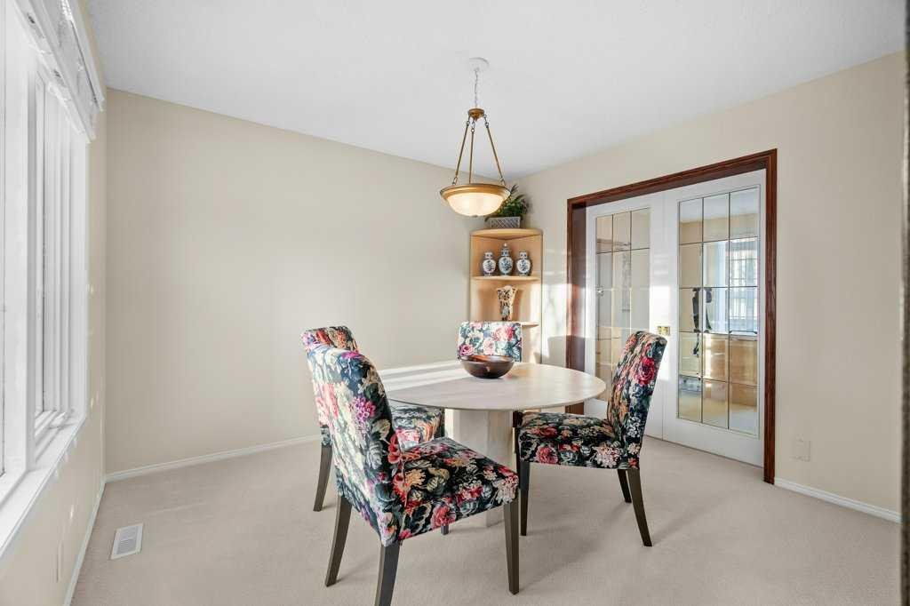 This home is simply impeccable and proudly offered by its original owners. Thoughtfully maintained and updated, the property features a vinyl and stone front exterior, with Poly B professionally removed, central air conditioning, and a freshly painted exterior. Built by Jager Homes in the desirable Birchwood model, the home showcases quality craftsmanship throughout.. Upon entry, you are welcomed by an open-to-above front foyer accented by hardwood flooring. A front-facing flex room with carpet offers versatility as a home office or sitting room and leads into the formal dining area, complete with pocket French doors. The spacious kitchen and nook were beautifully renovated in 2008, featuring extended-height cabinetry, with solid wood cabinet doors, granite countertops, a full appliance package, pantry cabinet, and a diagonal tiled backsplash. The bright nook is surrounded by windows with shutters and includes a garden door with phantom screen, opening to a massive and private south-facing backyard. This exceptional outdoor space features mature grapevines and lavender, a lower patio, a five-year-old fence, and an expansive lawn ideal for children and pets. Back inside, the family room enjoys peaceful backyard views and is anchored by a gas fireplace with tiled surround. The main level is completed by a 2-piece bathroom with granite storage vanity, a functional laundry room with coat closet and additional upper cabinetry, and direct access to the double attached garage, which is insulated, drywalled, painted, and well finished. Upstairs, carpet and railing lead to a well-laid-out upper level offering four bedrooms and two full bathrooms. The front bedroom features an IKEA-built-in closet system plus an additional closet, while two additional bedrooms are thoughtfully positioned with a 4-piece bathroom in between, complete with a granite storage vanity. The primary bedroom, located at the rear of the home, enjoys sunny south-facing views and comfortably accommodates large furniture. It includes a walk-in closet and a renovated 4-piece ensuite with a Jacuzzi tub, large tiled standalone shower, and granite storage vanity. Newer Kohler toilets with soft-close lids are installed throughout the home. The professionally developed basement (with permits) offers flexible space to suit a variety of family needs. Highlights include knockdown ceilings, under-stair storage, a side utility/storage room with workshop area and rough-in for a sump pump, and a large rec room with new carpet, fresh paint, and updated lighting. The layout allows for the addition of a fifth bedroom without compromising living space. Completing the lower level is a utility room with a newer hot water tank and water softener, linen closet, and a 4-piece bathroom with tiled tub and surround and storage vanity. All of this is ideally located steps from river and ridge pathways, green space, local shopping and services, and Eagle Quest Golf Course, with quick access to Deerfoot trail!