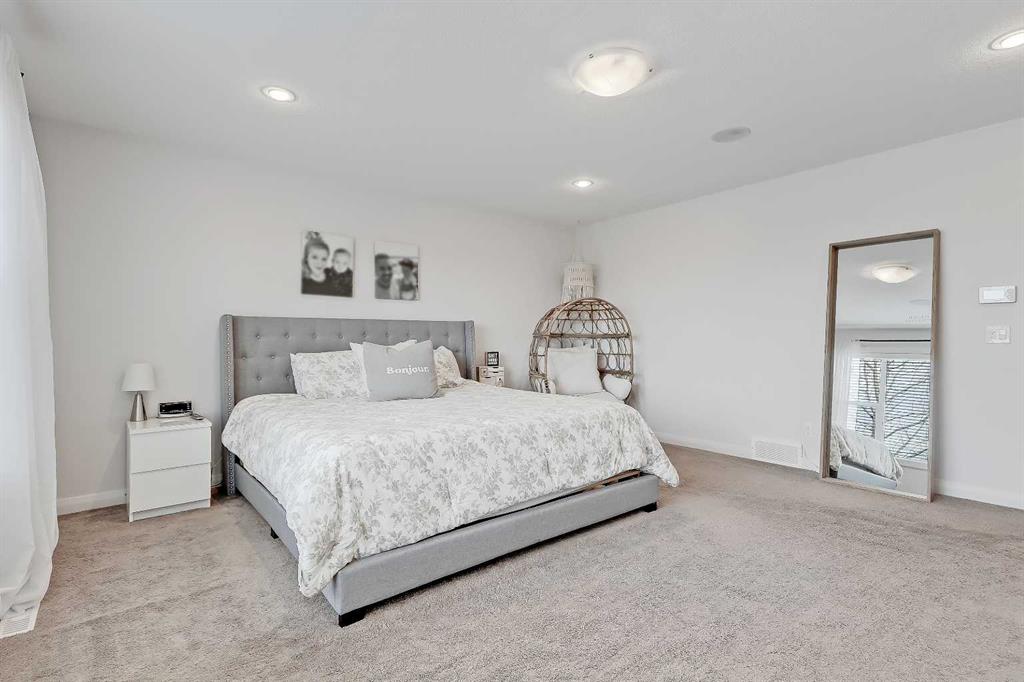 Designed for comfortable family living, this home offers exceptionally thoughtful function and flow from the moment you step inside. A bright front entry opens to a private office with French doors, perfect for working from home. The open kitchen, dining and living areas form the heart of the property, featuring an upgraded kitchen with abundant full height cabinetry, stainless steel appliances including built-in oven and microwave, glass cooktop, large island, upgraded bulkhead lighting, walk-through pantry and a dining area that leads to the back deck. The living room is warm and inviting with its dramatic stone feature wall and generous natural light. The main level also offers a half bath and an enormous mudroom with custom built-ins that links directly to the oversized 21’5” x 22’11” attached garage and keeps daily life organized. The upper level offers an ideal layout with a bright vaulted bonus room highlighted by a full stone feature wall and a serene primary suite with expansive windows, walk-in closet and a spa-inspired 5-piece ensuite with dual sinks, relaxing oversized steam shower and soaker tub. Two additional large bedrooms, a full bathroom with a dual vanity and a dedicated laundry room with a sink complete this level. The builder-finished basement offers a large recreation area, custom bar perfect for hosting game nights or get togethers, a 4th bedroom, dedicated storage room and another full 4-piece bathroom. Outside, the backyard is a true extension of the home and living space featuring a large deck with a gazebo, mature trees and direct access to the green space and pathway behind. It’s the perfect setting for morning coffees, neighbourhood gatherings or simply relaxing and watching the kids play and enjoy the space.
