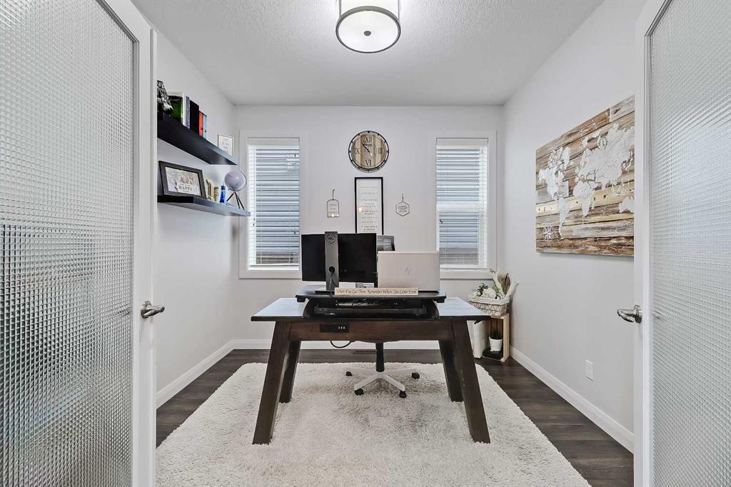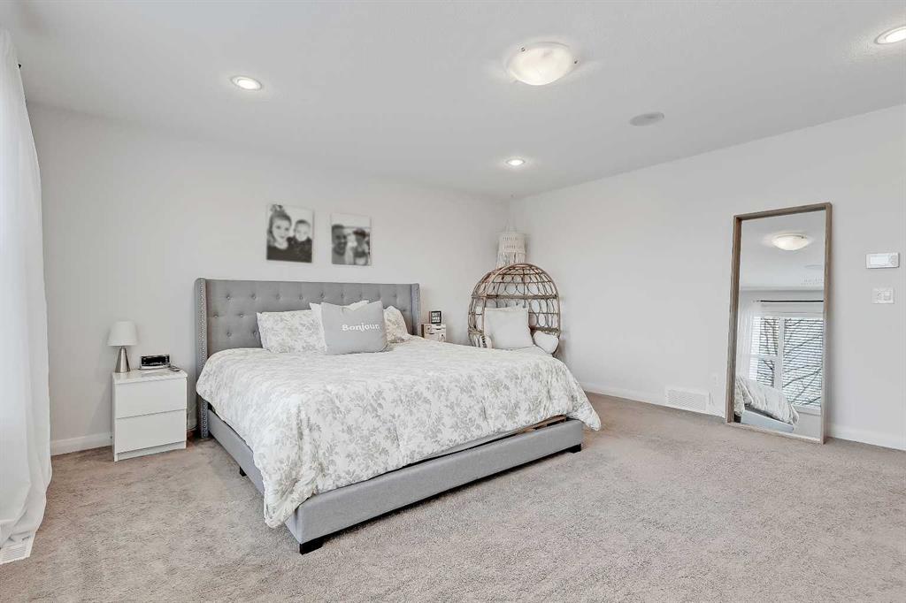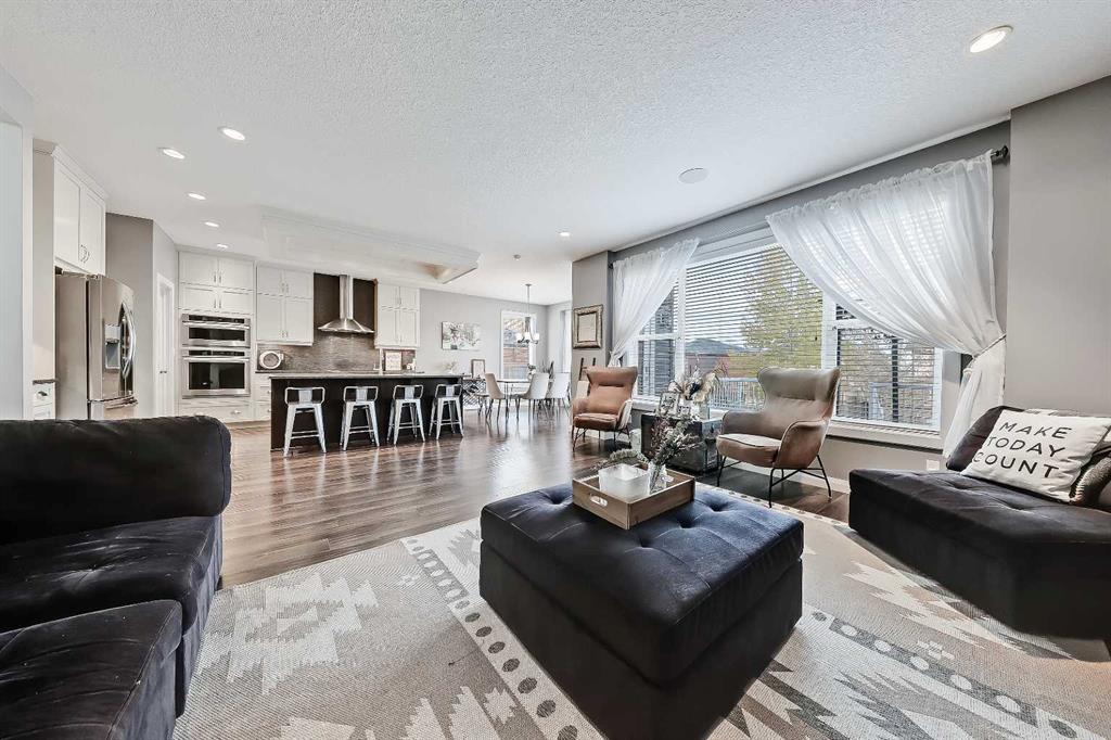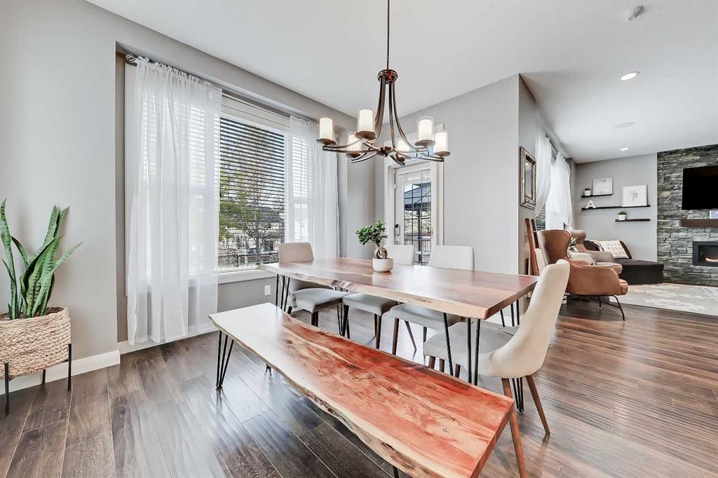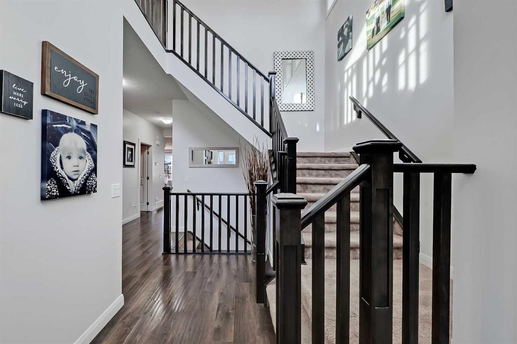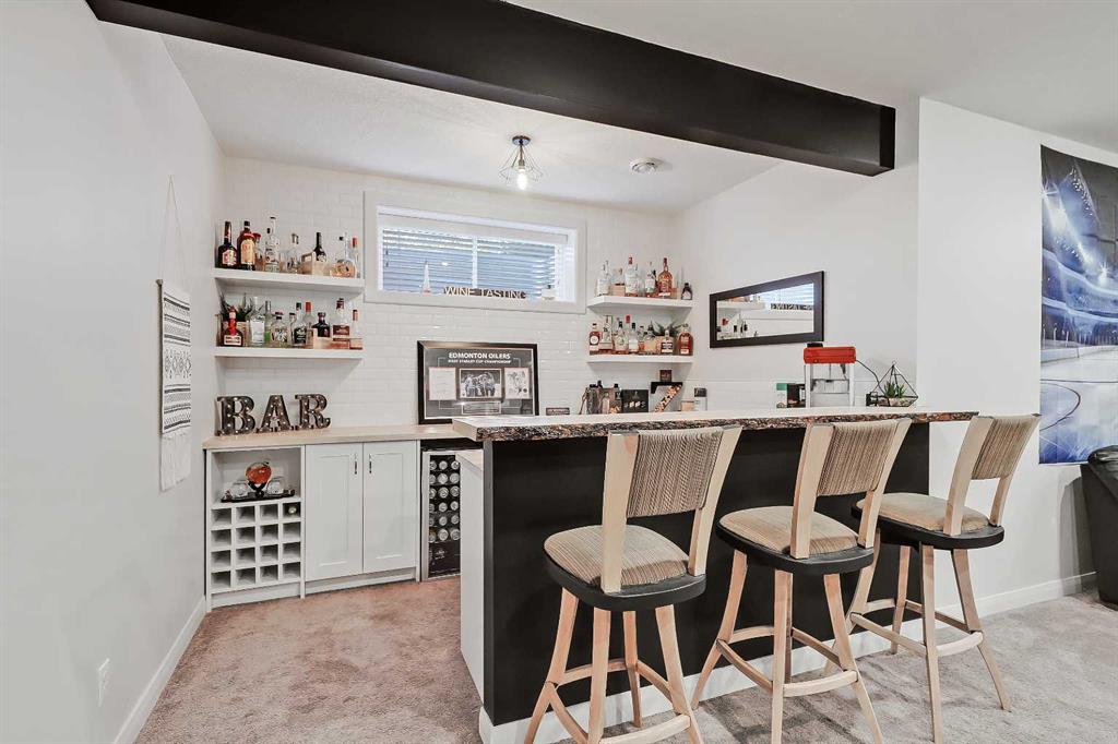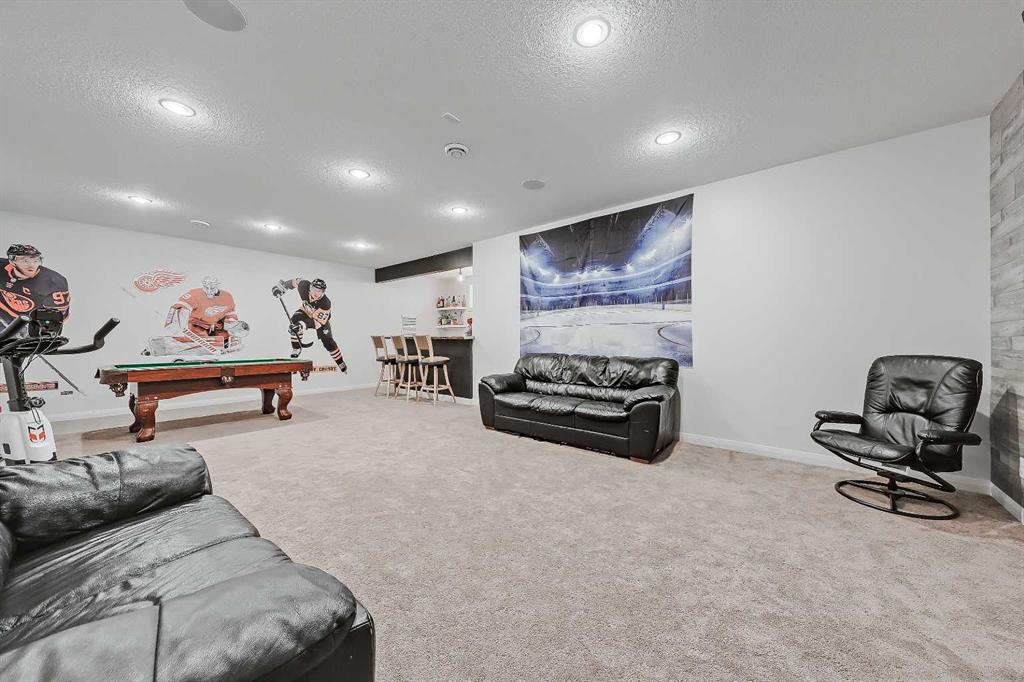 Designed for comfortable family living, this home offers exceptionally thoughtful function and flow from the moment you step inside. A bright front entry opens to a private office with French doors, perfect for working from home. The open kitchen, dining and living areas form the heart of the property, featuring an upgraded kitchen with abundant full height cabinetry, stainless steel appliances including built-in oven and microwave, glass cooktop, large island, upgraded bulkhead lighting, walk-through pantry and a dining area that leads to the back deck. The living room is warm and inviting with its dramatic stone feature wall and generous natural light. The main level also offers a half bath and an enormous mudroom with custom built-ins that links directly to the oversized 21’5” x 22’11” attached garage and keeps daily life organized. The upper level offers an ideal layout with a bright vaulted bonus room highlighted by a full stone feature wall and a serene primary suite with expansive windows, walk-in closet and a spa-inspired 5-piece ensuite with dual sinks, relaxing oversized steam shower and soaker tub. Two additional large bedrooms, a full bathroom with a dual vanity and a dedicated laundry room with a sink complete this level. The builder-finished basement offers a large recreation area, custom bar perfect for hosting game nights or get togethers, a 4th bedroom, dedicated storage room and another full 4-piece bathroom. Outside, the backyard is a true extension of the home and living space featuring a large deck with a gazebo, mature trees and direct access to the green space and pathway behind. It’s the perfect setting for morning coffees, neighbourhood gatherings or simply relaxing and watching the kids play and enjoy the space.