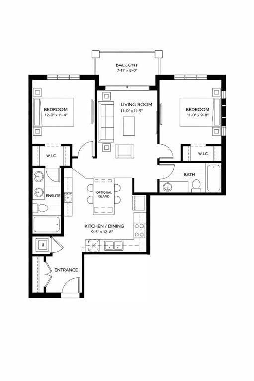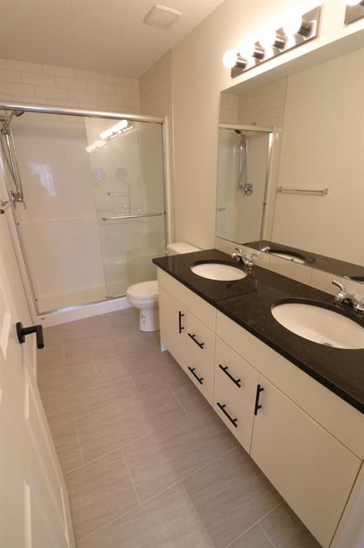 The primary bedroom offers a generous closet and a private 4-piece ensuite, while the second bedroom is well-sized and conveniently located near the second full bathroom—perfect for guests, roommates, or a home office setup. Additional highlights include in-suite laundry, air conditioning, and ample storage throughout.