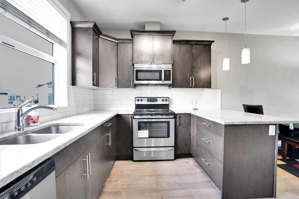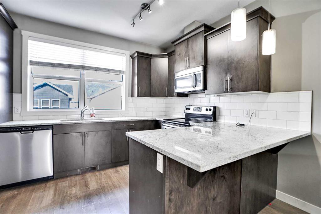 Welcome to the best-priced and perfectly located townhouse in the vibrant community of Redstone! This beautiful home features an open-concept main floor with a bright corner kitchen, a cozy dining area, and a spacious living room that opens up to a private balcony — perfect for relaxing or entertaining. Upstairs, you’ll find two comfortable bedrooms, each with its own ensuite bathroom, along with a convenient laundry room. The home also includes a single-car garage and an additional parking pad for extra space. Situated in a lively, well-connected neighborhood close to parks, shopping, schools, and transit, this townhouse offers great value and convenience for modern living. Book a showing to view this property today!