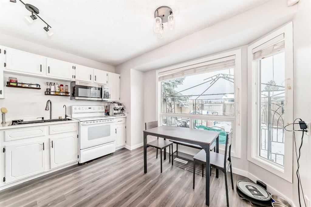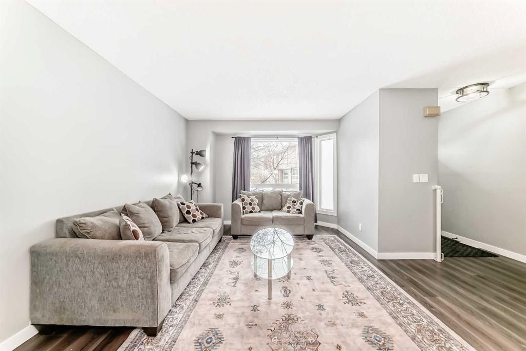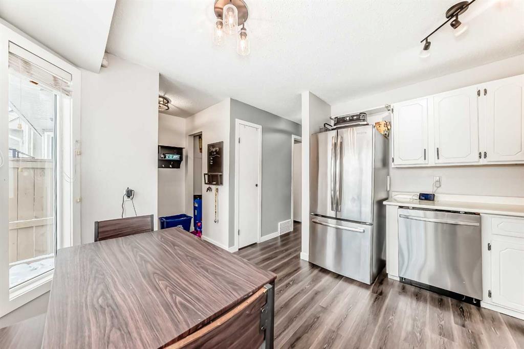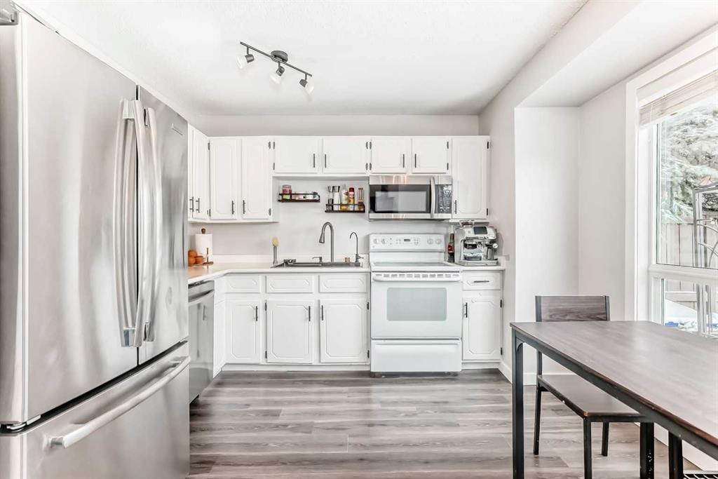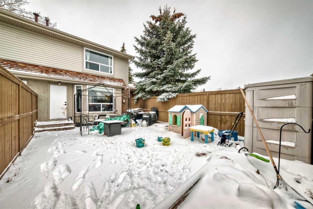 Welcome to this bright and affordable townhouse in the desirable community of Queensland, offering low condo fees and an unbeatable location within the complex. Situated on a quiet corner, this well-maintained home backs onto a spacious off-leash green space, giving you convenient access to outdoor recreation right from your private backyard gate—perfect for dog owners and nature lovers alike. The main floor features vinyl plank flooring, updated energy efficient windows and natural light creating a clean and modern feel throughout. The spacious and well-organized kitchen offers ample cupboard and counter space, making meal preparation easy and enjoyable. Look out the large north-facing windows into the private fenced backyard and green space beyond. Upstairs you’ll find three comfortable bedrooms and a full 4-piece bathroom, including a generous primary bedroom complete with a walk-in closet. The fully finished basement adds valuable living space with a large family room, office area, separate laundry room, and plenty of storage as well as a new furnace (2023) and hot water tank (2023). Because this unit is located in the NW corner you can find additional parking available from the alley, accessible behind the fence, in addition to the assigned parking stall—an uncommon and highly convenient bonus. Located close to schools, parks, shopping, transit, Fish Creek Park, and major roadways, this home offers exceptional value in a well-established neighbourhood.