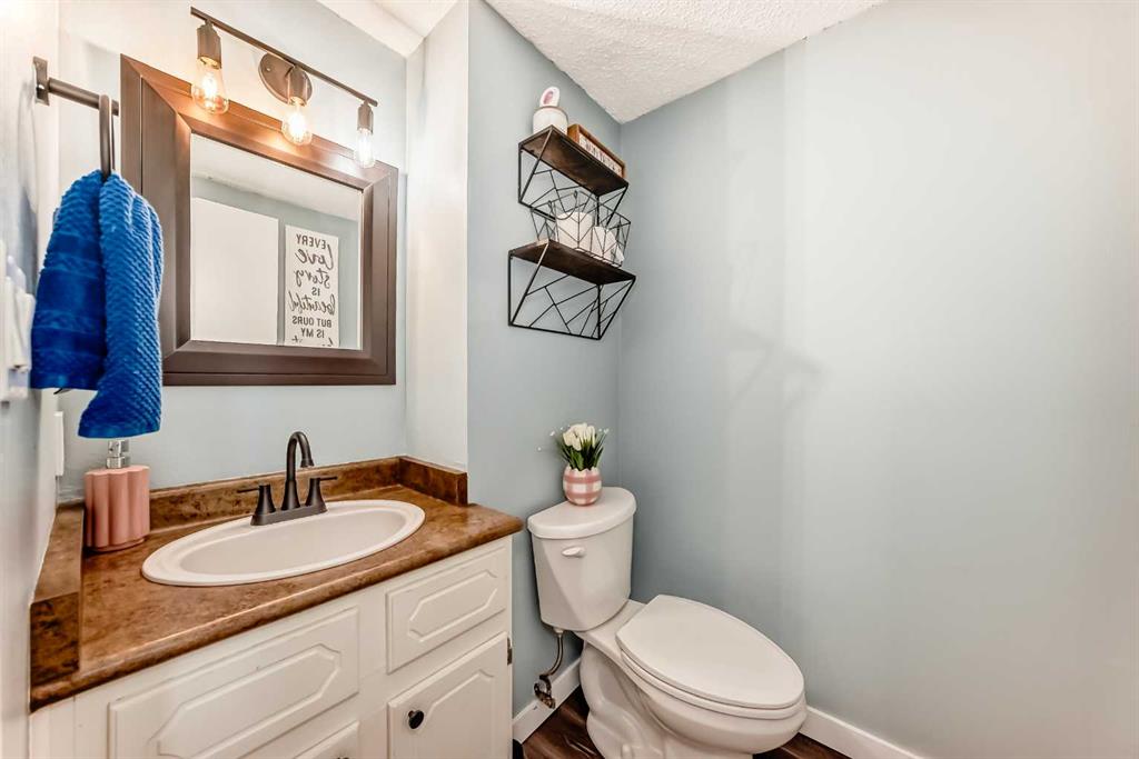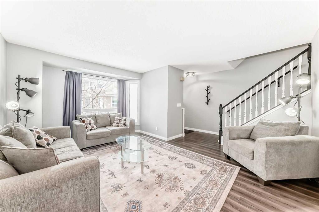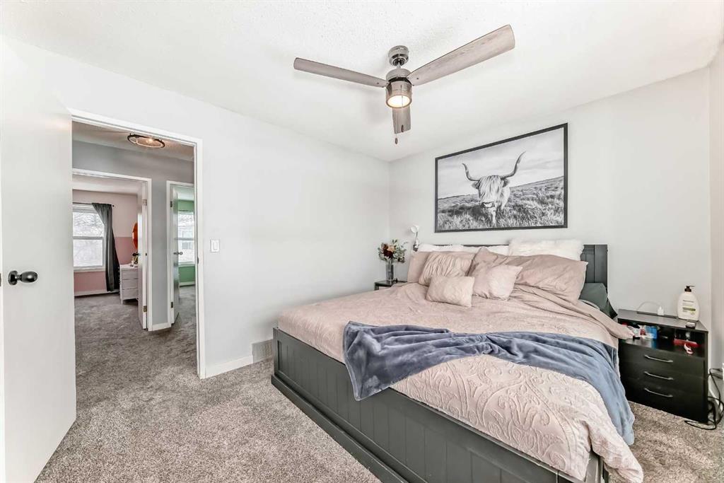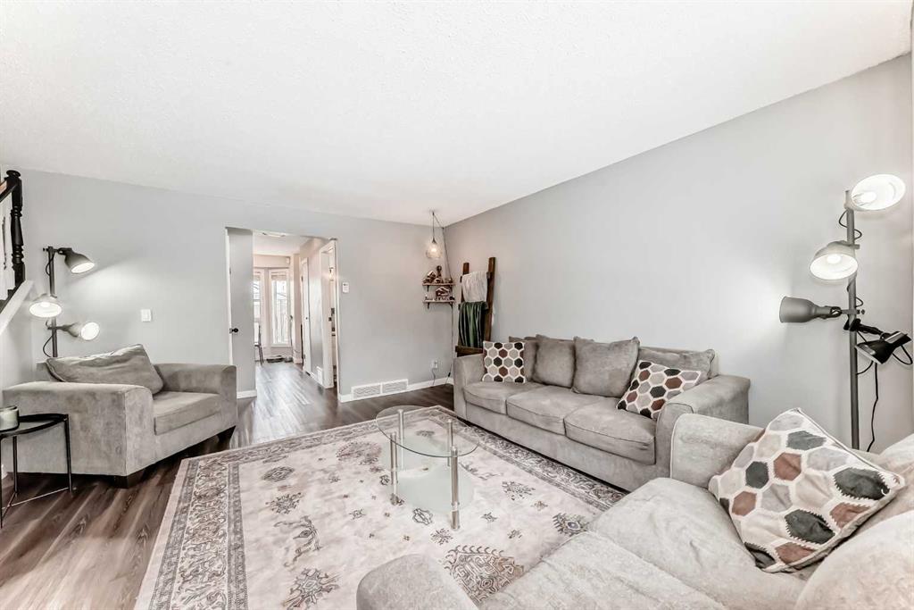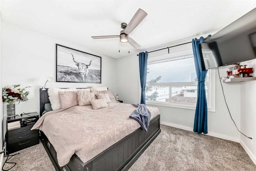 Welcome to this bright and affordable townhouse in the desirable community of Queensland, offering low condo fees and an unbeatable location within the complex. Situated on a quiet corner, this well-maintained home backs onto a spacious off-leash green space, giving you convenient access to outdoor recreation right from your private backyard gate—perfect for dog owners and nature lovers alike. The main floor features vinyl plank flooring, updated energy efficient windows and natural light creating a clean and modern feel throughout. The spacious and well-organized kitchen offers ample cupboard and counter space, making meal preparation easy and enjoyable. Look out the large north-facing windows into the private fenced backyard and green space beyond. Upstairs you’ll find three comfortable bedrooms and a full 4-piece bathroom, including a generous primary bedroom complete with a walk-in closet. The fully finished basement adds valuable living space with a large family room, office area, separate laundry room, and plenty of storage as well as a new furnace (2023) and hot water tank (2023). Because this unit is located in the NW corner you can find additional parking available from the alley, accessible behind the fence, in addition to the assigned parking stall—an uncommon and highly convenient bonus. Located close to schools, parks, shopping, transit, Fish Creek Park, and major roadways, this home offers exceptional value in a well-established neighbourhood.
