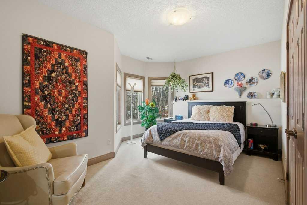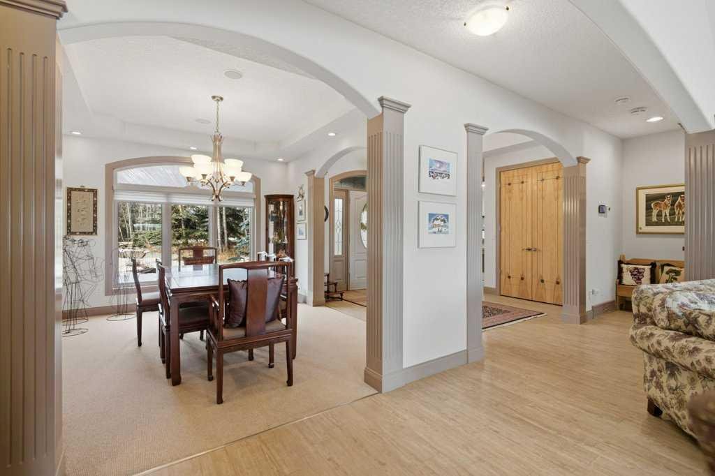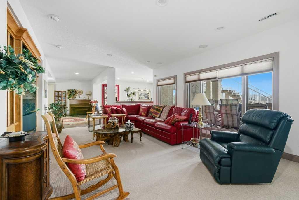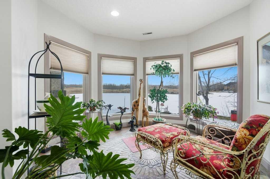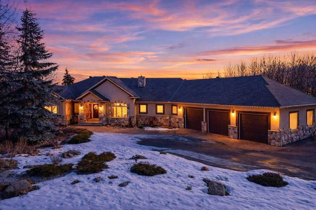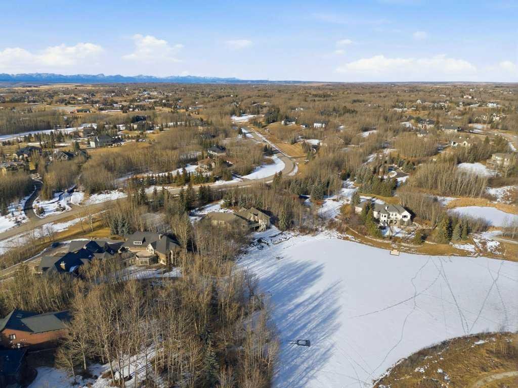 A rare opportunity to own a lakeside acreage in Church Ranches. Custom-built by Maillot Homes, this original-owner walkout bungalow sits on a beautiful 2.04-acre lakefront lot on the shores of Cheyanne Lake in Church Ranches. Offering nearly 6,000 sq. ft. of total living space, the home is designed for both comfort and longevity, featuring a thoughtful layout that includes a private home office, a main-floor primary suite, and an integrated elevator for easy access between levels. The main floor is centered around an open living area with vaulted ceilings and a floor-to-ceiling stone fireplace. The kitchen is built for daily life and hosting alike, finished with marble countertops, a Wolf cooktop, and double ovens. Adjacent to the kitchen, a bright eating nook and a cozy sitting area create an inviting space for casual gatherings. Throughout the home, the quality of construction is evident in the solid red birch doors and custom millwork. The primary bedroom serves as a quiet retreat, complete with its own fireplace and French doors leading to the back deck, which features a built-in BBQ and views of the water. The walk-out lower level is exceptionally bright, with large window banks that bring in plenty of natural light. This level includes two additional bedrooms, an entertainment area with pool table, additional office space with a murphy bed. Plenty of additional storage in the basement. A triple oversized garage with epoxy floors, built in cabinetry for all your storage needs and a work bench. With professionally maintained gardens and landscaping with full irrigation, a private gated driveway, and direct access to your own beach and dock on the swimmable community lake. Gravel pathways around the house for easy access to the gardens and the beach. This is a meticulously maintained for home that offers a peaceful, private lifestyle just minutes from the city. Residents of Church Ranches enjoy seventy acres of private common lands and three public lakes that are maintained by the HOA. The lakes are stocked with trout for fishing and swimmable. There are over 7km of walking trails on the common lands for resident use. Church Ranches is just north of the Calgary city limits and 30 minutes to downtown.