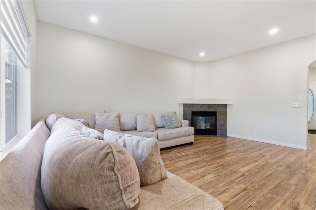 The bright, open main floor features a welcoming living room with a cozy corner fireplace and a functional kitchen with plenty of cabinetry, great flow, and easy access to the backyard. Step through the patio doors to a large deck—ideal for BBQs and entertaining.