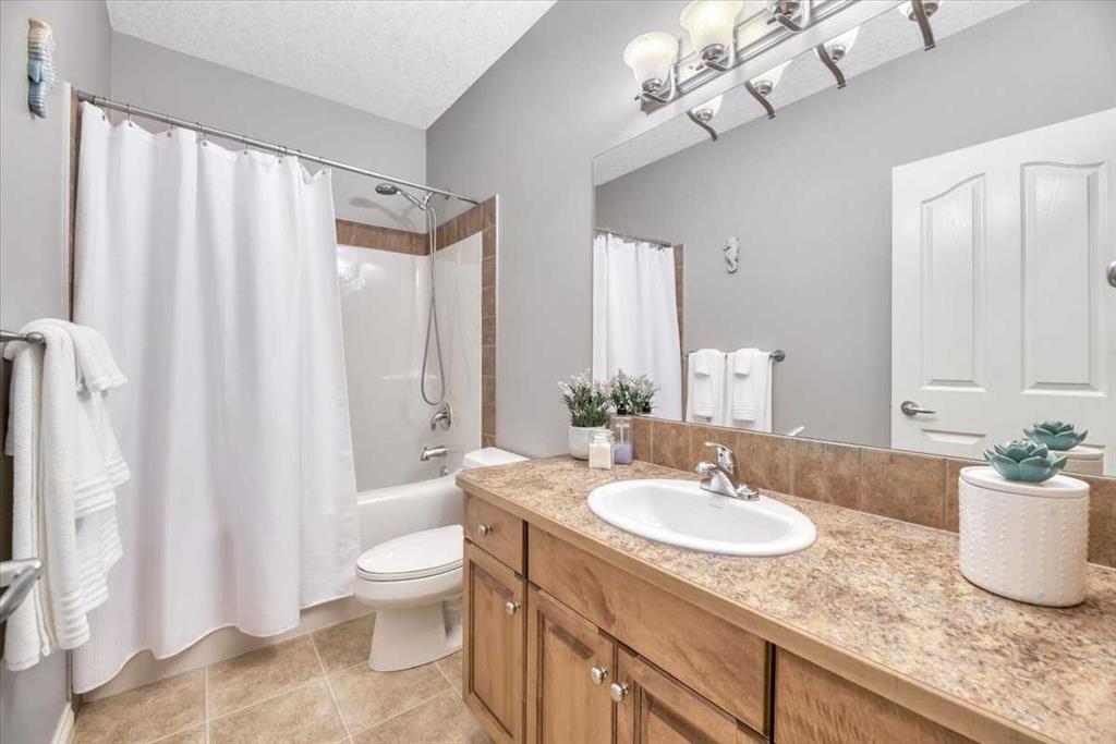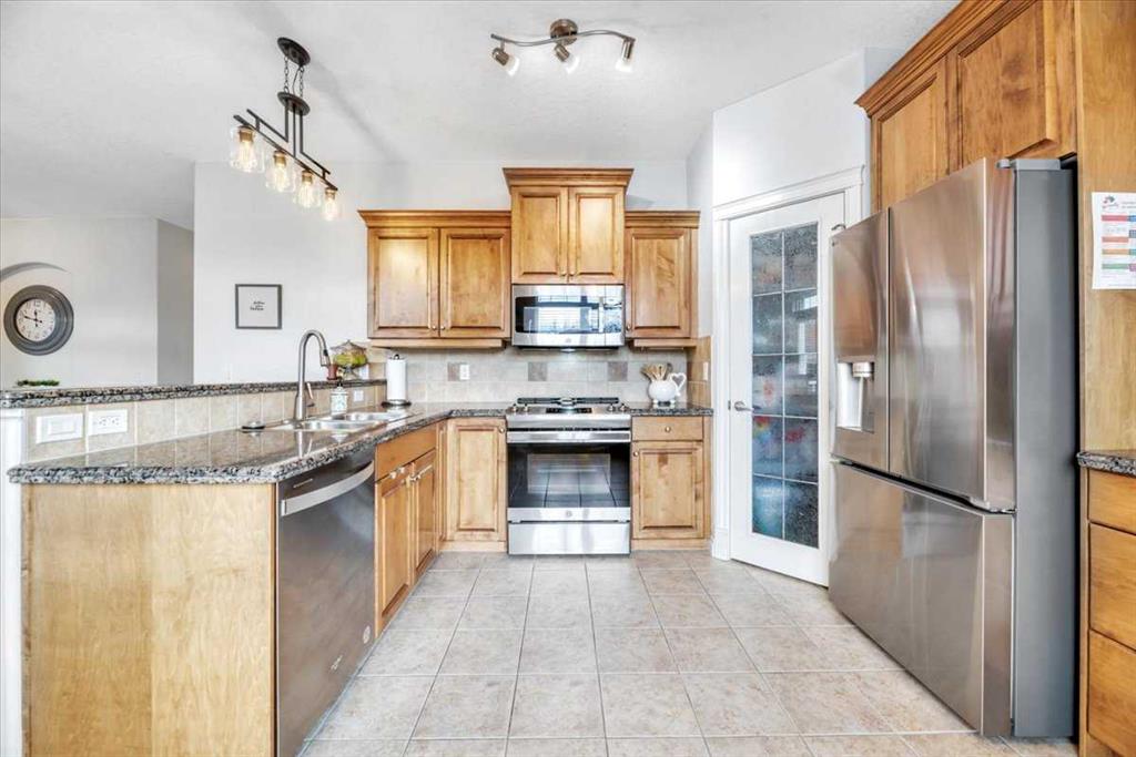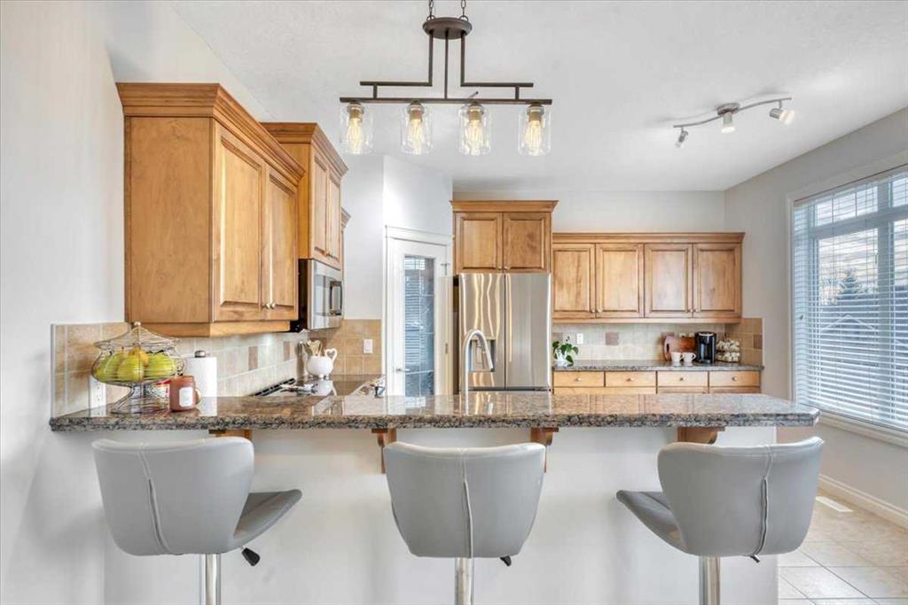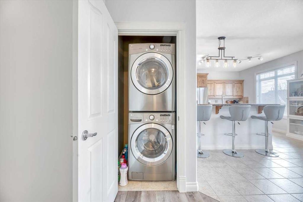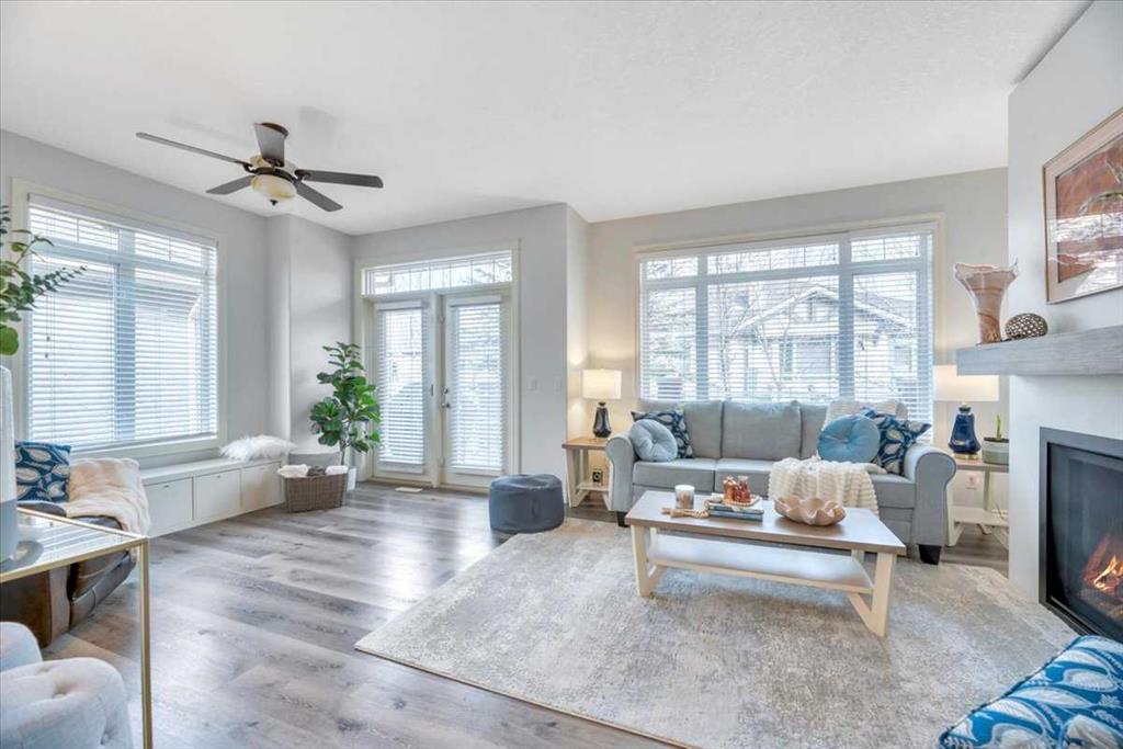 Welcome to Discovery Woods Villas! The peaceful and serene community that is surrounded by trees, walking paths and just minutes from Griffith Woods Park. This beautifully and tastefully updated and air-conditioned home is sure to impress any discerning buyer. As you enter the foyer, notice the high ceilings, vinyl plank flooring and spacious kitchen and dining area. The kitchen has ALL NEW APPLIANCES, granite countertops, tile flooring, updated and modern lighting above the breakfast bar, a pantry, and a patio to enjoy your morning coffee. Through the hallway is your main floor laundry and a nice size office with French doors. The living room has a cozy gas fireplace with a stylish mantel and allows for access to a second balcony on the main floor equipped with a gas hook-up. Make your way past the powder room (don’t miss the stylish wall treatment!) to the large primary bedroom with a walk-in closet, and updated ensuite with a walk-in shower. The fully finished lower level provides access to your double car garage and utility room with a newer hot water tank. There is also a family room with a second gas fireplace and WALK-OUT access to the patio and grass area. Down the hall is a full bathroom and second, generously sized bedroom. The added benefit of the walk-out lot is the huge windows in the family room and the bedroom. The location of this unit is truly perfect as the back patios face the green space where you are sheltered from any traffic noise. Discovery Woods Villas is a well-managed and well-maintained complex. There is no shortage of adventures to be had through the walking paths to gorgeous Griffith Woods Park and the Elbow River! Shopping and commuting are a breeze with easy access to Stoney Trail and Glenmore Trail. This home is not to be missed!