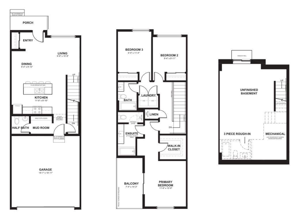 NEW BUILD TOWNHOUSE | NO CONDO FEE | 3 BED / 2.5 BATH / 1480 SQ FT | REAR ATTACHED DOUBLE GARAGE | 9 FT CEILINGS | UNDEVELOPED BASEMENT | EST. Q2 2027 POSSESSION – Welcome to the Briar model by Minto Communities, an award-winning Canadian builder, located in East Hills Crossing, one of southeast Calgary’s fastest-growing and most convenient communities. These thoughtfully designed lane townhomes offer modern finishes, functional layouts, and long-term value in a location that truly stands out. The main floor features a bright, open-concept design with 9-foot ceilings, creating a spacious and airy feel throughout. The layout opens into a generous living room, perfect for everyday living or entertaining. At the heart of the home is the kitchen, complete with a central island, stainless steel appliances, and contemporary finishes, seamlessly connecting to the dining area just off to the side. The front of the home features a large living room and a spacious entryway. At the rear of the home. A convenient half bath and mudroom are tucked away at the back, providing direct access to the rear attached double garage, keeping daily life organized and efficient. Upstairs, you’ll find a well-planned upper level designed for comfort and privacy. The primary bedroom is spacious enough to accommodate a king-sized bed and includes a walk-in closet along with a 4-piece ensuite. Adding even more appeal is a large private balcony located above the garage, an ideal spot to enjoy morning coffee or unwind in the evening. Two additional well-sized bedrooms, a full 4-piece bathroom, upper-floor laundry, and a linen closet complete this level. The home also includes a full, undeveloped basement with rough-in for a 3-piece bathroom, offering excellent future potential to add a large recreation space, and additional storage as your needs evolve. Ideally situated across from East Hills Crossing Shopping Centre and Costco, this location offers unmatched convenience with shopping, dining, and services just steps away. Public transit is nearby, providing a quick and easy commute to downtown Calgary in minutes. East Hills itself is a vibrant, well-connected southeast community, known for its thoughtful planning, green spaces, pathways, and easy access to major roadways and 17 Ave SE. Combining modern design, a functional floor plan, and an unbeatable location, this is an excellent opportunity to secure a brand-new home in East Hills with estimated completion in Q2 2027. Don’t miss your chance to be part of this exciting community! Book your visit at the presentation centre today for more details! *Photos are representative.*