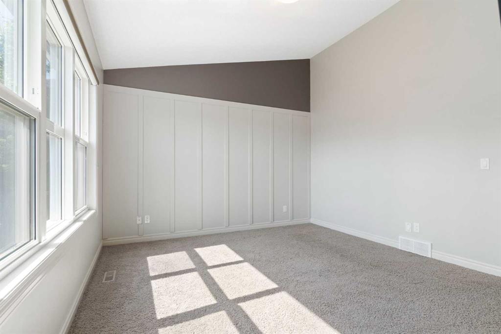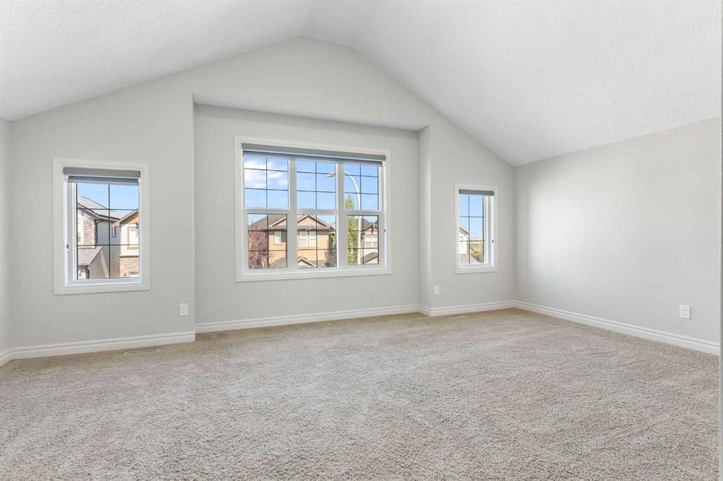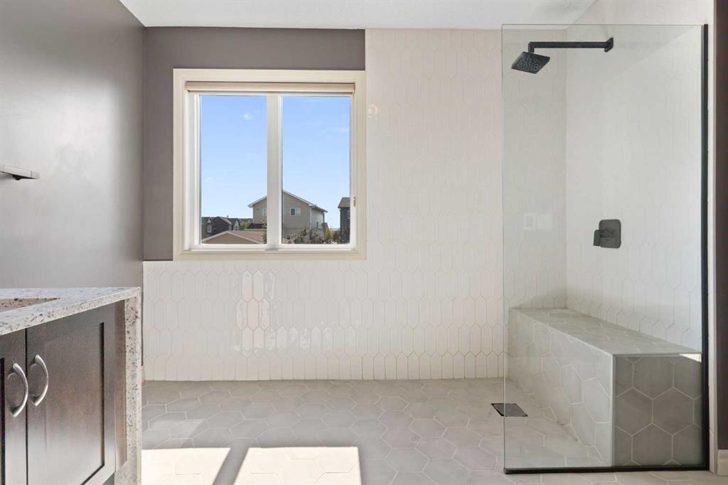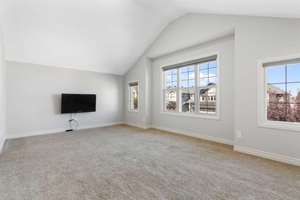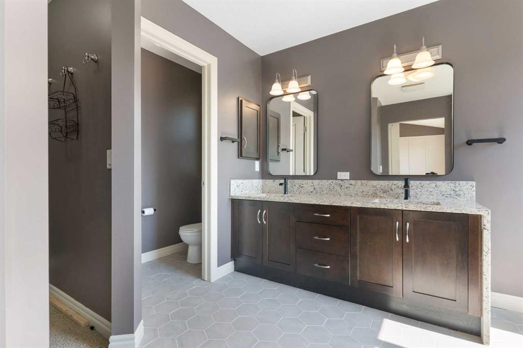 Beautifully maintained and move in ready, this home is located steps away from a peaceful green space and just minutes from shopping, dining, and other amenities. The main floor features a bright open layout with a kitchen that includes a center island and walk through pantry, leading to the mudroom and heated attached garage with workbench. Large windows fill the space with natural light and overlook the south facing backyard. This beautiful home is equipped with modern upgrades and thoughtful details throughout. The property features a central automated irrigation system with sprinklers in both the front and back yard, providing convenience and a lush, green landscape during the summer days. The backyard has been upgraded with over $40,000 in enhancements, including a spacious deck, a gas outlet for a BBQ and heater, and a dedicated connection for a hot tub — creating an exceptional outdoor space perfect for entertaining and relaxation. Upstairs, you will find three bedrooms, including a vaulted primary suite that adds elegance and space. The suite features a walk in closet and a luxurious ensuite with double vanity and oversized open shower. Additionally, the master bathroom boasts heated floors, offering comfort and luxury in every season. A vaulted bonus room provides additional living space, while upper level laundry and a second four piece bathroom complete the floor. The fully finished basement offers a family room, bright bedroom with large window, four piece bathroom, and wet bar. Additional highlights include air conditioning and abundant natural light throughout. For added convenience, the garage is also heated, making winter mornings easier and providing extra usability all year long. This home is ready to welcome its new owners.