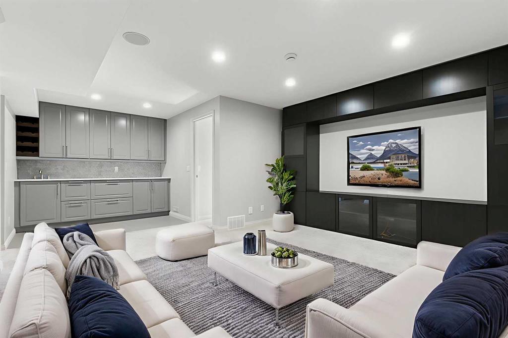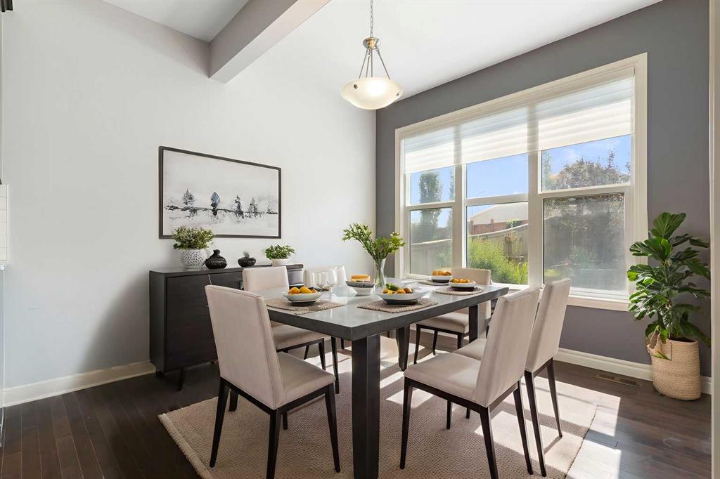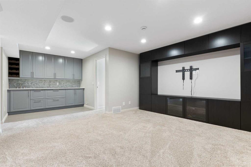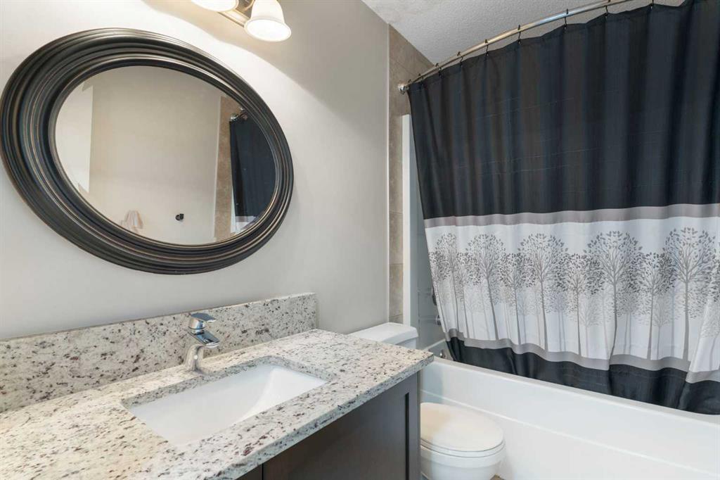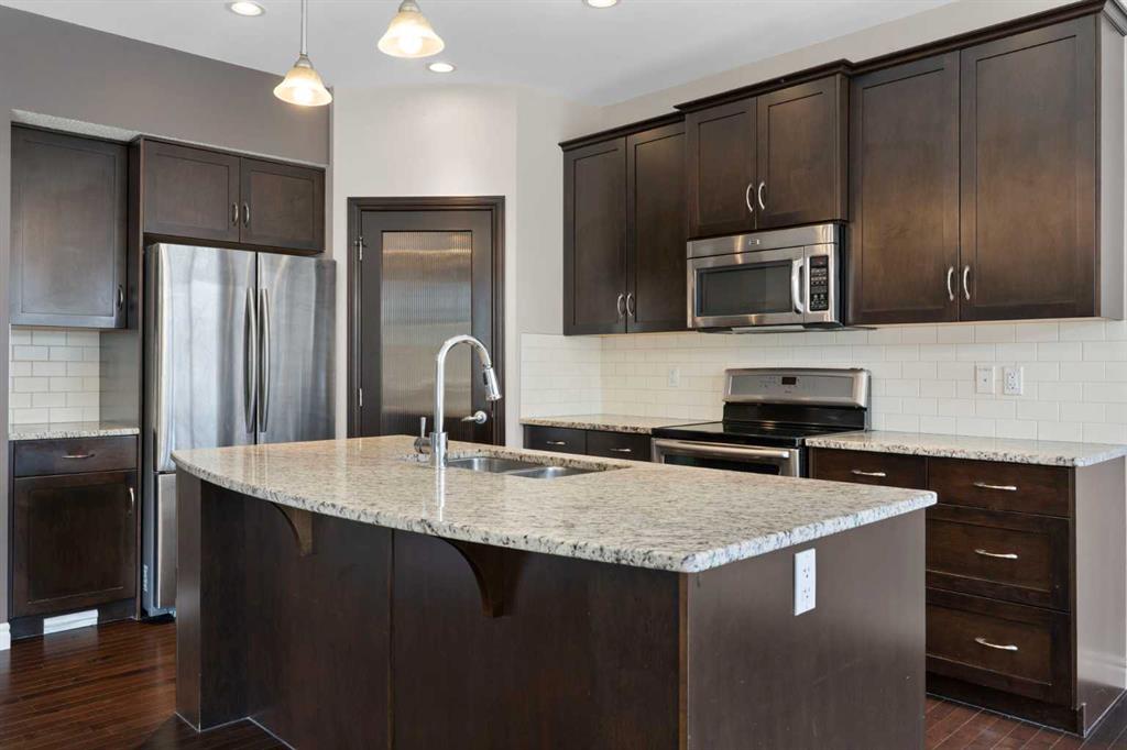 Beautifully maintained and move in ready, this home is located steps away from a peaceful green space and just minutes from shopping, dining, and other amenities. The main floor features a bright open layout with a kitchen that includes a center island and walk through pantry, leading to the mudroom and heated attached garage with workbench. Large windows fill the space with natural light and overlook the south facing backyard. This beautiful home is equipped with modern upgrades and thoughtful details throughout. The property features a central automated irrigation system with sprinklers in both the front and back yard, providing convenience and a lush, green landscape during the summer days. The backyard has been upgraded with over $40,000 in enhancements, including a spacious deck, a gas outlet for a BBQ and heater, and a dedicated connection for a hot tub — creating an exceptional outdoor space perfect for entertaining and relaxation. Upstairs, you will find three bedrooms, including a vaulted primary suite that adds elegance and space. The suite features a walk in closet and a luxurious ensuite with double vanity and oversized open shower. Additionally, the master bathroom boasts heated floors, offering comfort and luxury in every season. A vaulted bonus room provides additional living space, while upper level laundry and a second four piece bathroom complete the floor. The fully finished basement offers a family room, bright bedroom with large window, four piece bathroom, and wet bar. Additional highlights include air conditioning and abundant natural light throughout. For added convenience, the garage is also heated, making winter mornings easier and providing extra usability all year long. This home is ready to welcome its new owners.