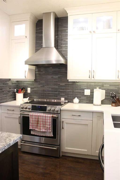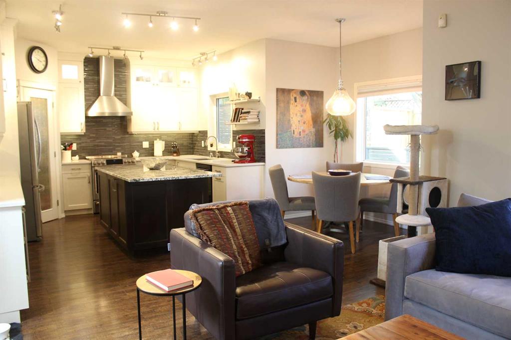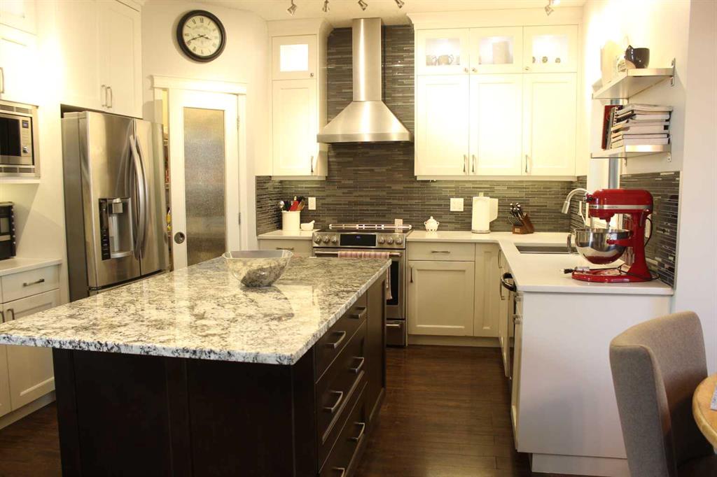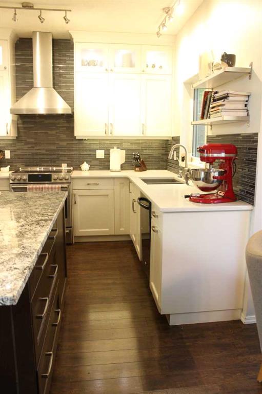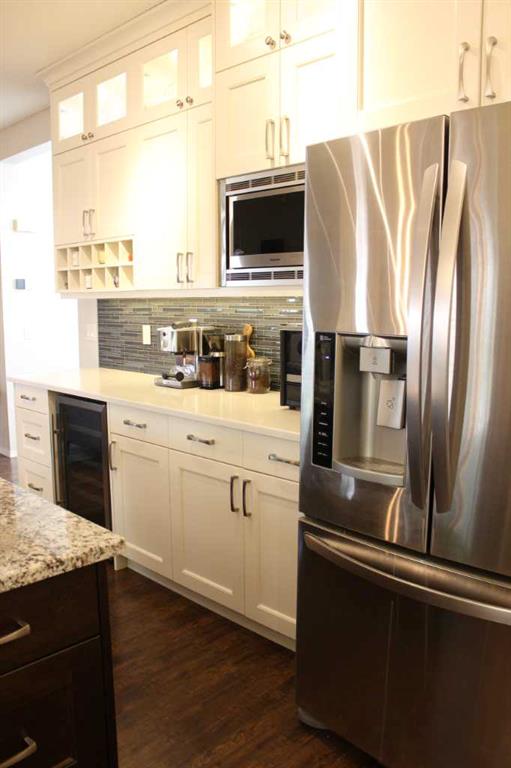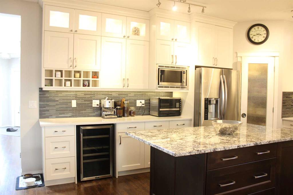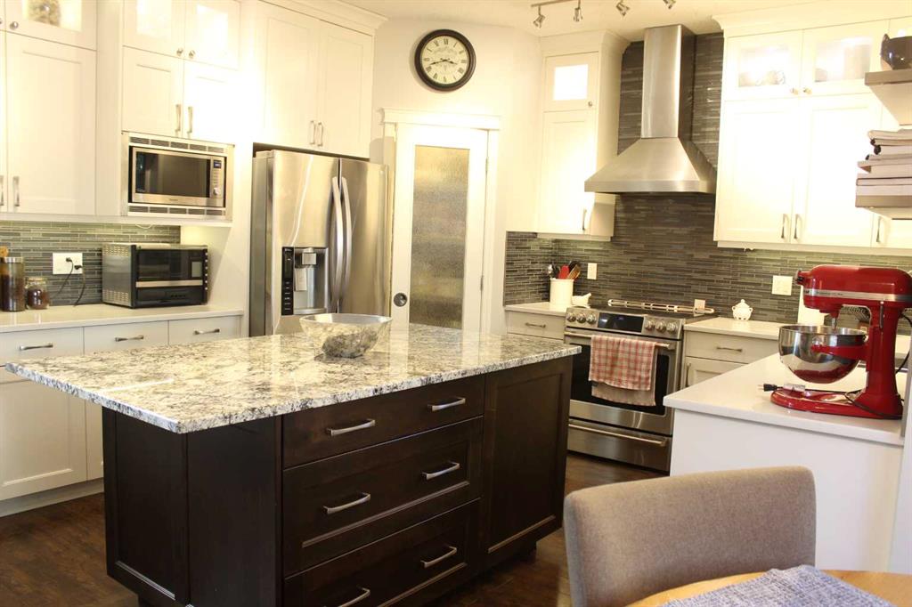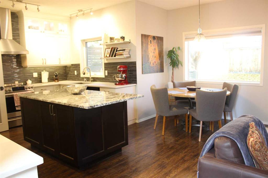 It’s everything you could want in a large home for the large family. Almost 300 sq/ft of living space across all 3 levels with 5 bedrooms, pie shape lot and big back yard, in a stunning location, tucked away in a quiet corner overlooking a beautiful park/playground and just around the corner from all your daily needs at the local shopping centre. The kitchen is breathtaking with it’s huge granite island and abundant counter and cupboard space and high-end finishes. The cozy living room is well incorporated into the open concept of the main floor. The dining room is elegant as is the discrete little powder room. Main floor conveniences like the generous mudroom, central laundry and smart walkthrough pantry will impress. Both main floor and upper level are sleek and contemporary with “hardwood” flooring throughout, super easy to keep clean. The Master bedroom is spacious and well appointed with walk-in closet and 5 pc en-suite bathroom. Two bedrooms and full bath complete the main floor which might boast peek-a-boo views of the mountains and COP. The lower level is host to 2 more generous bedroom with big bright windows, 4 pc bath and plenty of storage space. The house has been well tended and upgraded with genius features including heat pump cooling heating system which uses no gas when it’s warmer than -5 Celsius and solar panels that provide rebates and credits for a good portion of the year. The back yard is the envy of all, with extensive deck space, tons of yard and a gorgeous atmospheric retreat under the lighted pergola and outdoor fireplace mantle: perfect for cooling autumn nights. Absolutely no compromises or disappointments here, see for yourself and get ready to move home.
