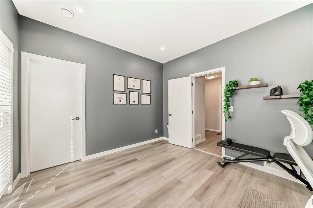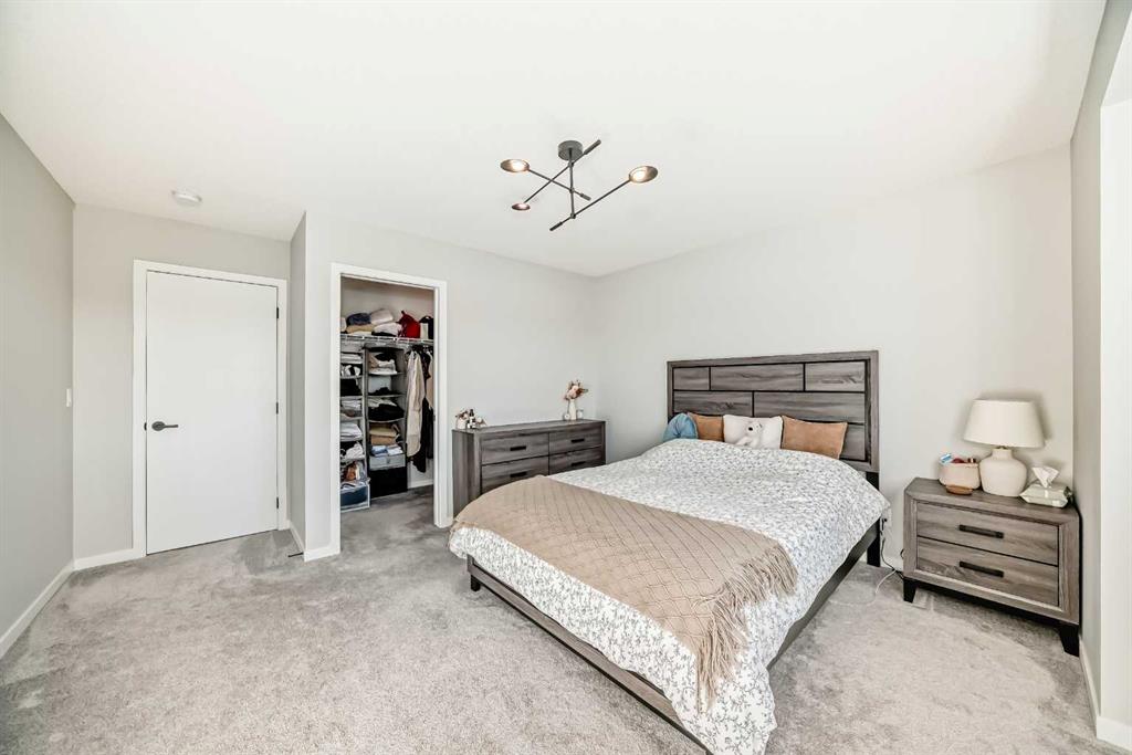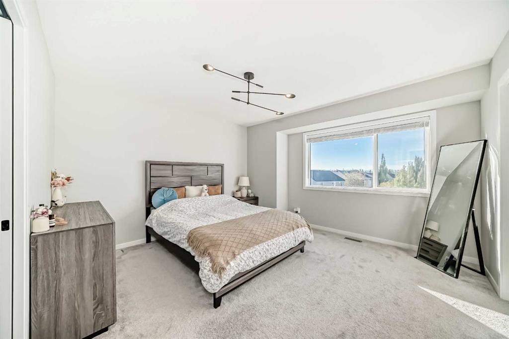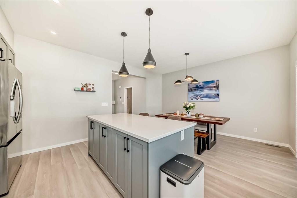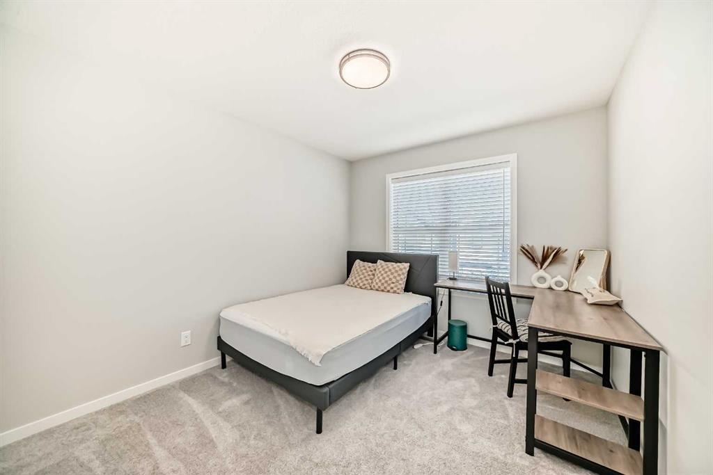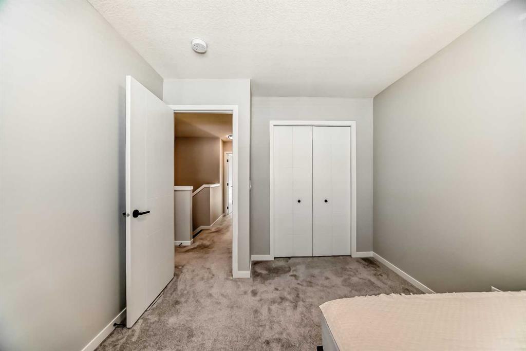 Welcome to this beautifully upgraded 2024-built townhome in the desirable community of Copperfield, offering over 2,000 sq. ft. of modern living space with a double attached garage. This bright and spacious 3-bedroom, 2.5-bath home features an open-concept main floor with large corner windows that fill the space with natural light. The gourmet kitchen includes quartz countertops, cabinetry, a large island, and an electric stove, perfect for both everyday living and entertaining. The living room is highlighted by a stylish electric fireplace and provides access to an oversized balcony with a BBQ gas line. Upstairs, the primary suite showcases breathtaking Rocky Mountain views, a walk-in closet, and a luxurious ensuite with dual vanities. Two additional bedrooms, a full bathroom, and convenient upper-floor laundry complete this level. The main floor flex room is fully developed and currently used as a home office, offering a quiet and functional space ideal for remote work or study. Enjoy added privacy with no townhomes directly behind, giving the backyard a more open, unobstructed feel. Located in a family-friendly, pet-friendly neighborhood, this home is just minutes from schools, parks, pathways, and everyday amenities. Modern finishes, open views, and a prime Copperfield location — this home truly has it all.