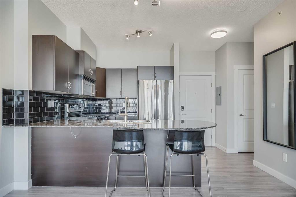 TOP FLOOR LIVING AT GATEWAY SOUTHCENTRE. Just awarded Condo of the Year for Southern Alberta by CCI and for good reason. This modern 2 Bedroom plus Den, 2 Bathroom condo offers nearly 900 sqft of bright, open space with 9 ft Ceilings, almost Floor- to-Ceiling Windows overlooking the peaceful Courtyard. Enjoy a Private Balcony with Gas Line, In Suite Laundry, A/C, Heated Underground Parking, and Storage. Gateway Southcentre is known for its exceptional amenities: Fitness Centre with Studio, 2 Guest Suites, 2 Owner Lounge/Party Room, Grand Foyer, On-Site Management, and serene Zen Courtyard. Utilities included in the condo fees. Pet Friendly (size restriction) upon board approval. Prime location at Macleod Trail and Anderson – walk to cafes, shopping, amenities, and transit/LRT, with Fish Creek Park nearby. Perfect for downsizers or first time buyers seeking style, comfort, and convenience!