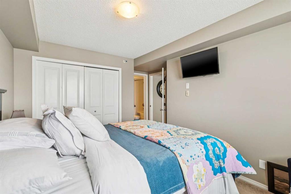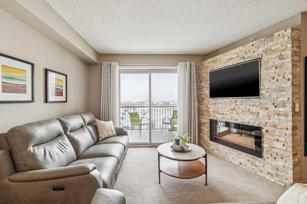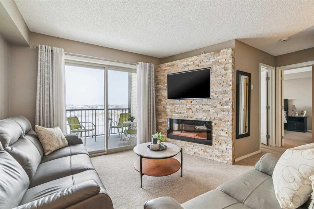 Welcome to #6409 – 403 Mackenzie Way SW, a beautifully maintained top-floor condo in the heart of Airdrie’s vibrant downtown core. Proudly owned by the original owner and gently lived in part-time, this home shows true pride of ownership throughout. Offering 2 bedrooms and 2 full bathrooms, this thoughtfully designed layout provides both comfort and privacy. The open-concept kitchen features granite countertops, stainless steel appliances, and an abundance of cabinetry, making it as functional as it is stylish. The adjacent dining and living areas are warm and inviting, highlighted by a custom stone fireplace feature wall that adds texture, character, and a modern focal point to the space. Step out onto your private top-floor balcony overlooking Railway Avenue, a quiet 30 km/h street — perfect for enjoying your morning coffee or a little afternoon people-watching. Being on the top floor means no neighbours above, and added peace and quiet. This unit also includes a titled heated underground parking stall, a dedicated laundry room with excellent storage — practical features that make everyday living easy. Located within walking distance to grocery stores, restaurants, medical offices, gyms, coffee shops and more, this is truly an unbeatable location for those who value convenience and walkability. If you’ve been searching for a well-cared-for, move-in-ready condo with stylish upgrades and a prime location, this top-floor gem is one you won’t want to miss.