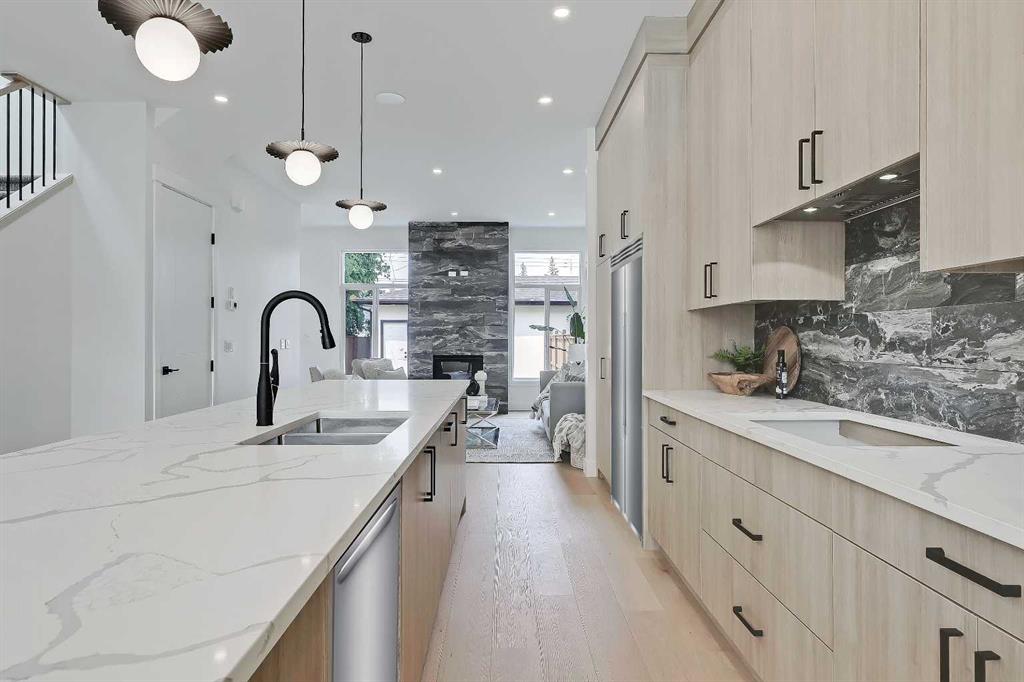 Sleek, Stylish, and Thoughtfully Designed – Welcome to 6416 34 Ave NW! From the moment you arrive, this home makes an impression. Modern curb appeal, a quiet tree-lined street, and a location that offers the perfect balance of city convenience and nature’s tranquility. Step inside, and you’ll instantly feel the elegance in every detail.The dining room sets the stage—an inviting space with designer lighting that creates the perfect ambiance, whether it’s a casual brunch or a lively dinner party. The kitchen is an absolute showstopper, featuring ceiling-height custom cabinetry, gleaming quartz countertops, and a large island that serves as the heart of the home. Whether you’re a gourmet chef or a takeout connoisseur, this space is as functional as it is beautiful. Flowing seamlessly from the kitchen, the living room is warm and welcoming, centred around a stunning full tile-surround fireplace with expansive windows on either side that bring in gorgeous natural light and a view of the backyard. A space like this just feels good—cozy yet sophisticated, perfect for quiet nights or entertaining guests. Tucked away at the back of the home, the mudroom is designed for real life, with custom storage, and a sleek tiled floor that stands up to Calgary’s seasons. Right next to it, the powder room feels upscale and refined—no detail overlooked.Head upstairs, and the luxury continues. The primary suite is a true retreat, with soaring ceilings, a large walk-in closet, and an ensuite that’s pure indulgence. A fully tiled shower with steam rough-in, heated floors, a soaker tub built for long, relaxing evenings, and dual vanities with quartz counters—this is the kind of space that makes every morning feel like a spa day. Two additional bedrooms, both bright and spacious, share a modern 4-piece bathroom with chic finishes. The laundry room is equally impressive, complete with a quartz folding counter, built-in cabinetry, and a deep sink—because practical should still be beautiful. And let’s not forget the fully self-contained 2-BEDROOM LEGAL BASEMENT SUITE (subject to permits and approvals by the city). With its own private entrance, it offers a full kitchen with quartz counters and ceiling-height cabinets, a spacious living area, two generous bedrooms, and a sleek 4-piece bath with a full tile surround. Whether it’s for extended family, guests, or rental income, this space adds incredible value.To top it all off, this home sits in a prime location—steps from the Bow River pathways, minutes to Winsport, U of C, and downtown. You’re surrounded by parks, shops, and some of the best local cafés in the city. Disclaimer: The photos are from the show suite.