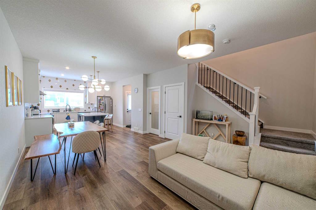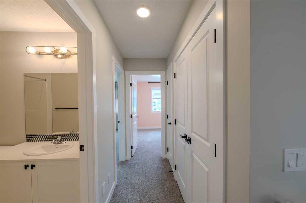 Welcome to this beautifully upgraded 5 bedroom, 4 bathroom home in the vibrant NE Calgary community of Cornerstone. Offering nearly 2,500 SQFT of total developed living space, this former builder’s show home is loaded with high-end upgrades and thoughtful features throughout. Step inside to discover 9ft ceilings, elegant luxury vinyl plank flooring, and a bright, open-concept layout. The chef’s kitchen is a standout, showcasing extended ceiling-height cabinets, quartz countertops, full tile backsplash, an executive hood fan, and upgraded designer lighting which is perfect for everyday living and entertaining friends or family. Enjoy unique wallpaper accent walls, elegant lighting throughout spacious bedrooms, and 4 full bathrooms, including one on the main level. The illegal basement suite offers a private side entrance, full kitchen , separate laundry and a generous living space, perfectly suited for extended family or potential rental income. Outside, you’ll love the large backyard, perfect for summer gatherings, and a rear 2-car parking pad with plenty of room to build a future garage. The home is ideally situated directly across from a large green space, with a brand new school coming soon, providing additional convenience for families. Recent major updates (2024) include: New Roof, New Rear Siding and New Window Trim This is a rare opportunity to own a turn-key, fully loaded home in one of Calgary’s fastest-growing communities. Close to parks, schools, shopping, transit. Book your private showing today, show home caliber homes like this don’t come up often or last long!