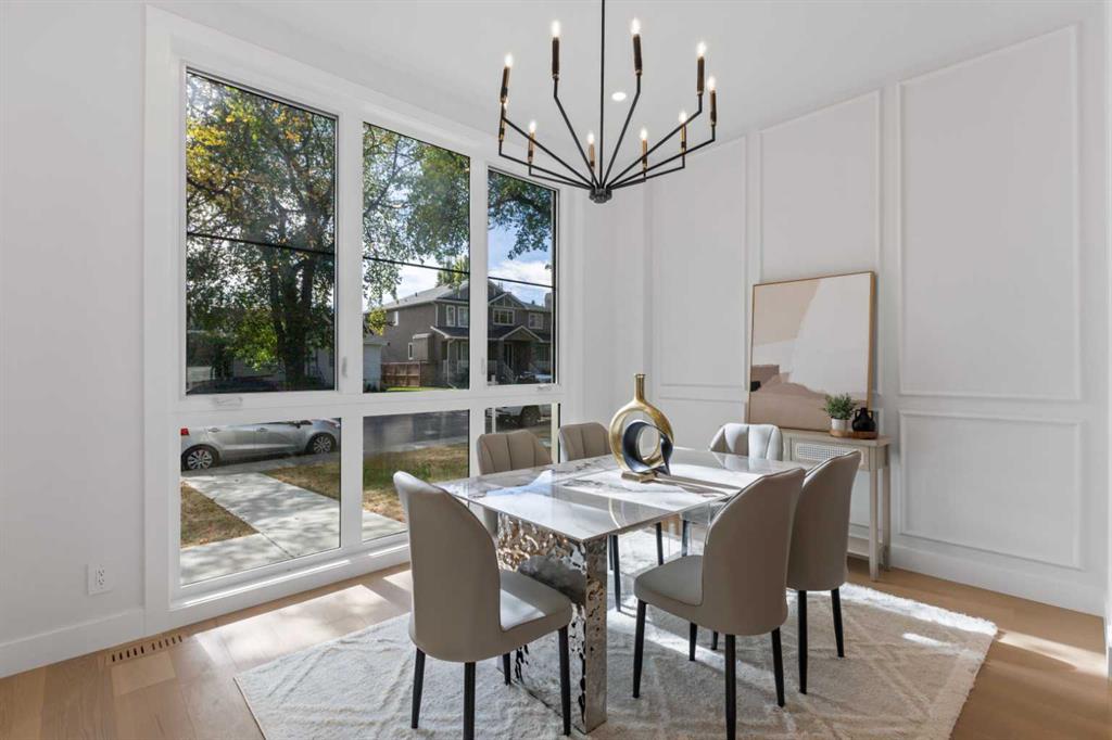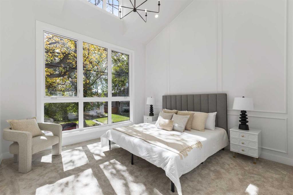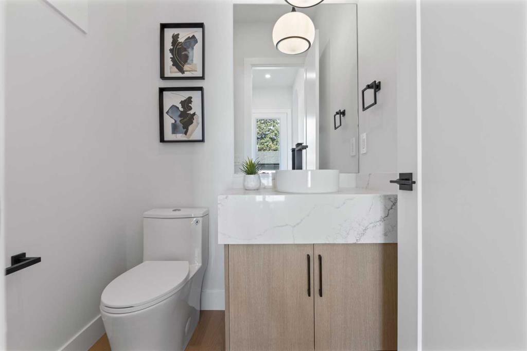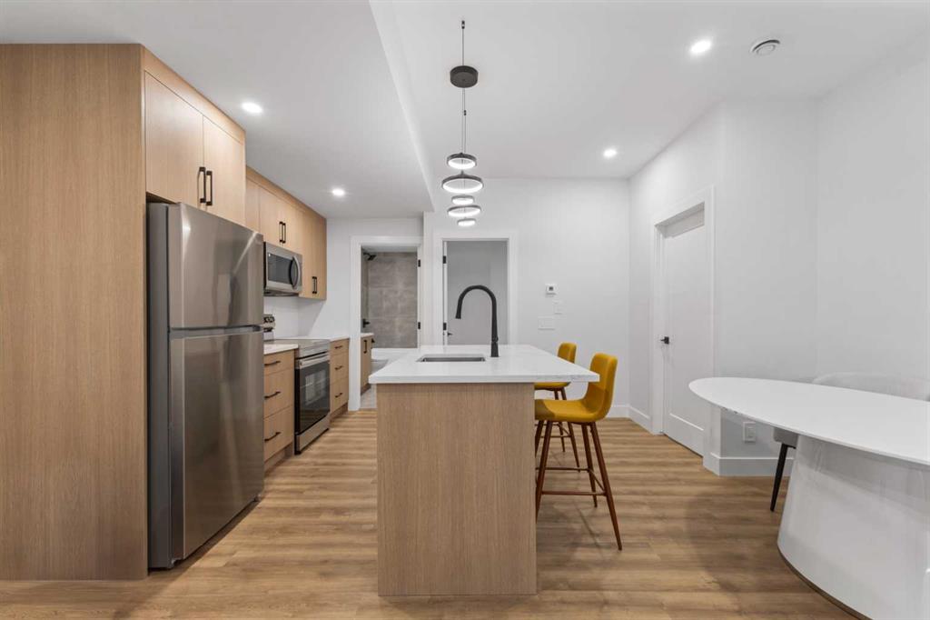 Sophisticated design and everyday function come together in this newly built semi-detached home, tucked onto a quiet, tree-lined street in the desirable community of Mount Pleasant. Spanning over 1,900 sq. ft. above grade, this home delivers 3 bedrooms, 2.5 bathrooms, and a thoughtfully designed legal 2-bedroom basement suite (approved by the city) – perfect for multigenerational living or added income potential. Just steps from Confederation Park and the amenities of the 4th Street corridor, this home offers the rare blend of luxury finishes, modern convenience, and unbeatable location. Step inside to 10’ ceilings, wide-plank engineered hardwood, and custom millwork that set an elevated tone from the start. At the front of the home, a bright dining space overlooks the tree canopy, while a discreet pocket office provides the perfect work-from-home setup with a built-in desk and storage. The heart of the main level is the chef’s kitchen, featuring a striking two-tone design with full-height cabinetry, quartz counters, a waterfall island with seating, and premium appliances including a panel-ready fridge, gas range, wall oven, and custom hood fan. A built-in pantry wall and oversized island ensure both form and function. Beyond, the living room invites gatherings with its gas fireplace surrounded by sleek tile and floating shelves. Large sliding doors flood the space with natural light and extend the living area into the landscaped backyard. At the rear, a mudroom with built-in lockers and a powder room keep daily comings and goings seamless. The second level is designed for family living. The primary retreat is a true sanctuary with soaring vaulted ceilings, oversized windows, and a large walk-in closet. The spa-inspired ensuite features heated tile floors, dual vanities, a freestanding soaker tub, glass-enclosed shower with dual showerheads, and private water closet. Two additional bedrooms with custom closets, a 4-piece bath, and a full laundry room with sink and cabinetry complete this level. The fully finished basement is a legal 2-bedroom suite with its own private side entrance. Finished to the same high standards as the upper floors, the suite includes a bright kitchen with quartz counters and stainless steel appliances, an open-concept living and dining space, a 4-piece bathroom, in-suite laundry, and two comfortable bedrooms with ample closet space. Perfect for extended family, guests, or rental income, it’s a flexible space that adds both livability and long-term value. Enjoy indoor-outdoor living with a private, north-facing backyard that’s ideal for summer entertaining. A double detached garage provides secure parking and storage. Mount Pleasant is one of Calgary’s most connected neighbourhoods, offering quick access to downtown, 16th Avenue, and major commuter routes. You’re walking distance to Confederation Park, playgrounds, and top-rated schools, with local favourites like Velvet Café, 4th Spot Kitchen & Bar, and Milk Ice Cream nearby.