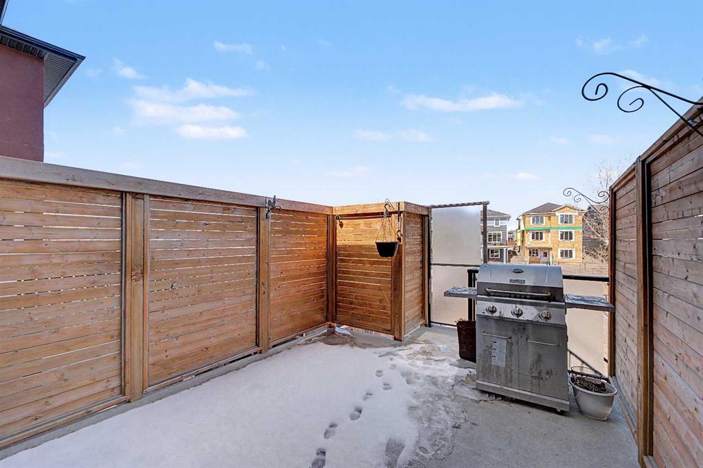 Step outside to a beautiful deck, perfect for summer BBQs, with stairs leading down to a low-maintenance backyard that opens onto scenic walking paths along Nose Creek.