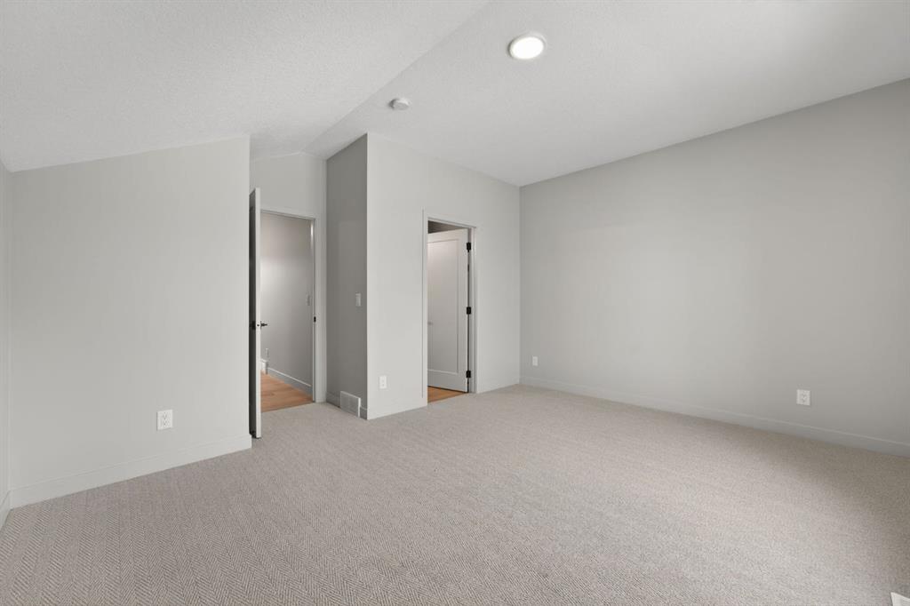 The second level includes two spacious bedrooms, each with walk in closets, along with a full bathroom and conveniently located laundry. The entire third floor is dedicated to the primary retreat, complete with a lofted den, a substantial walk in closet, and a spa inspired ensuite designed as a true escape.