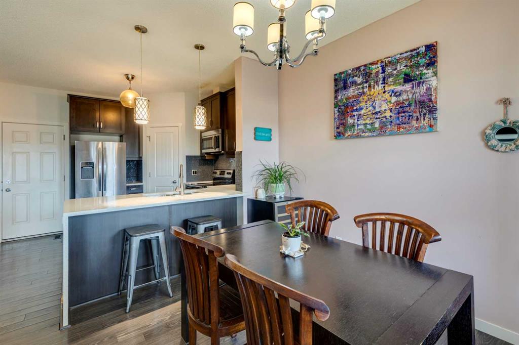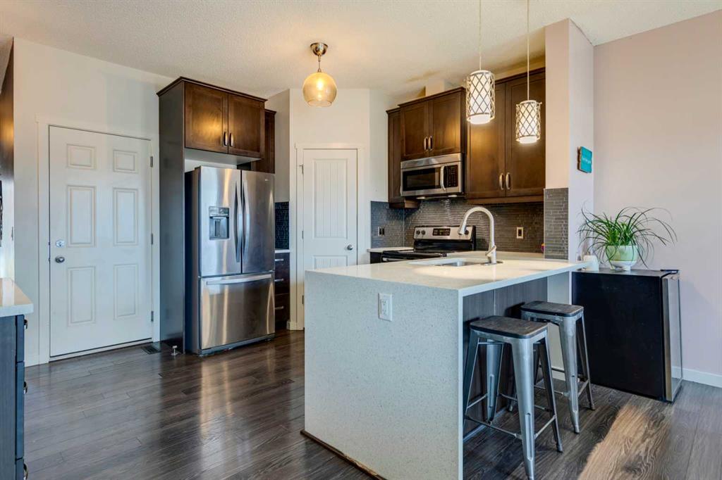Welcome to 65 Copperpond Landing SE.. This is one of the most practical and sought-after units in the complex. With 3 bedrooms & 2.5 bathrooms, this is perfect for first-time buyers, someone looking to downsize, or an investment opportunity. Right out the back door is a green space with a playground, perfect for young families. This also provides plenty of additional street parking, with direct access to the unit. The open concept main floor has a nicely appointed kitchen with an eating bar, upgraded cabinetry, a corner pantry, and waterfall countertops. The living room is bright yet cozy with a gas fireplace and faces west to catch the beautiful Alberta sunsets! The main floor also has a 2-piece powder room and access to the single attached garage. Upstairs, you will find the primary retreat you have been searching for, with plenty of room for the king bedroom set, large walk-in closet, and 4-piece ensuite. Two additional generously sized bedrooms and another full washroom complete this level. The basement is unspoiled and is awaiting your personal touch. You will find the mech neatly tucked away in the corner and conveniently located not far from the stairs. All of this is in the mature community of Copperfield with plenty of schools, walking/ bike paths, shopping, and easy access to major roadways. Call your favorite realtor to book a private viewing today. It’s a move you’ll be glad you made.