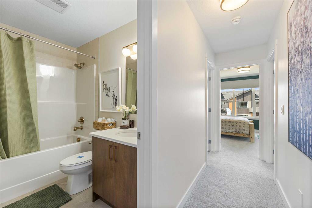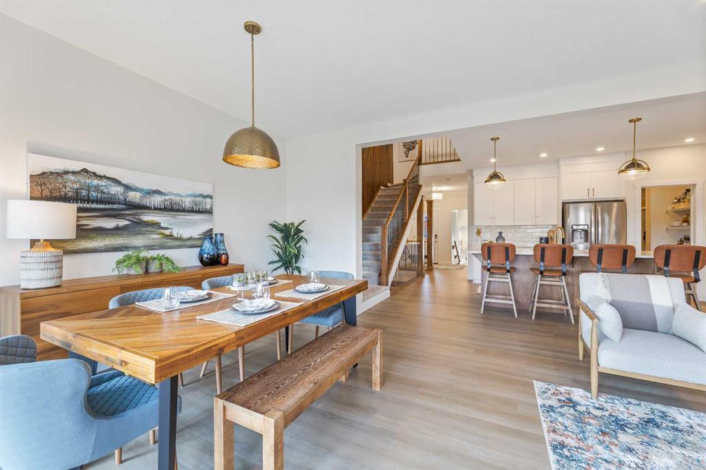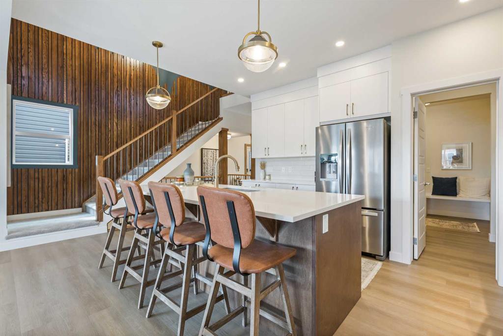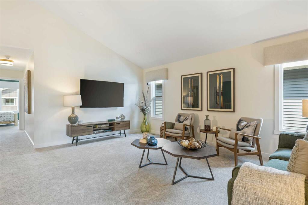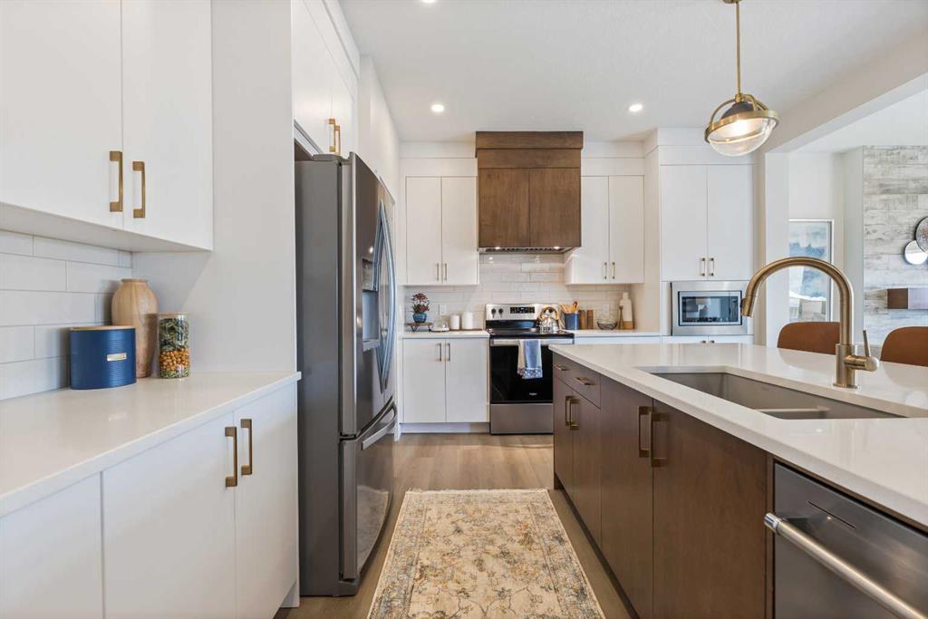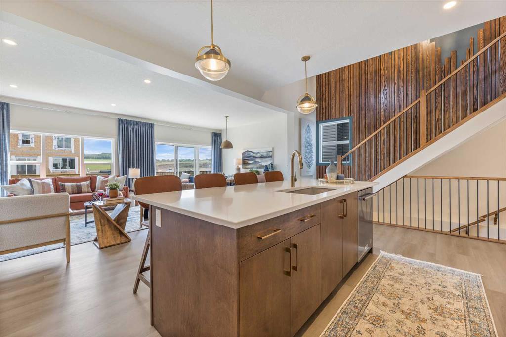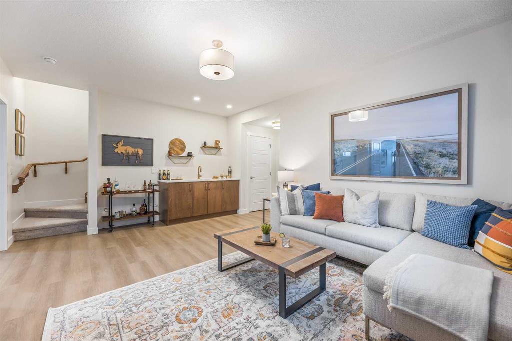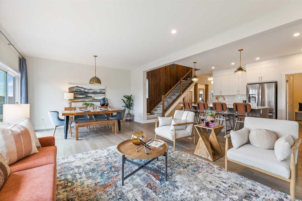 Have you ever walked into a brand-new show home and instantly dreamed of living there, surrounded by designer finishes, thoughtful upgrades, and beautifully styled spaces? Well, now is your opportunity. The Genesis Show Home could be yours in summer 2026. From the moment you step inside, you’ll be captivated by the soaring open-to-above ceilings and the bright, expansive open-concept main floor designed for both everyday living and entertaining. A convenient mudroom off the garage keeps life organized, while the heart of the home, the kitchen, is nothing short of spectacular. Featuring floor-to-ceiling white cabinetry, a striking two-toned hood fan, and a perfectly matched island accented with elegant gold hardware, this space is sure to be the envy of the town. The dining area flows seamlessly into the inviting living room, where the sunny south-facing backyard floods the entire space with natural light. A stunning mountain-inspired feature wall guides you upstairs to a central bonus room with a vaulted ceiling, offering perfect separation of the private sleeping quarters. The primary suite is a true retreat, spacious enough for a king-size bedroom set, complete with a large walk-in closet and a spa-like ensuite featuring dual sinks, a luxurious soaker tub, and an oversized shower. Two additional bedrooms each offer walk-in closets, complemented by a dedicated full bathroom. A convenient second-floor laundry room makes daily chores effortless. After a day spent enjoying the outdoors, unwind in the fully finished basement, ideal for movie nights and hosting guests. Visitors will appreciate their own private bedroom and bathroom, along with a stylish wet bar. An additional flex room provides the perfect space for a home gym, yoga studio, or hobby area. Located in the vibrant community of Fireside in Cochrane, this home offers the perfect blend of small-town charm and modern convenience. With quick access to Calgary and just a short drive to the breathtaking Rocky Mountains, Fireside is ideal for those who love an active lifestyle, scenic surroundings, and a strong sense of community. This is more than a home; it’s a rare chance to own a professionally designed showpiece where every detail has been carefully curated.