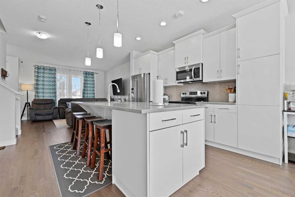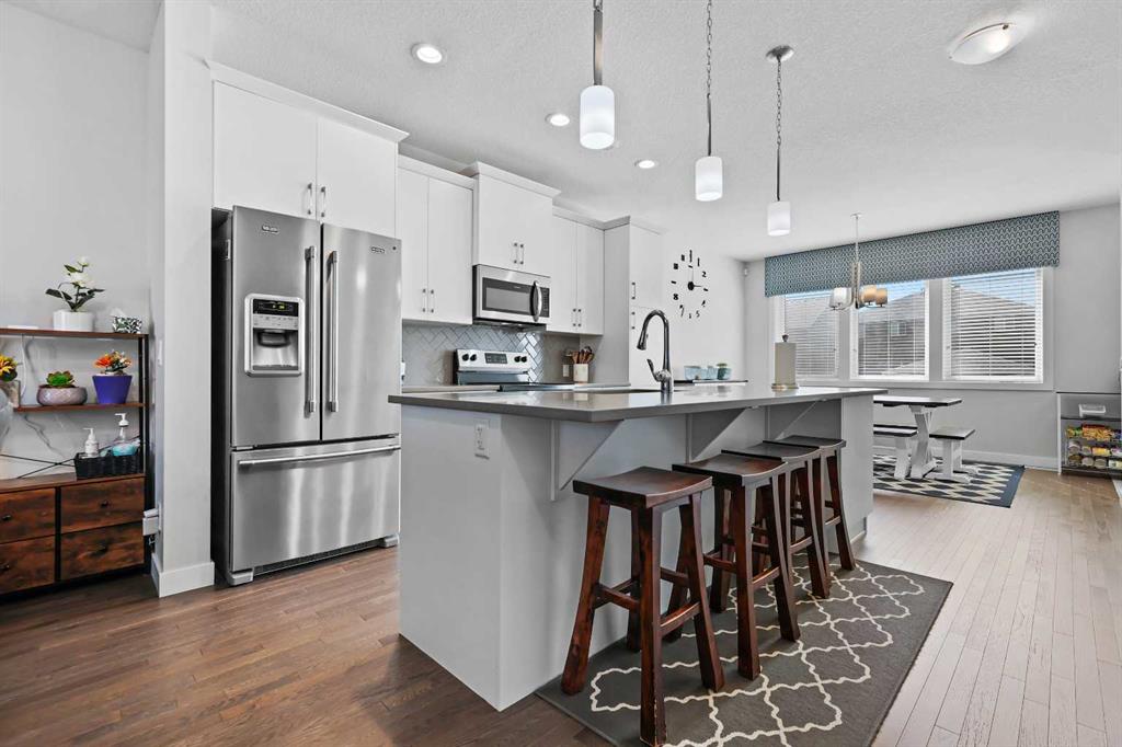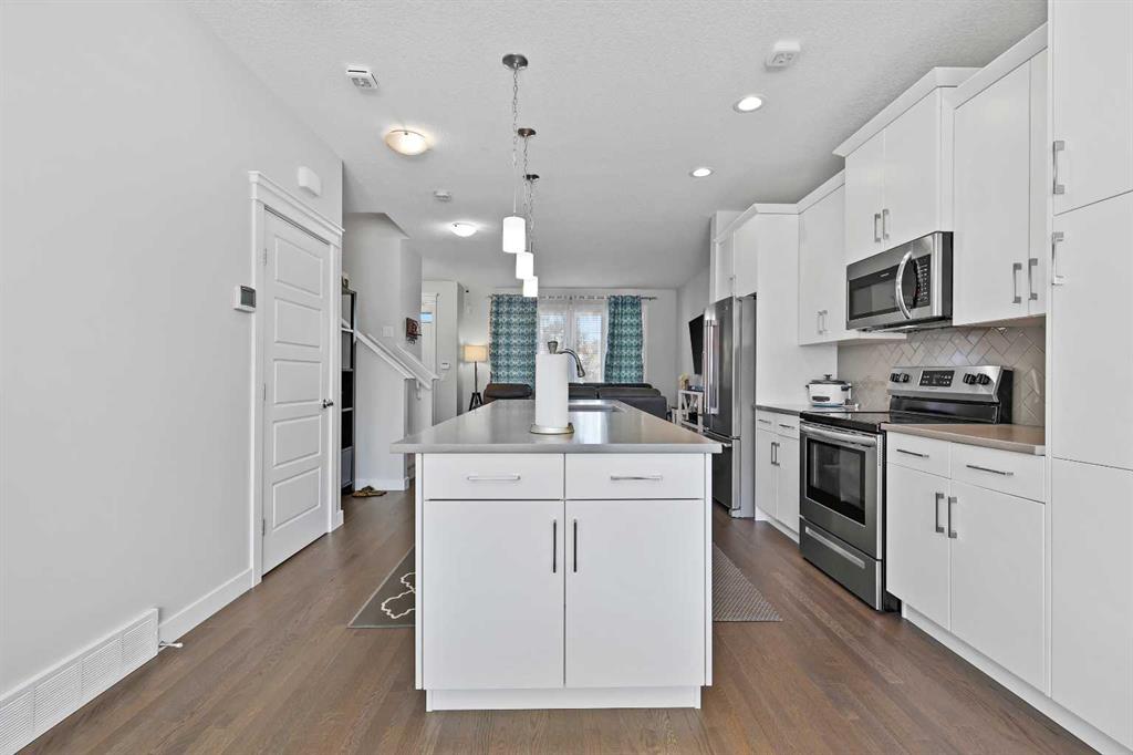Welcome to this beautifully designed 5-bedroom, 3.5-bathroom semi-detached home in the vibrant community of Redstone. Built by NuVista Homes, this move-in-ready property offers over 1500 sq. ft. above grade with a fully finished basement—perfect for growing or multi-generational families. The main floor features 9’ ceilings, hardwood flooring, a sleek kitchen with quartz countertops, stainless steel appliances, a walk-in pantry, and a spacious rear mudroom with built-in bench. Enjoy central A/C, a brand new roof (June 2025), and a private, landscaped backyard with a 2-car parking pad. Upstairs offers 3 bedrooms, 2 full bathrooms, and a dedicated laundry area with washer & dryer. The fully finished basement includes 2 additional bedrooms, a full bath, rec room, and a second laundry area with its own washer & dryer—ideal for added convenience or rental potential. Located on a quiet street close to schools, parks, shopping, and transit. This is the perfect blend of comfort, style, and functionality. Book your showing today!