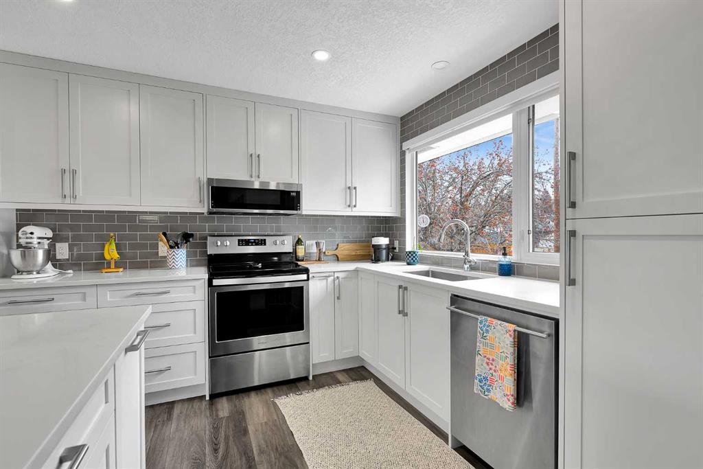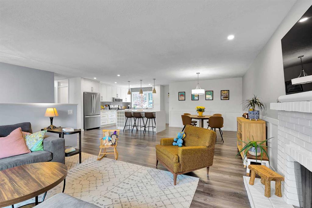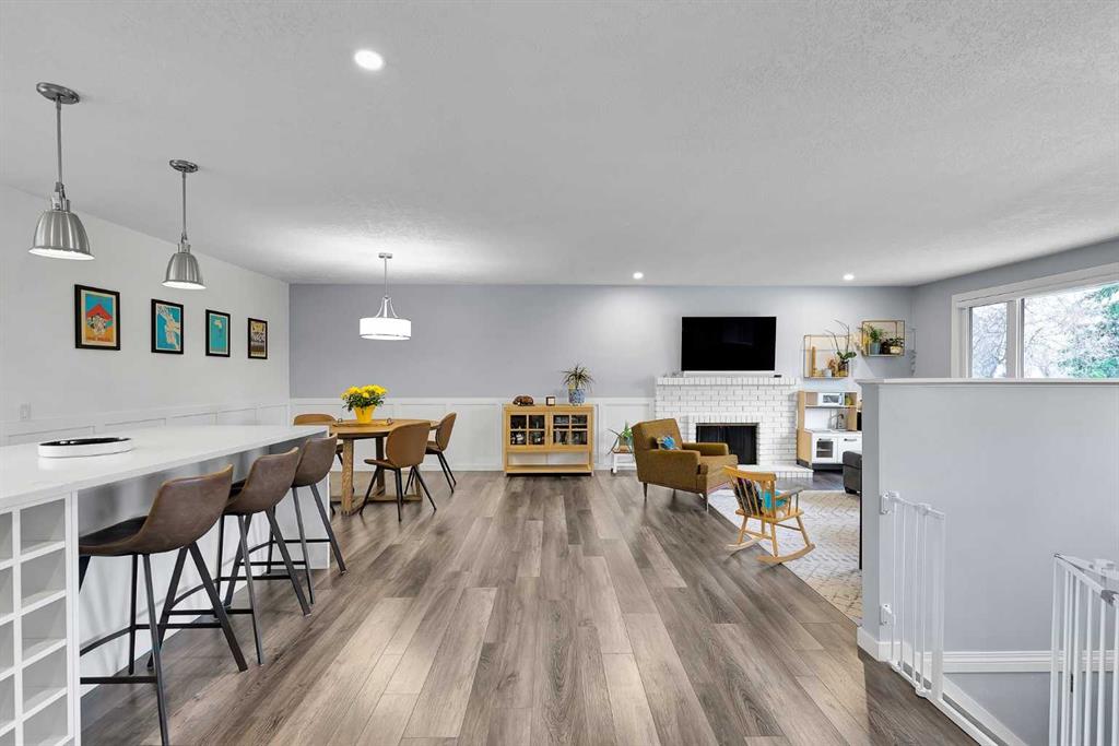Beautifully updated and move-in ready, this impressive Dalhousie bi-level is ideally located on a quiet street surrounded by upgraded high-end homes and the bike path outside the backyard gate. Set on a huge lot, this home offers the perfect blend of comfort, style, and location in one of NW Calgary’s most established old school neighbourhoods. The bright open concept main floor features a fully renovated kitchen with large functional quartz island, upgraded appliances , plenty of space for dining, living and a wood burning fireplace which is a rarity today. Three spacious bedrooms upstairs include a primary with full ensuite ensures space and flexible living. The third bedroom opens up onto a sunny brand new 21ft x 10ft composite deck to enjoy the days of sunshine and for outdoor living. The lower level offers a large family area with additional wood burning fireplace, 4th bedroom and 2pc bathroom. The oversized double attached garage is surprisingly spacious and easily holds 2 vehicles with enough room for a workshop, additional storage and easy access to the home. Outside you will be delighted with a huge yard so rare in new builds. The bike path behind the home is cleared in the winter ideal for walks and for kids to safely play off the street. Everything you could possibly need like C-train, shopping, parks and schools are all here. This turnkey home is an excellent opportunity to get into this desirable neighbourhood in a prime location.