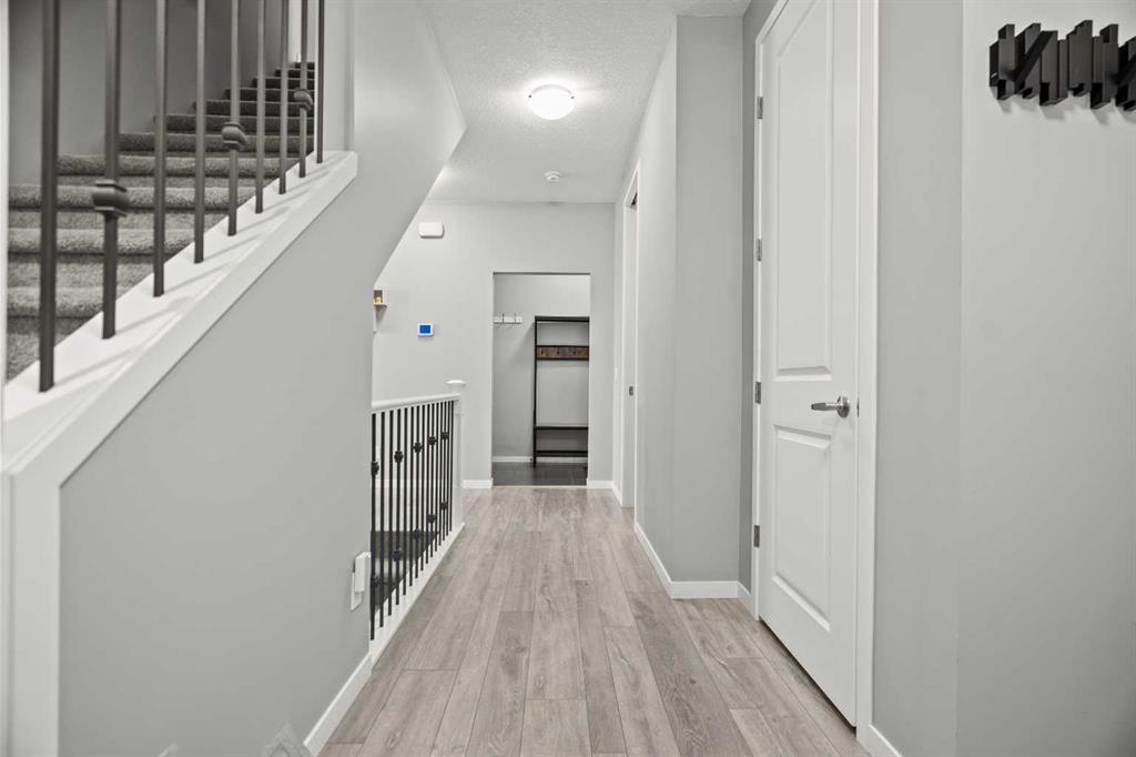 The chef-inspired kitchen is a true highlight, complete with premium stainless steel appliances, quartz countertops, a large center island perfect for gatherings, ample cabinetry, tiled backsplash, and a convenient corner pantry. Sliding patio doors lead to the sunny, fully fenced backyard with mature trees, offering privacy, a large deck, and plenty of space for relaxing, barbecuing, or children and pets to play. A functional mudroom with garage access and a 2-piece powder room complete the main level. Upstairs, the spacious bonus/family room provides versatile living space for movie nights, a play area, or a home office. This level also includes a full 4-piece bathroom and a convenient laundry room. The primary suite offers a peaceful retreat with a walk-in closet and a spa-inspired 4-piece ensuite featuring modern finishes. The fully developed basement adds even more living space with a large recreation room, a 3-piece bathroom, ample storage, and flexibility for future use such as a home gym, hobby room, or guest area. Outside, the finished double attached garage and driveway provide ample parking. The landscaped backyard offers both privacy and beauty, making it ideal for outdoor enjoyment. Located in the vibrant community of Livingston, residents enjoy access to the Community Hub, splash park, playgrounds, parks, green spaces, and extensive walking and bike paths, along with quick access to major roadways, shopping, restaurants, and public transportation. This move-in-ready home offers an exceptional combination of upgrades, space, and location—an opportunity not to be missed.