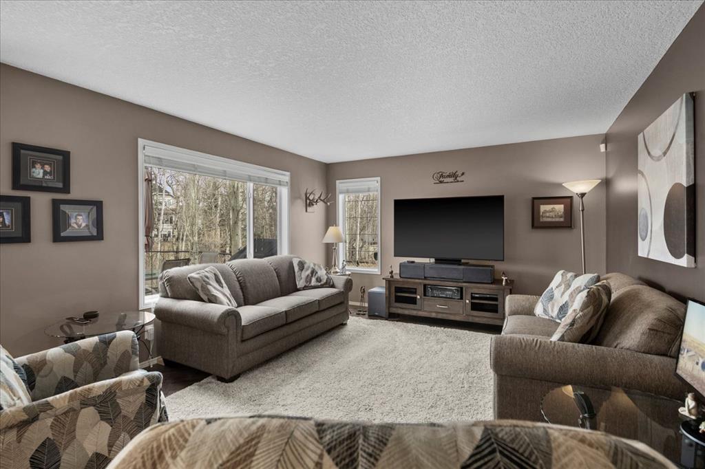 There’s a rhythm to this home that reveals itself through the back windows – the kids running through the gate to the park, unhurried evening walks, and in winter, a skating rink the neighbours maintain themselves. The original owners raised their children here, and they’ll tell you the greenspace wasn’t an amenity. It was part of daily life. Siding and backing directly onto the park and playground, this setting is increasingly hard to find. The yard is well tended, complete with an underground irrigation system and mature apple trees that produce enough for homemade pies. Inside, the home has been thoughtfully designed and well cared for. A main floor den sits behind double French doors – a quiet workspace or flex room with windows overlooking the front yard. The kitchen features maple cabinetry, granite counters, a generous island, and a most of the appliances, including a five-burner gas range, are newer. The adjacent dining nook captures the view of the green-space, and the family room opens off the kitchen, wrapped in big windows. Hardwood flooring runs throughout the main level. Upstairs, the layout is well considered: the bonus room, anchored by a fireplace, is set apart from the bedrooms by the staircase – keeping the sound of movie nights at a comfortable distance from sleeping little ones. Three bedrooms share this floor, including a spacious primary with lovely views and an ensuite featuring dual sinks, an oval jetted tub, and a separate shower. The fully developed lower level adds a large rec and games room ready to become a theatre space, a fourth bedroom with walk-in closet, a full bathroom, and a generous storage room. Additional features include central air conditioning, a finished and heated garage, a newer hot water tank, and newer hail-proof asphalt shingles. First-time to market from the original owners, and ready for its next family.