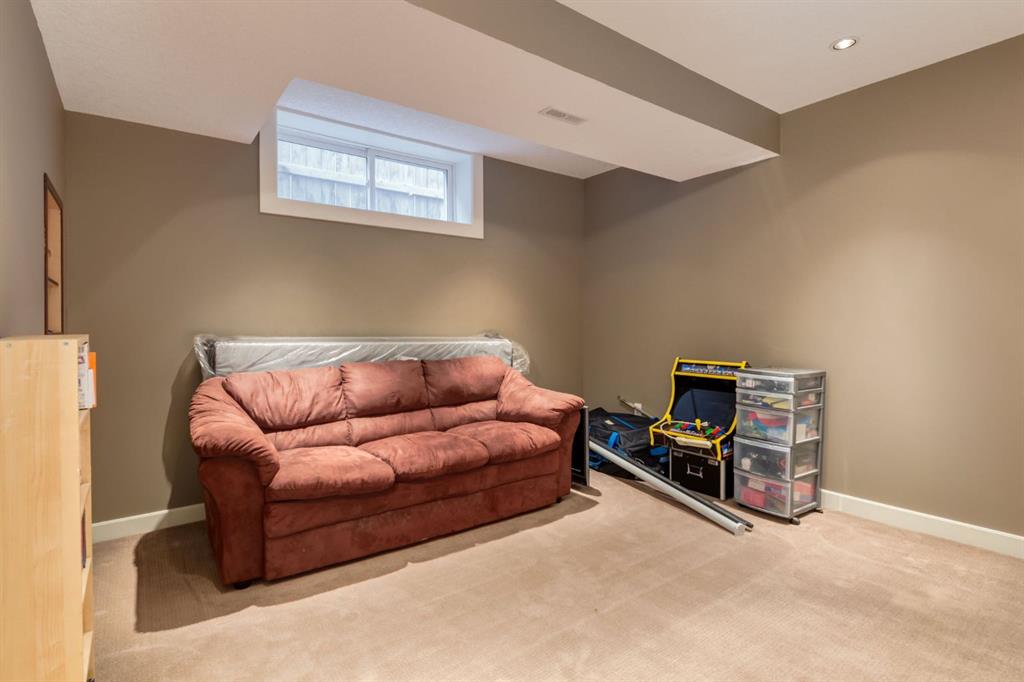 This stunning custom-built semi-detached home in the heart of Bowness offers exceptional style, comfort, and location. The charming exterior features a welcoming front porch and durable Hardie Board siding. Inside, rich maple hardwood floors flow throughout the open-concept main level, where a cozy front family room with a gas fireplace leads into a spacious dining area and a gourmet kitchen with full-height dark maple cabinetry, granite countertops, a gas stove, built-in wine fridge, custom hood fan, travertine backsplash, and a large island with seating for three. A bright breakfast nook overlooks the backyard with a deck, privacy screen, and beautiful mountain ash tree, while the concrete walkway leads to the oversized double garage with extra storage. Upstairs, a skylight fills the space with natural light, and the elegant metal spindle railing adds a designer touch. The primary suite is a peaceful retreat with vaulted ceilings, plush Berber carpet, and a spa-inspired ensuite featuring in floor heat, dual sinks, granite counters, a glass and tile shower with a rain head, a soaker tub, and a large walk-in closet. Two additional bedrooms, a stylish main bathroom, and a convenient laundry room with a sink complete the upper level. The lower level is fully finished with 9-foot ceilings, in-floor heat, a large recreation area with a corner bar and beverage fridge, a flex room ideal for a guest bedroom or home gym, and plenty of storage. Additional highlights include a two-piece powder room with a chandelier, central vacuum, high-efficiency furnace, and sump pump. Perfectly located within walking distance to Main Street Bowness, trendy restaurants, the Bow River pathways, and Bowness Park, with quick access to Winsport, downtown, and the Trans-Canada Highway for easy mountain getaways, this home truly has it all.