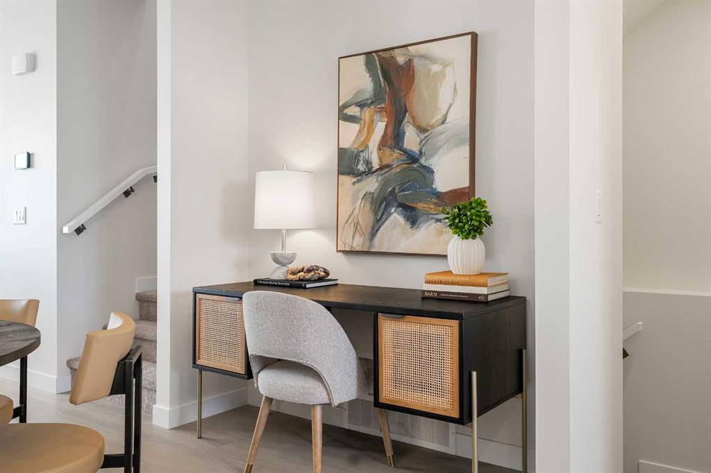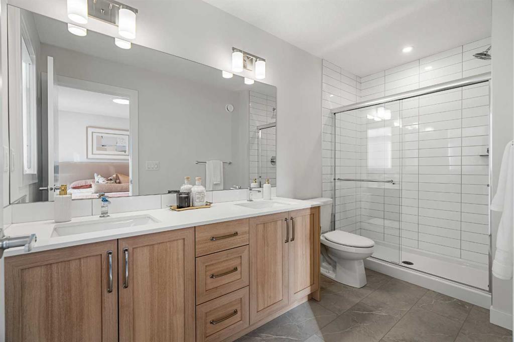 Welcome to the Charlotte by Partners Homes, a thoughtfully designed paired home in the growing NE Calgary community of Homestead. With 9 foot ceilings on both the main floor and basement and a separate side entrance, this home offers a functional layout with strong future potential. The main floor is bright and open, with a rear kitchen that anchors the space. It is finished with quartz countertops, full-height cabinetry, soft-close doors and drawers, an upgraded backsplash, chimney-style hood fan, and a gas range. The central island provides additional prep and seating space, while the front dining and living areas are filled with natural light, creating an inviting atmosphere. Durable luxury vinyl plank and luxury vinyl tile flooring run throughout the main level for a clean, modern look. Upstairs, the primary bedroom includes a walk-in closet and a private ensuite with dual sinks and a walk-in shower. Two additional bedrooms, a full bathroom, and upper floor laundry complete the level with everyday functionality in mind. The basement is unfinished but ready for development, featuring 9 foot ceilings, rough-in plumbing, and large egress windows. Additional features include a gas line rough-in in the kitchen, front landscaping, and a rear gravel parking pad with lane access. Located in Homestead, this community offers over 4 kilometers of walking paths, a 19 acre wetland, and future schools, parks, and sports fields. With convenient access to transit and major roadways, this is a great opportunity for buyers looking for a new construction home in Calgary with long-term value.