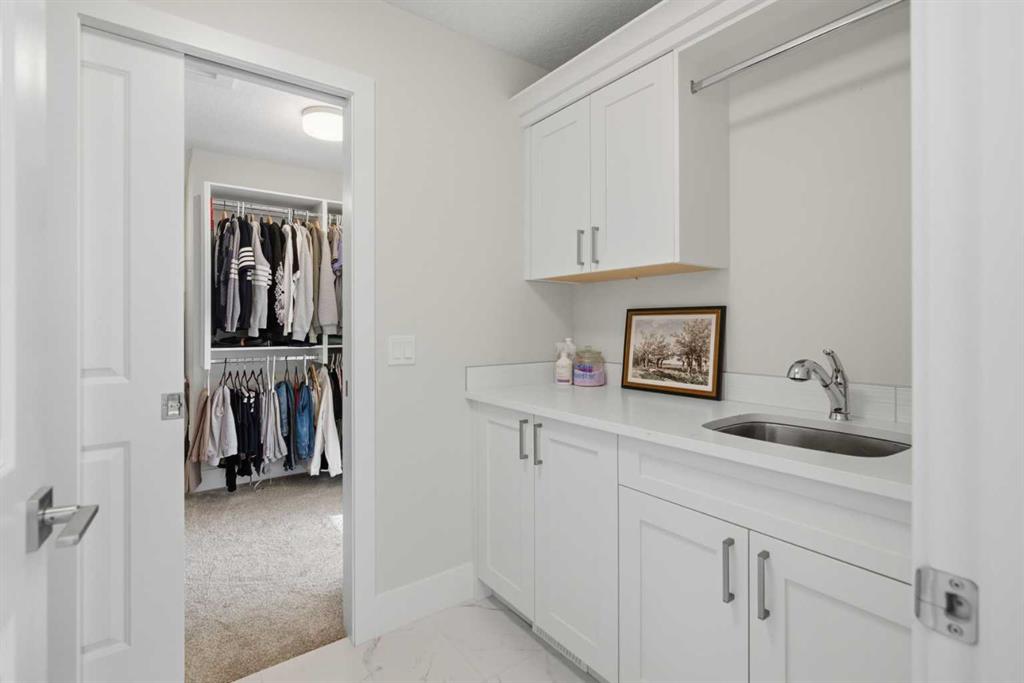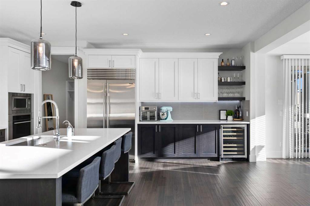 3,155 SQ.FT. | 3 BEDS | 2.5 BATHS | HOME OFFICE | 3-CAR GARAGE | SOUTH-FACING WALKOUT | BACKING GREENSPACE | DESIGNER FINISHINGS | Set on a rare south-facing walkout lot backing onto a walking path, this executive home offers one of the finest opportunities in Aspen Woods. Natural light pours through the main level, highlighting the soaring vaulted ceilings of the great room, upgraded hardwood floors, refined millwork, and statement light fixtures, all anchored by an elegant curved staircase. The gourmet kitchen is built for both everyday living and entertaining, with endless storage, quartz countertops, above- and under-cabinet lighting, and premium appliances including a Sub-Zero refrigerator, Wolf induction cooktop, chimney-style range hood, and built-in microwave and wall oven. A generous dining area opens through double patio doors to the south backyard, extending the living space outdoors. The main floor also features a closed office, half bath, and a functional mudroom with an oversized walk-in pantry. Upstairs, a large bonus room separates the primary retreat from the secondary bedrooms. The primary suite offers a true escape with a 5-piece ensuite including a soaker tub, dual vanities, stand-alone shower, and a spacious walk-in closet. Two additional bedrooms, a 5-piece main bath, and a full laundry room complete the upper level. The walkout basement is unfinished and ready for your vision, with direct access to the backyard and pathways beyond. A triple car garage, high-end finishes throughout, and an unbeatable location close to downtown, 17th Avenue’s shops and restaurants, Market Mall, Foothills Hospital, parks, and golf courses make this a standout opportunity to own a walkout home in Aspen Woods.