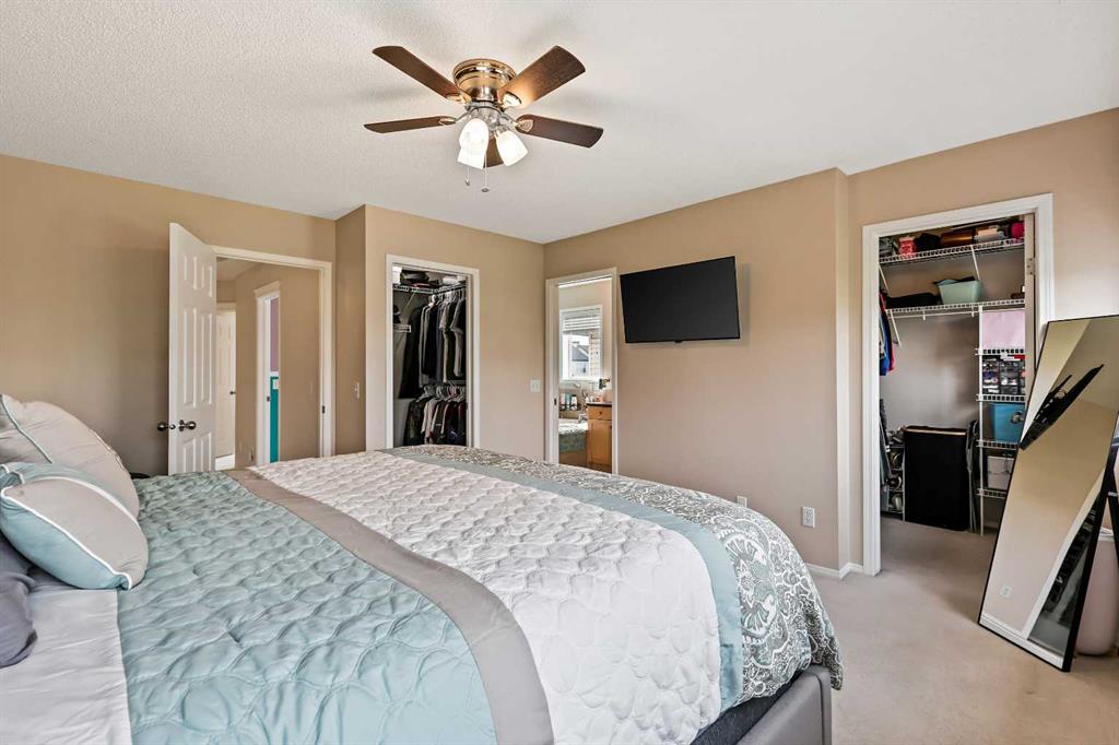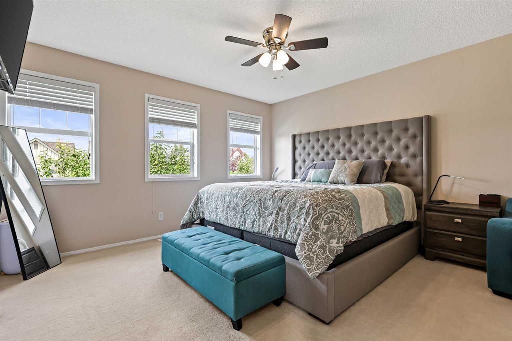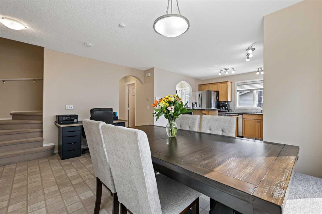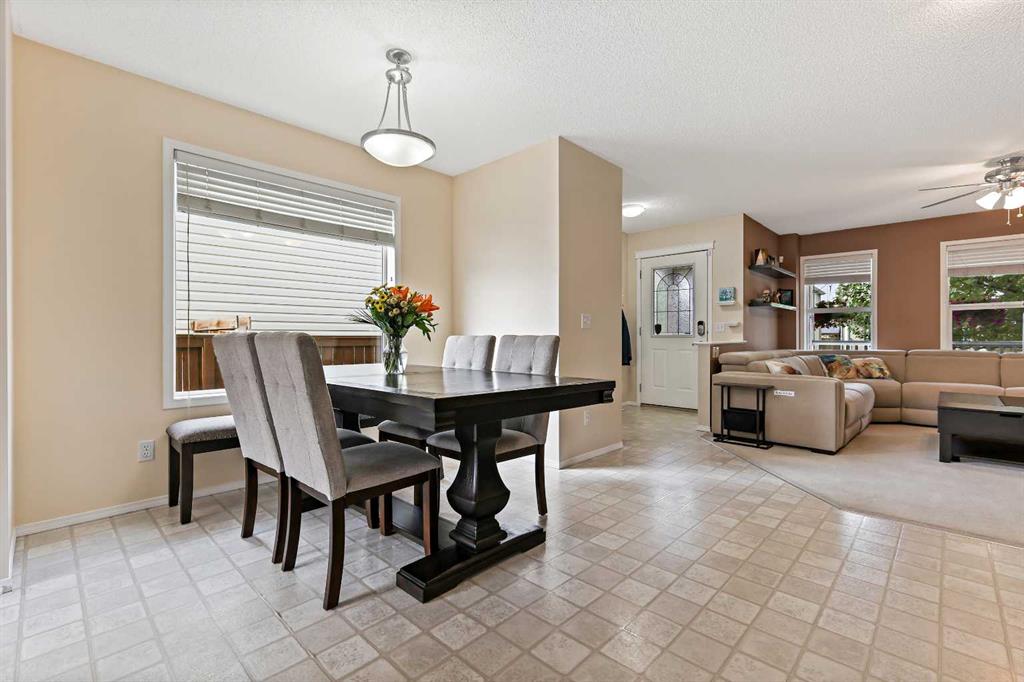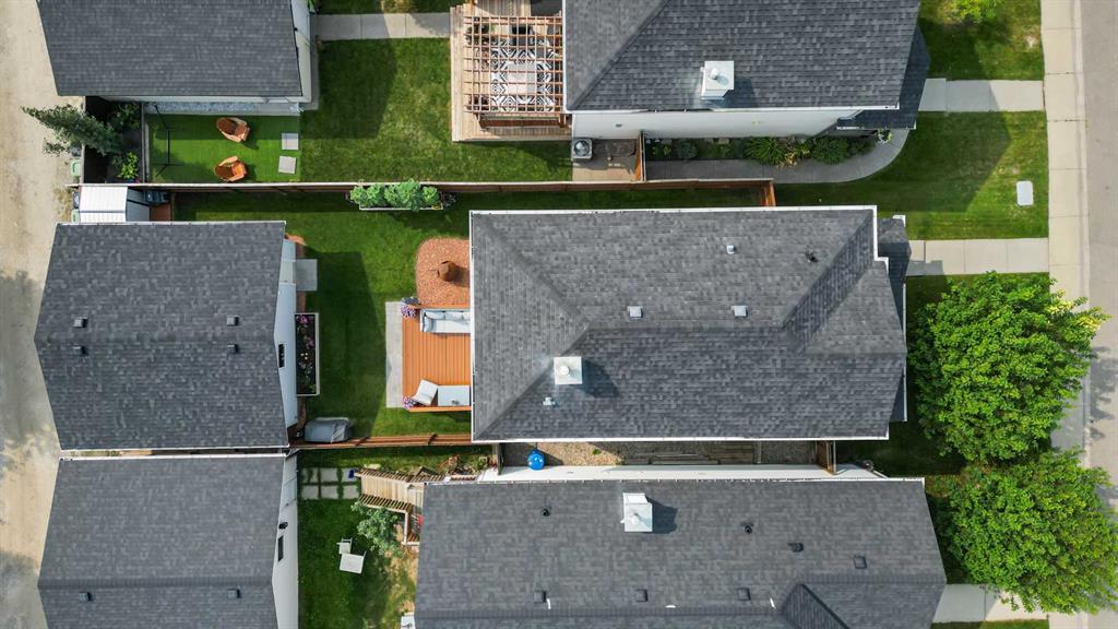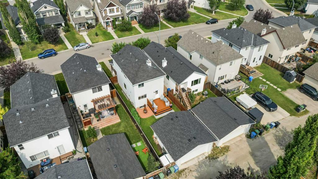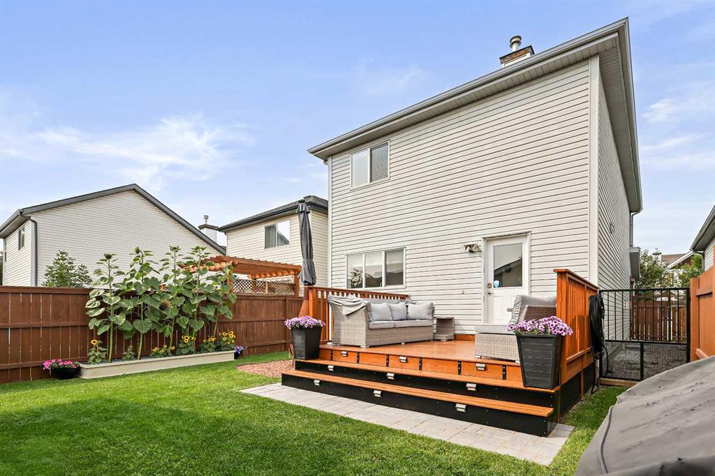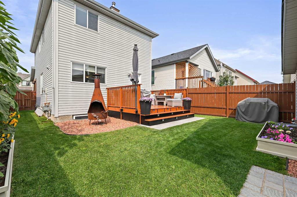 **BRAND NEW ROOF ON RESIDENCE NOVEMBER 2025!**Fall in love with this immaculately maintained 2-storey home located in the mature, family-friendly community of Copperfield. Perfectly positioned on a quiet street and within walking distance to two beautiful parks and nearby McIvor amenities, this home delivers charm, function, and a true sense of community. Boasting 3 bedrooms, 2.5 bathrooms, and an oversized double detached garage, this home offers almost 1,500 sq. ft. of thoughtfully designed living space—plus a backyard oasis you’ll never want to leave. Step inside and immediately notice the care and attention these home owners have poured into every detail. The entire interior has been freshly repainted, including doors, baseboards, and trim, giving the home a bright, crisp feel. The spacious living room features a beautifully re-tiled and painted fireplace, stylish floating shelves, and a wall-mounted TV bracket ready for movie nights. The renovated kitchen is a showstopper, featuring a brand-new tile backsplash, all new stainless steel appliances (oven, fridge with waterline, microwave with built-in hood fan, and dishwasher), and sleek stainless base trim. A cozy dining space with huge over sized feature window inviting an abundance of natural daylight in, making this home perfect for family dinners and entertaining. Upstairs, the primary suite is a true retreat with dual walk-in closets, a four-piece ensuite with a soaker tub and handheld sprayer, and even a TV wall mount. Two additional bedrooms and a second full bathroom complete this level. The backyard is a dream—a large brand-new deck with railings, fresh sod, custom stonework, two umbrella mounts, a matching metal shed with landing, a new metal gate, and a custom fire pit create the perfect outdoor entertaining space. The garage has a brand-new roof and plenty of room for vehicles, storage, and projects. Additional features include: Front veranda for morning coffee, new smoke detectors throughout, new Telus security system and in-ground sprinkler system for easy lawn care. This home is truly move-in ready, packed with upgrades, and overflowing with character. Don’t miss the chance to call this beautiful Copperfield home yours!