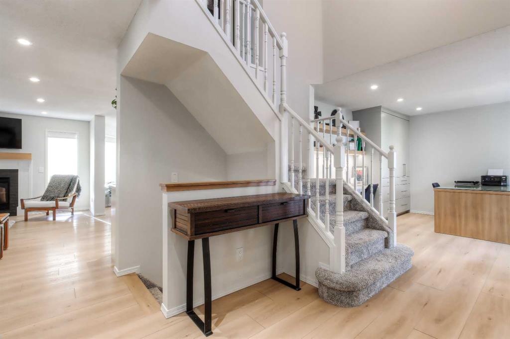 **Open house Saturday April 25th 1-3** Welcome to this beautifully renovated two-storey home, in the sought after neighbourhood of Harvest Hills! offering over 1,800 sq. ft. of living space plus and a attached TRIPLE garage! Situated on a landscaped lot with a fully fenced backyard and a sunny deck, this property checks all the boxes. Step inside a bright, open layout designed for both everyday living and entertaining. The spacious kitchen features a large granite island, custom cabinetry, a chefs kitchen with stainless steel appliances, and large bright windows. Flowing seamlessly into the family dining room full of natural light that provides access to the deck. The inviting living room offers a warm fireplace with custom built-in mantel. Additional main-floor highlights include a flexible front office, the laundry room, and a 2-piece bathroom. Upstairs, discover 3 well-sized bedrooms, each with great layouts and storage. The primary retreat boasts, a walk-in closet, and a beautiful 4-piece ensuite with lots of custom cabinetry. Two additional bedrooms also located on this floor, ideal for growing families. A second full bathroom completes this level. The fully finished basement boasts, a comfy family room complete with a corner fireplace, a crafts room, and a additional bedroom with its own full bathroom. The home is cooled with central AC and has a brand new Roof, gutters and downspouts! Nestled on a quiet street just steps from schools, parks, and pathways, this home offers a true sense of community. Easy access to major routes, shopping, and recreation makes daily living effortless, while the private backyard and deck invite year round enjoyment with family and friends. This Harvest Hills gem will not last! Don’t miss out, call your REALTOR® and book a showing today!