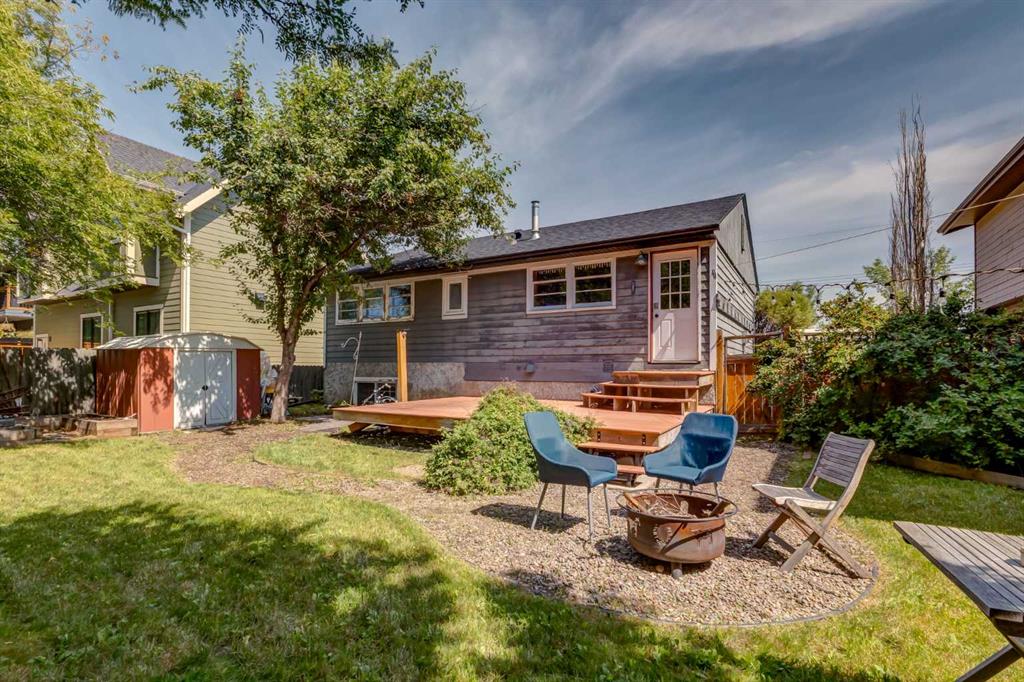 Inside, the main floor is filled with natural light and features original hardwood flooring, upgraded windows, and a well-equipped kitchen with stainless steel appliances, generous cabinetry, and a window overlooking the private backyard. The home was moved to this location in 1985, with new fully developed basement and updated plumbing and electrical systems. The lower level offers additional bedrooms, a full bathroom, a large rec/games room, and ample storage.