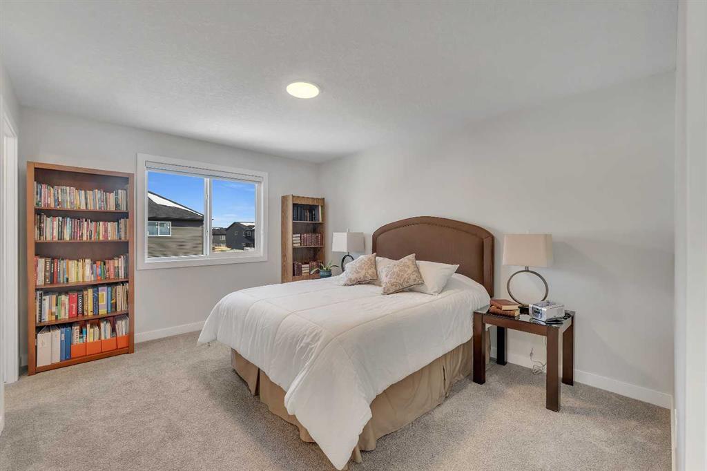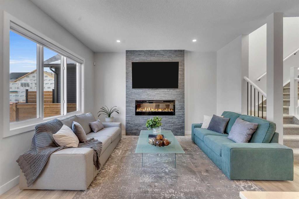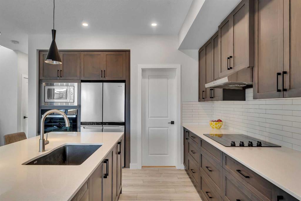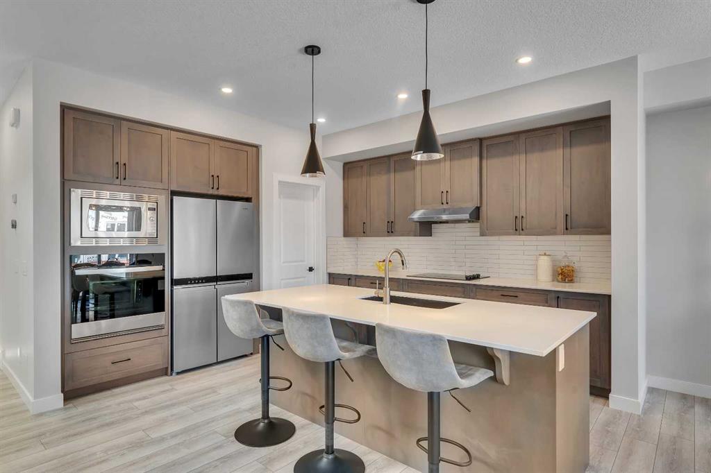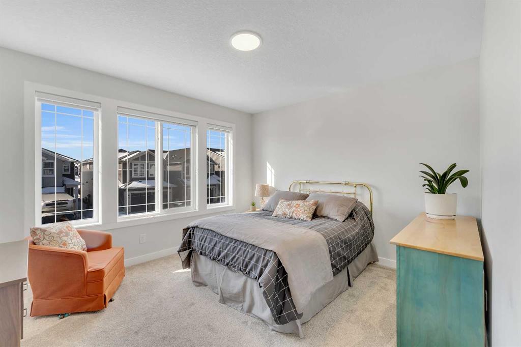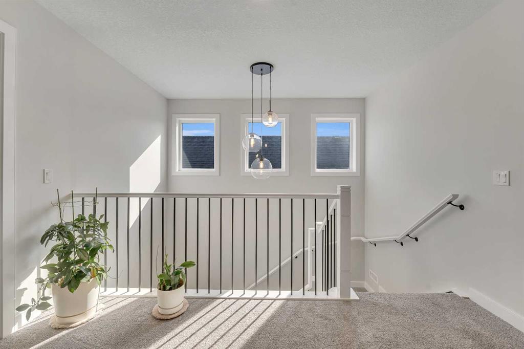 Step into this beautifully upgraded Shane Homes 2023 build, where thoughtful design and quality finishes come together. The open-concept main floor is bright and welcoming, with 9′ ceilings and luxury vinyl plank flooring, and an inviting colour palette is continuous throughout the home. At the heart of the home is a standout, upgraded kitchen that will delight the home’s chef. Featuring a sleek cooktop, built-in oven and microwave, stainless steel appliances, stunning cabinetry, and a large island, it’s the kind of space that is made for entertaining. The adjacent dining area easily hosts family gatherings, while the living room is anchored by a striking floor-to-ceiling fireplace that adds warmth and character. Out back, you’ll find a great-sized yard that’s unspoiled and ready for your vision, whether that’s a deck, landscaping, or a full outdoor retreat. Upstairs, the open space below the stairwell with additional windows and triple-pane glass throughout the home floods the space with natural light. A central bonus room creates separation between the primary suite and the secondary bedrooms. The primary suite is a true retreat, complete with a spacious walk-in closet and a spa-inspired ensuite featuring dual sinks, a soaker tub, and an oversized shower. Added insulation between the garage and bedrooms enhances comfort for family or guests, while a full bathroom and convenient upper-level laundry round out the space. The unfinished basement is a blank canvas, ready for your needs. Located in the desirable community of Cobblestone Creek in Airdrie, this home offers a quieter setting with quick access to parks, pathways, and everyday amenities. It’s a growing area known for its family-friendly feel, modern homes, and easy access to Calgary, making it a smart choice for both lifestyle and long-term value.