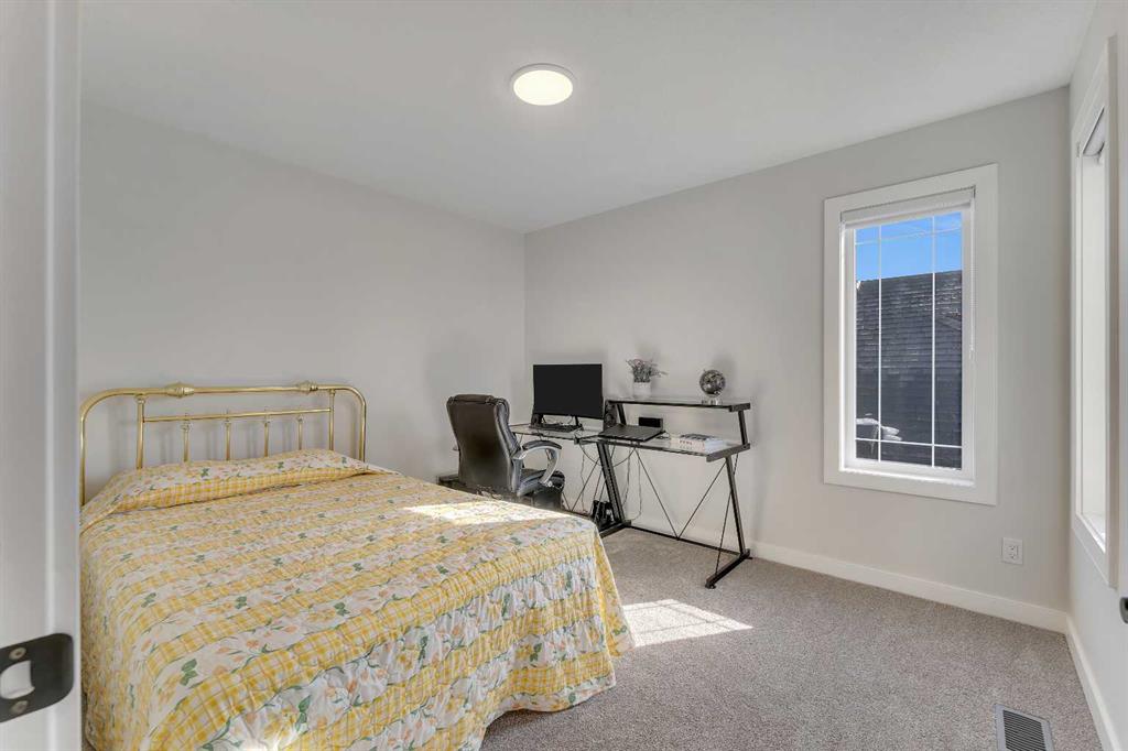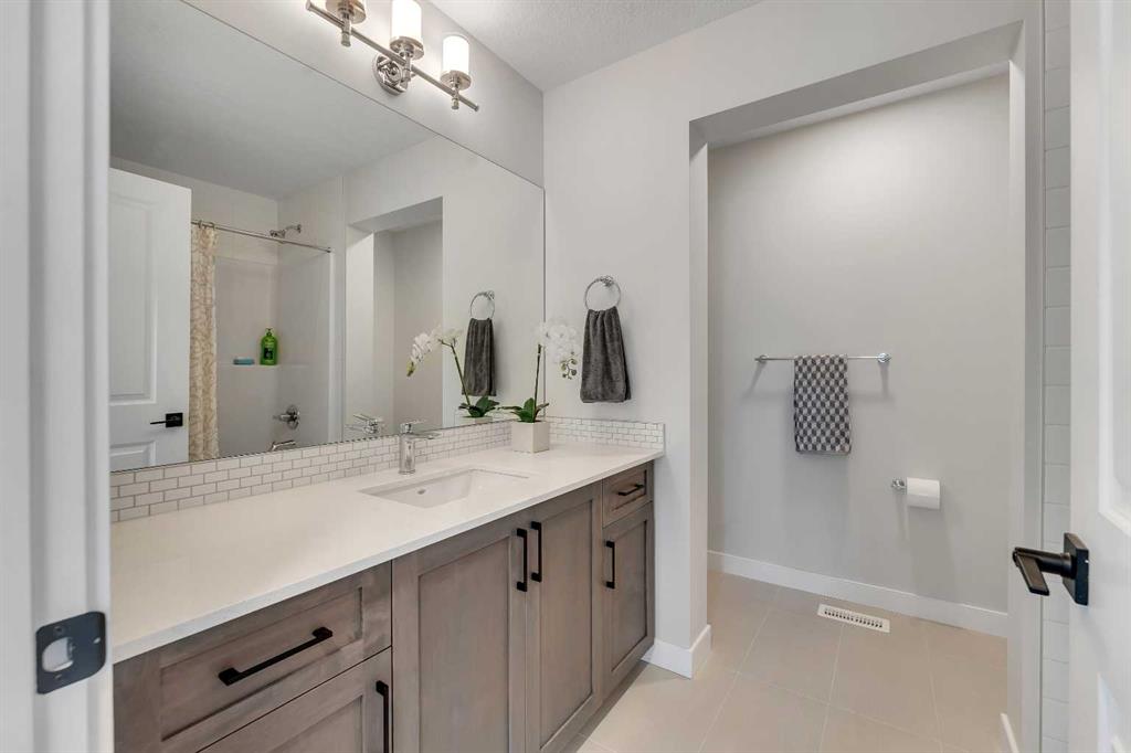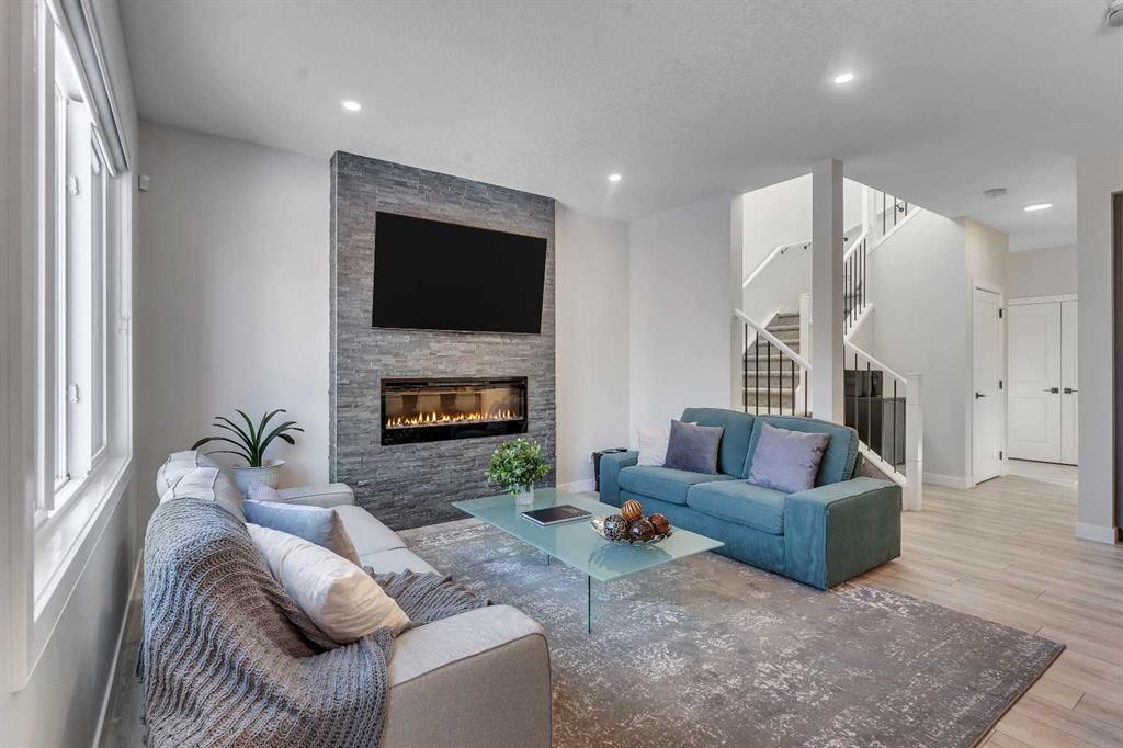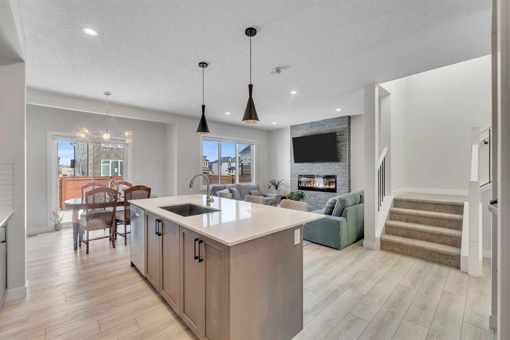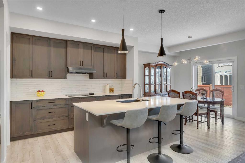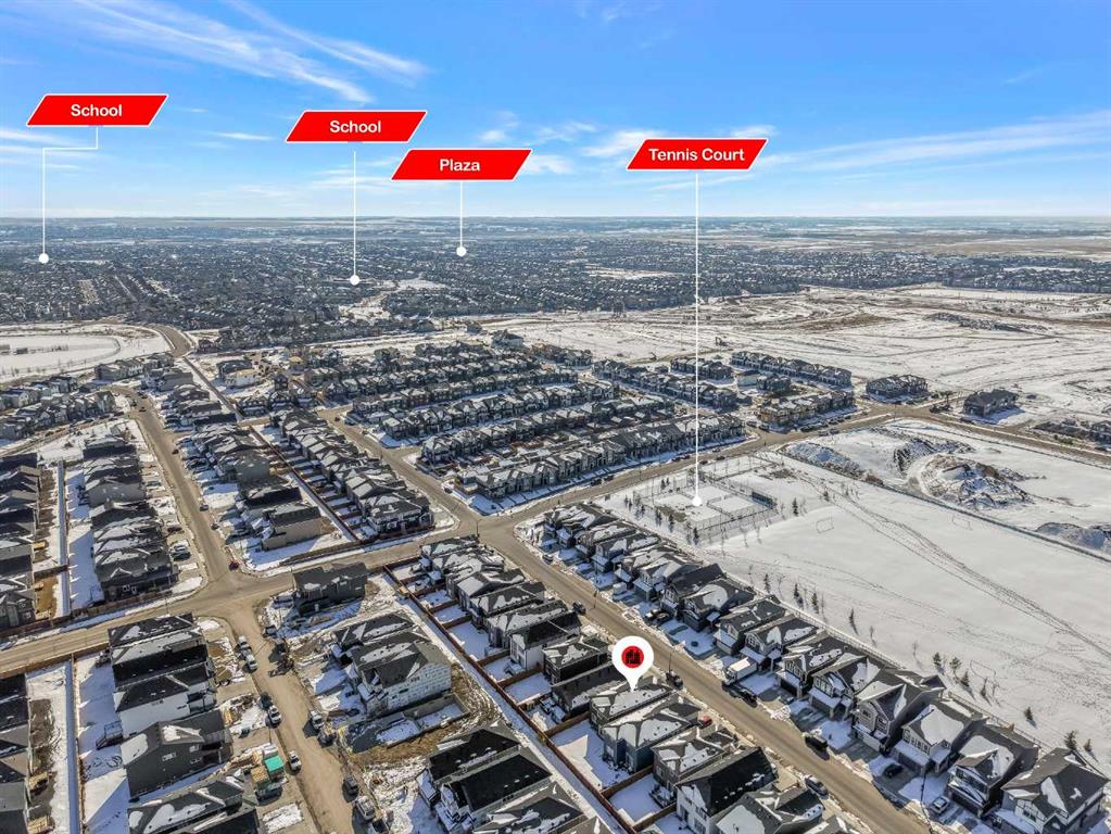 Step into this beautifully upgraded Shane Homes 2023 build, where thoughtful design and quality finishes come together. The open-concept main floor is bright and welcoming, with 9′ ceilings and luxury vinyl plank flooring, and an inviting colour palette is continuous throughout the home. At the heart of the home is a standout, upgraded kitchen that will delight the home’s chef. Featuring a sleek cooktop, built-in oven and microwave, stainless steel appliances, stunning cabinetry, and a large island, it’s the kind of space that is made for entertaining. The adjacent dining area easily hosts family gatherings, while the living room is anchored by a striking floor-to-ceiling fireplace that adds warmth and character. Out back, you’ll find a great-sized yard that’s unspoiled and ready for your vision, whether that’s a deck, landscaping, or a full outdoor retreat. Upstairs, the open space below the stairwell with additional windows and triple-pane glass throughout the home floods the space with natural light. A central bonus room creates separation between the primary suite and the secondary bedrooms. The primary suite is a true retreat, complete with a spacious walk-in closet and a spa-inspired ensuite featuring dual sinks, a soaker tub, and an oversized shower. Added insulation between the garage and bedrooms enhances comfort for family or guests, while a full bathroom and convenient upper-level laundry round out the space. The unfinished basement is a blank canvas, ready for your needs. Located in the desirable community of Cobblestone Creek in Airdrie, this home offers a quieter setting with quick access to parks, pathways, and everyday amenities. It’s a growing area known for its family-friendly feel, modern homes, and easy access to Calgary, making it a smart choice for both lifestyle and long-term value.