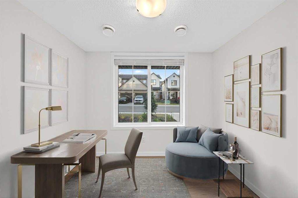 The entry level features a versatile office or den with a large window—perfect for working from home or creating a quiet reading nook—along with access to a single attached garage and driveway for added convenience.