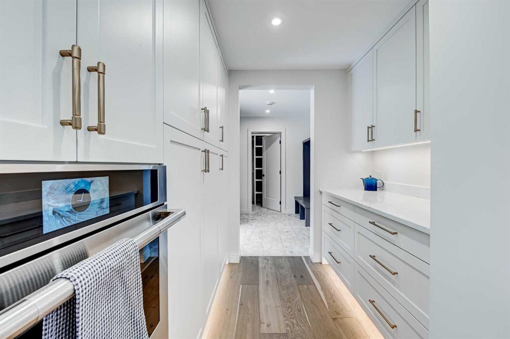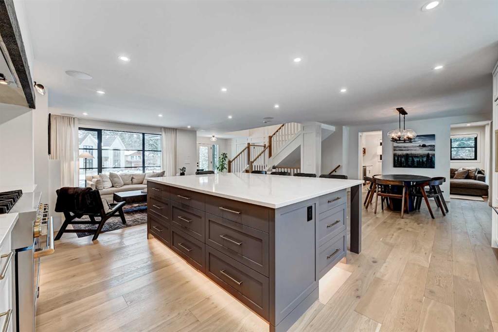 ** Open House Saturday March 28th & Sunday March 29th from 2pm-4pm! ** Rare opportunity in Lakeview Village to own a fully rebuilt home (2025) situated on one of the community’s largest lots—a 17,200 sq. ft. pie-shaped property backing directly onto the west side of North Glenmore Park. This exceptional custom residence offers approximately 3,700 sq. ft. of developed living space, with architecture by Andison Residential Design, interiors by Lori Sellimer, and construction by Ashwood Built. Over $1M has recently been invested in a complete transformation of this exclusive home. The property features 6 bedrooms, 3 full bathrooms, and 1 powder room, along with a new upper-level laundry room and an additional laundry area in the lower level. Nearly every component has been updated, including insulation, triple-pane windows, mechanical systems, plumbing, and electrical. Hardwood flooring extends throughout the main and upper levels. The main floor showcases an open-concept kitchen, dining, and living area, complemented by an enclosed office, additional den/flex space, powder room, and large mudroom including custom built-ins with direct access to the attached garage. The upper level offers 4 bedrooms and 2 full bathrooms, including a spacious primary suite with a large walk-in closet and full ensuite; all upper bathrooms feature in-floor heating. The lower level includes 2 additional bedrooms, a full bathroom, and a generous flex/recreation space. Exterior upgrades include new Hardie board siding with stone accents, new roof shingles, a covered Trex composite deck, and a fully installed irrigation system for both front and rear yards, along with direct gated access to North Glenmore Park. The attached garage is equipped with an additional electrical panel and is vehicle charging ready. Other notable features include central A/C, gas fireplace, custom window coverings, built in speakers in and out, water softener, kitchen drinking water filtration, on demand hot water, cover rear patio, & 200 amp service. This is a rare chance to own a move-in-ready home in a highly sought-after location.