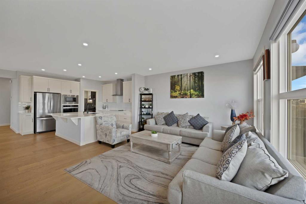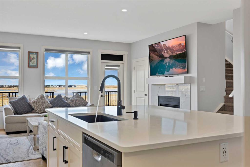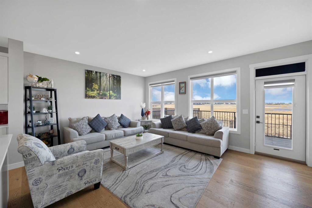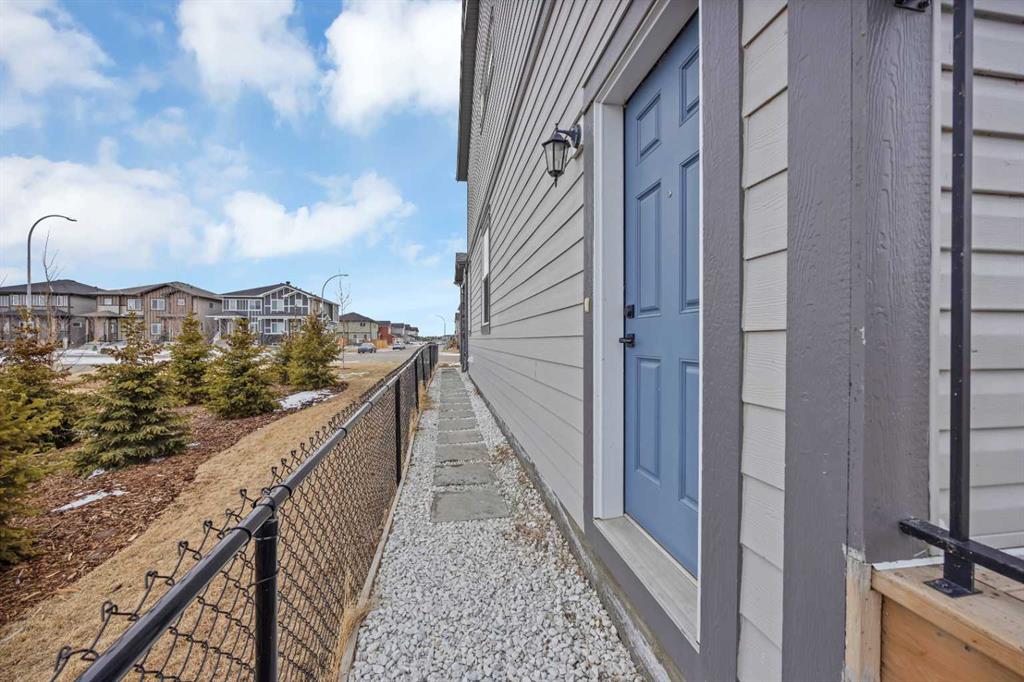 Welcome to this beautifully designed front garage home located in the highly desirable community of Cornerstone, Calgary, perfectly positioned on a premium corner lot backing onto tranquil pond-facing green space with additional green space along the side, offering exceptional privacy, scenic views, and an abundance of natural light throughout the day. This impressive property features a bright and spacious open-concept layout with a huge living area that is ideal for both entertaining guests and comfortable family living. The main floor showcases a modern kitchen complete with stainless steel appliances, granite countertops, ample cabinetry, and a dedicated spice kitchen, providing added functionality and convenience for everyday cooking. Large windows throughout the home create a warm and inviting atmosphere while maximizing the surrounding views. Upstairs, you will find four generously sized bedrooms, offering plenty of space for growing families, including a spacious primary retreat designed for relaxation. The thoughtful layout ensures both comfort and practicality in every corner of the home. Step outside to a full deck overlooking the peaceful green space, perfect for outdoor gatherings, summer barbecues, or simply unwinding in a serene setting. The corner lot location enhances curb appeal while providing additional outdoor space and flexibility. This home is ideally situated close to shopping plazas, parks, schools, and a variety of everyday amenities, making it a perfect choice for families seeking both convenience and lifestyle. With its prime location, functional design, and beautiful surroundings, this property presents a rare opportunity to own a stunning home in one of Calgary’s fastest-growing and most sought-after communities.