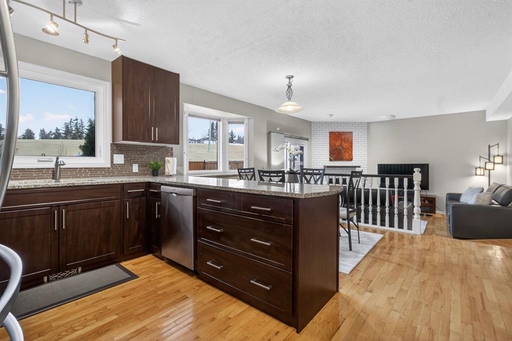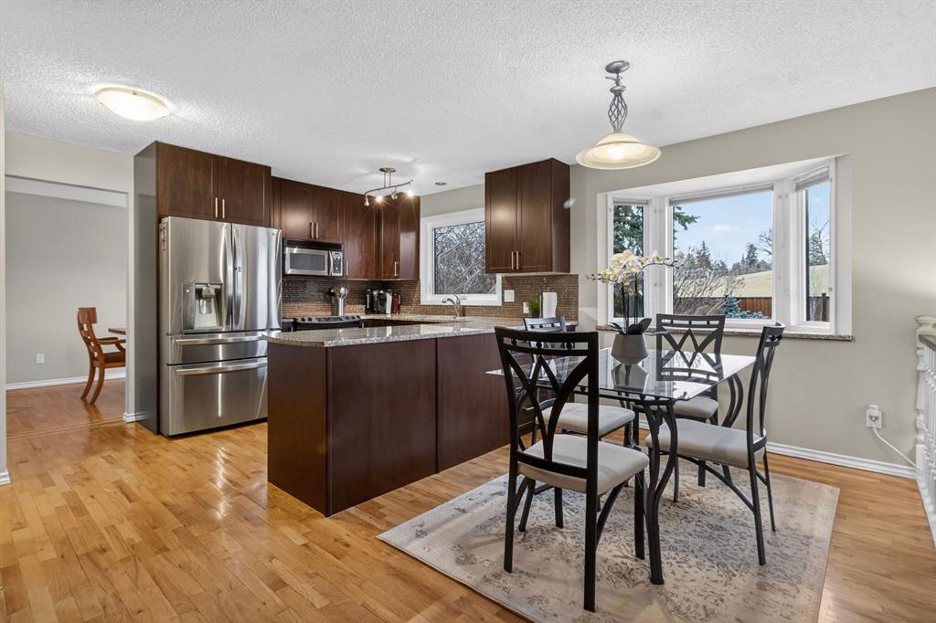 **OPEN HOUSE – FEBRUARY 7, 2026 FROM 12:00 P.M. – 2:00 P.M. ** Welcome to this beautifully updated family home tucked into the heart of Beddington Heights, where comfort, warmth, and everyday convenience come together perfectly. From the moment you step inside, a spacious front foyer sets the tone and leads you into a bright, welcoming living room and elegant formal dining area, the perfect setting for holidays, celebrations, and unforgettable gatherings with family and friends. Rich hardwood floors flow throughout, while the attached double garage makes daily life effortless. At the heart of the home, the open-concept kitchen invites connection and conversation, featuring a large granite island and space for casual dining. Just a few steps down, the sunken family room creates a cozy retreat, complete with a wood-burning fireplace and newer patio door that open to the backyard, a seamless blend of indoor comfort and outdoor living. Step outside and fall in love with the huge south-facing yard backing directly onto peaceful green space. Framed by a new metal fence, this private outdoor oasis is perfect for summer entertaining, kids at play, and pets to roam freely in the sunshine. The main floor also offers a beautifully functional office with custom built-ins and a stylish 2-piece powder room with additional storage, thoughtfully designed for modern family living. Upstairs, three spacious bedrooms provide room for everyone to unwind. The primary retreat is truly special, featuring its own private balcony, a warm gas fireplace, and a 4-piece ensuite — your personal sanctuary for quiet mornings and peaceful evenings. The fully developed basement expands your living space even further with a large family room, a second gas fireplace, laundry, and abundant storage, ideal for movie nights, hobbies, and growing families. This home has been upgraded throughout, including an updated kitchen, newer hot water tank (2021), rubber driveway and garage pad, hail-resistant shingles (2022), new patio doors, new steel fence, new attic insulation, 11 solar panels, central air conditioning, new windows, and a powder-coated exterior designed for long-lasting durability. Perfectly located close to schools, shopping, transit, and Nose Hill off-leash dog park, this home offers the rare combination of thoughtful upgrades, incredible outdoor space, and an unbeatable location. Don’t miss your chance to fall in love with this one of a kind Beddington Heights home backing onto green space.