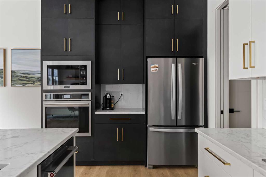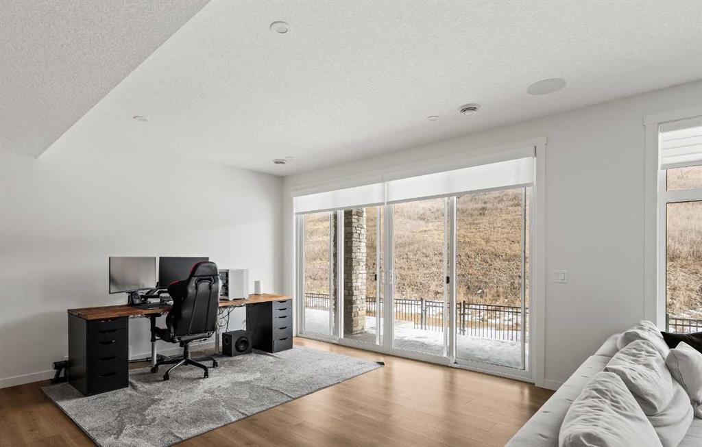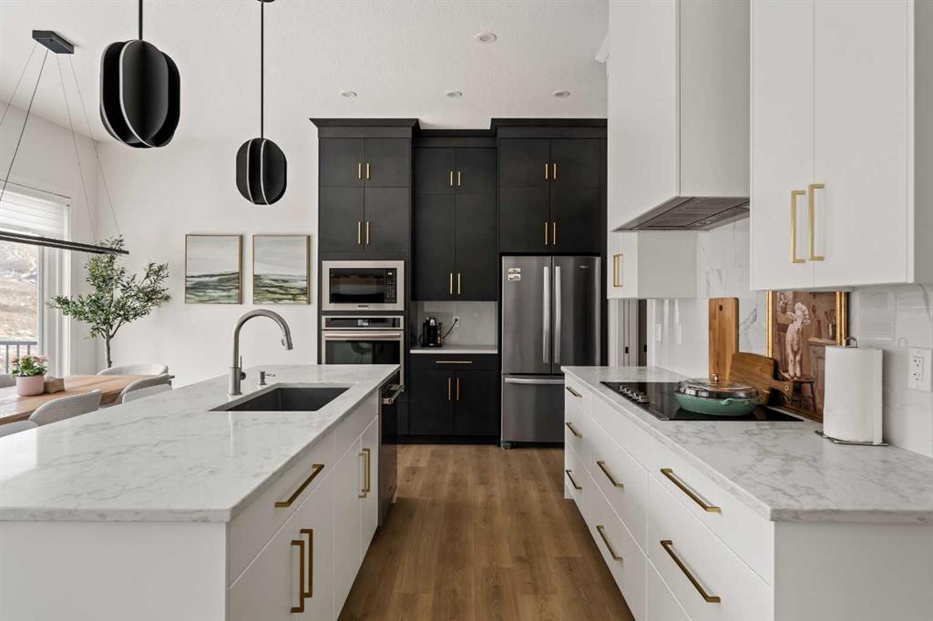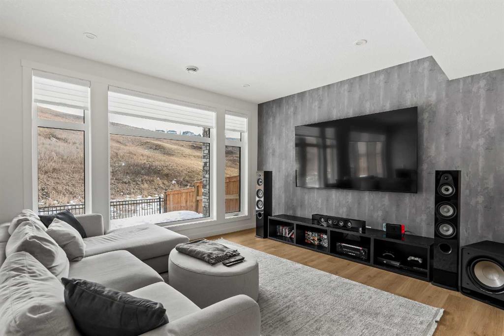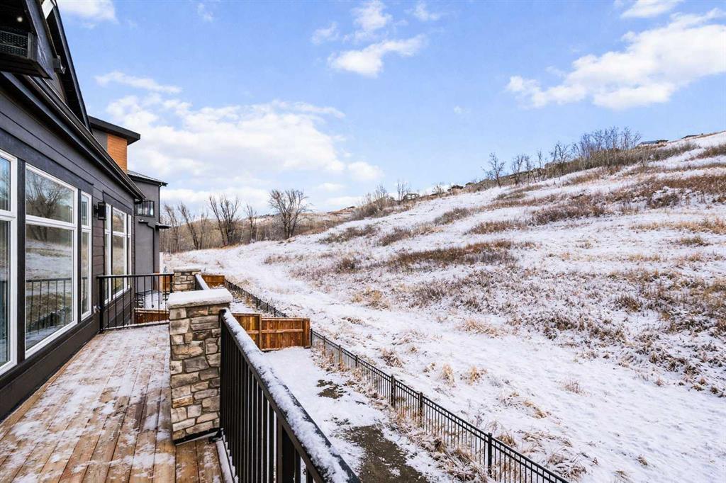 An Exceptional Luxury Residence offering unobstructed views of the picturesque escarpment hills in Cranston’s prominent community of Riverstone. Nestled on a quiet cul-de-sac pie lot in the Bow River Valley & surrounded by the natural scenery of Fish Creek Park this like-new custom bungalow is the perfect balance of relaxed sophistication, contemporary design & thoughtful functionality. The inspired interior delivers over 2700 SF of curated living space where the main floor’s open kitchen, dining & living areas showcase high calibre finishes. Two-toned extended cabinets, stunning quartz, & stainless-steel appliances bring style & function to the luxe kitchen boasting a wealth of storage, induction stove-top, quartz counters, oversized pantry & an island with seating for 3. The dining & living areas sit across a backdrop of expansive glass with viewpoints to the escarpment & provides access to the rear deck. A custom credenza & floating shelves elevate the inviting fireplace bringing an air of casual elegance to the sunlit living room. The spacious owner’s suite features a large primary bedroom with beautiful views & gorgeous floor-to-ceiling window coverings, an indulgent spa-like ensuite with dramatic vanity & tiling, luxurious stand-alone tub, separate oversized shower & heated floors! Built-in shelving provides organization to the walk-in closet while a folding table & extra storage bring added convenience to the laundry room. Completing the main floor is a charming powder room detailed with designer wallpaper & a spacious mudroom offering ample room for storage & a small workstation. The warm vinyl plank flooring extends down the staircase & throughout the fully developed walk-out lower level. Finished to the same exacting standards this floor likewise enjoys uninterrupted views while providing direct access to the lovely patio. Two generous bedrooms offer flexibility for a variety of lifestyle needs — one capturing the escarpment views & boasting custom drapery & the other featuring its own walk-in closet making them equally well-suited as a guest room, home office, or a gym. A 2nd full bathroom with heated floors rounds off this delightful level. Not to be outdone by the extraordinary interior, the exterior’s sleek appearance creates a sense of arrival. The private backyard is a peaceful spot to host summer barbecues or simply unwind under the stars. Other highlights of this remarkable property incl. 1) 10’ ceilings & 8’ doors, 2) ceiling speakers, 3) water softener, 4) a/c & 5) double garage with additional height & wired for EV charger. Please see a full list of features in the supplements. A short stroll to the river & scenic pathways & easy access to Deerfoot & Stoney Trails & the Cranston Resident’s Association at Century Hall offering indoor & outdoor recreational amenities, programs & events, & banquet & meeting room rentals. This exquisite gem delivers it all – a beautiful home nestled in nature, an active lifestyle & a connected community.