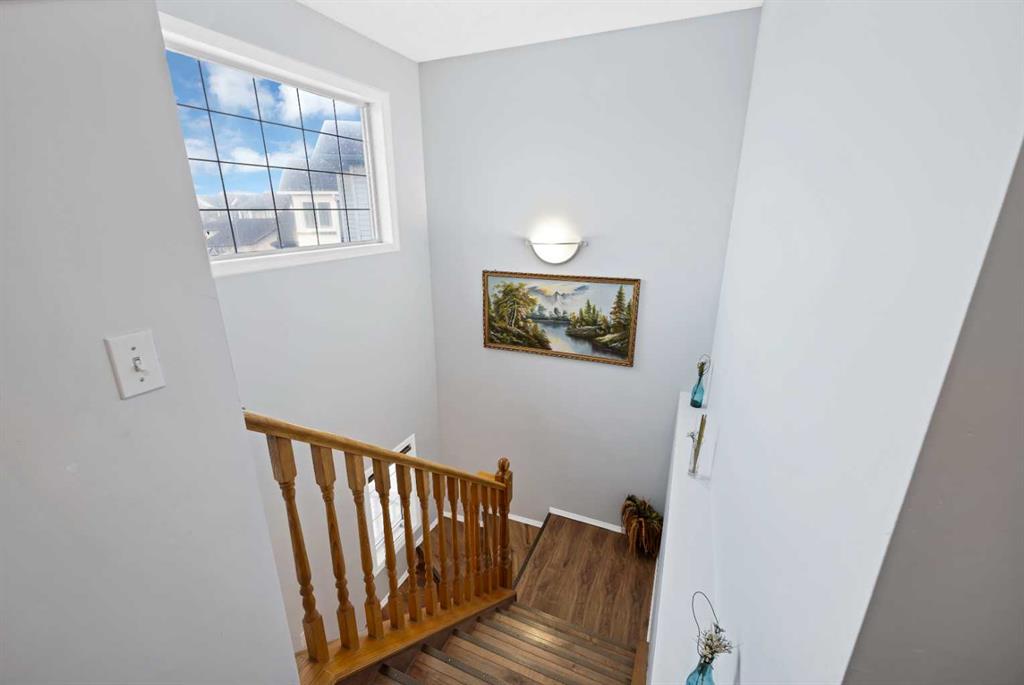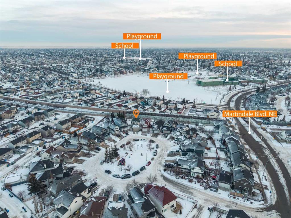 Excellent location in a quiet cul-de-sac with a fully insulated double attached garage. Features a 1-bedroom legal suite with separate side entrance and laundry. Situated across from a playground, just 5 minutes to Crossing Park School and 3 minutes to Martindale LRT. Large pie-shaped lot with a southwest-facing backyard. Bright kitchen with white cabinetry and a functional island.