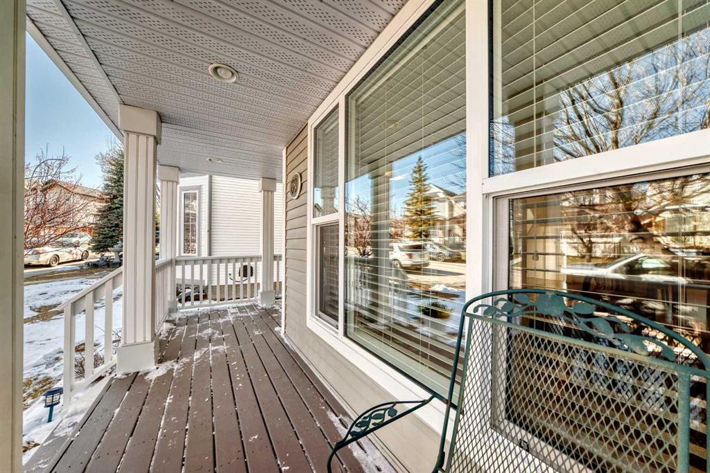 Set on a quiet street near parks, ravines, and schools, the home greets you with a covered front veranda — the kind of porch made for shoulder-season mornings, summer afternoons, and watching Calgary do its weather thing in comfort.