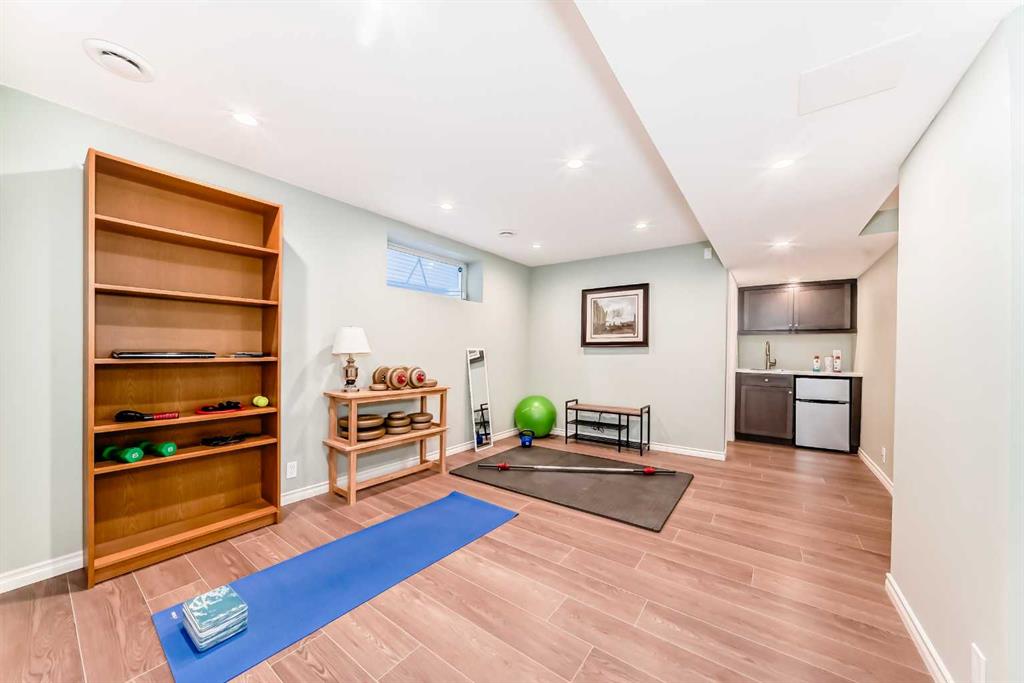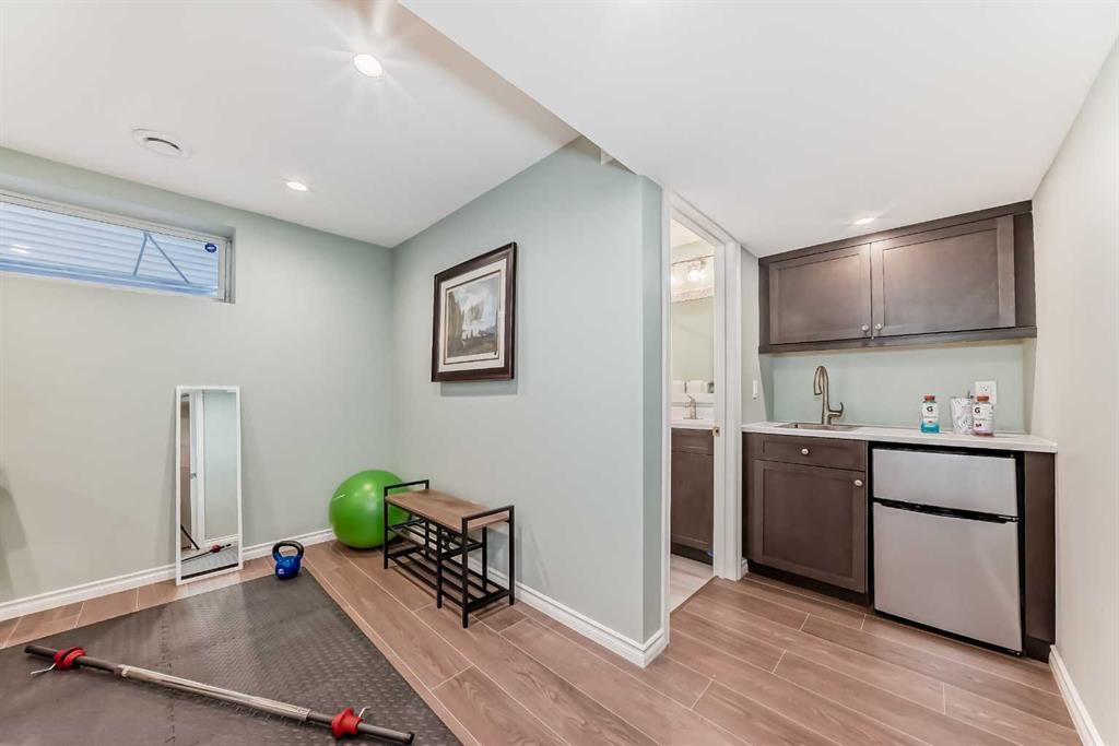 The fully finished, permitted basement is the entertaining wing: a 4th bedroom, a 4-piece bath, and a wet bar with deep sink and bar fridge make it perfect for movie nights or hosting. DriCore subfloors keep it warm underfoot, and the laundry/utility room features a front-loading washer-dryer dream team and bonus storage.