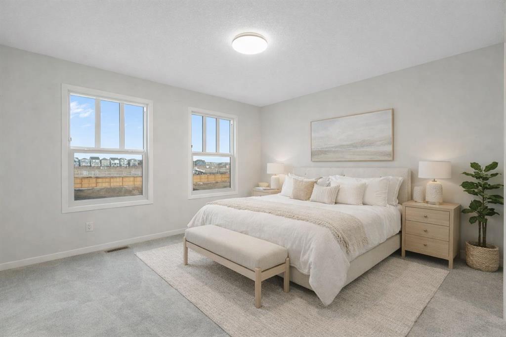 Welcome to a home where fresh beginnings feel natural. Set in Logan Landing, one of southeast Calgary’s newest and most exciting master planned communities, this brand new Cedarglen Homes build offers the kind of thoughtful design that makes everyday living feel elevated and easy. From the moment you step inside, the light draws you in. OVERSIZED WINDOWS pour sunshine across the main floor, creating a bright, open atmosphere that instantly feels welcoming. The heart of the home is a beautifully designed kitchen that balances style and function. Anchored by a large island with quartz countertops and contemporary cabinetry, it is a space made for morning coffees, casual dinners, and conversations that linger. You will have the opportunity to personalize it with a $6,900 APPLIANCE ALLOWANCE through the builder’s supplier, adding your own finishing touch. The kitchen flows seamlessly into the dining and living areas, creating an OPEN CONCEPT layout that keeps everyone connected. Just beyond, the back deck invites summer grilling and quiet evenings under open skies. A practical mudroom and tucked away powder room complete the main floor with intention and ease. Upstairs, the layout continues to impress. Three spacious bedrooms each feature their own WALK IN CLOSETS, a rare detail that keeps daily life organized and clutter free. The primary suite feels calm and refined, with room to unwind at the end of the day. Its spa inspired ensuite offers DOUBLE VANITIES and a glass WALK IN SHOWER, creating a space that feels both functional and indulgent. One of the most thoughtful features is the WALK THROUGH CLOSET connecting directly to the upper level laundry room, simplifying busy mornings in the best possible way. The basement is undeveloped and full of potential. With a SIDE ENTRANCE and a 3 piece rough in, the space is ready for your vision. Whether you imagine a future suite (subject to City approval & permits), a home gym, or a media room for cozy nights in, there is flexibility here to grow with you. Outside, the curb appeal is clean and modern. James Hardie siding paired with stone accents gives the home a timeless presence that stands out while still feeling grounded. In Logan Landing, you are not just buying a home, you are becoming part of a growing community designed around connection. Parks, pathways, shops and other amenities are just minutes away, creating a neighbourhood where convenience and lifestyle come together naturally. If you have been waiting for a home that feels fresh, functional, and full of possibility, this is your moment. Come walk through, feel the light, and picture your life unfolding here. Book your private showing today. *Some photos are virtually staged.
