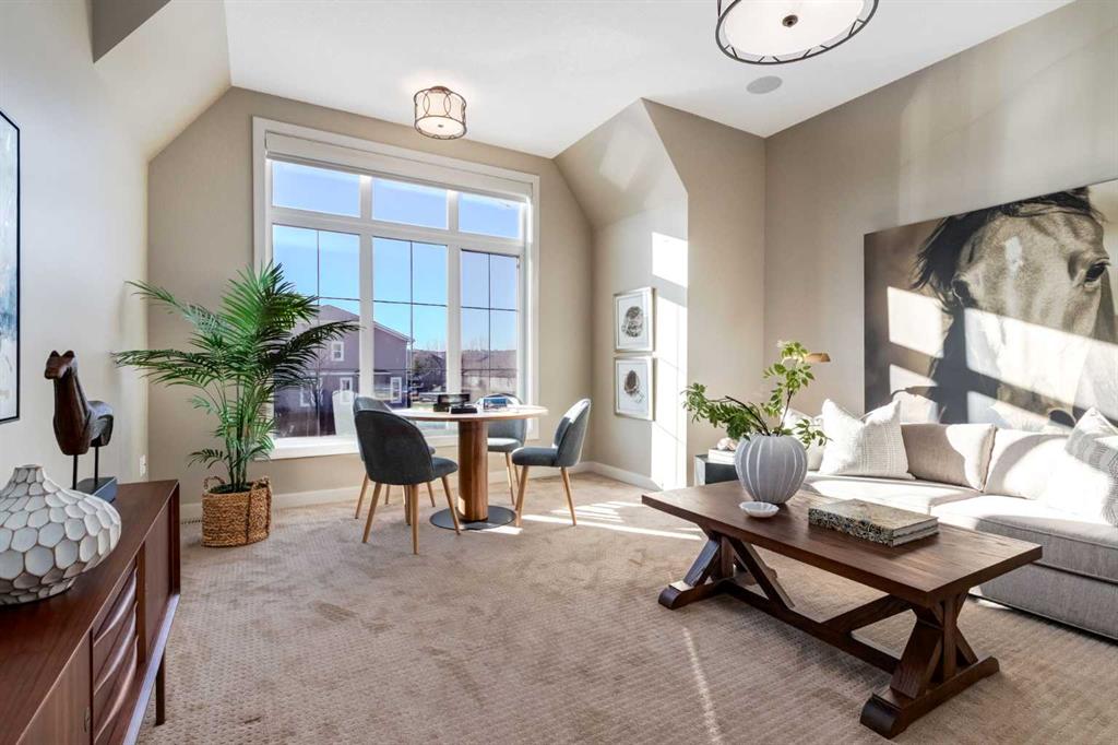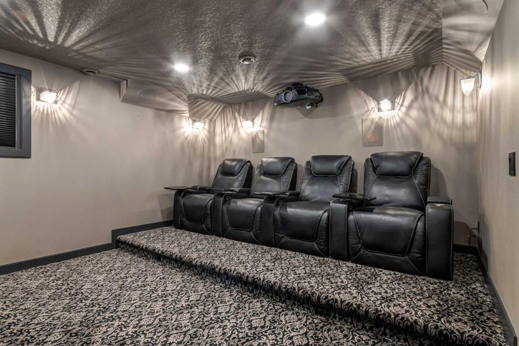 OPEN HOUSE SAT JAN 24 FR 2-4. Understated luxury and style describe this incredible executive home situated within steps to the Bow River and miles of pathway systems thru Fish Creek. Offering 3,751 SF of developed living space with 4+1 bedrooms, 3.5 bathrooms, triple attached garage and walkout basement. You are welcomed into a large, tile foyer to the bright and open main floor where you will find rustic hardwood flooring throughout, high ceilings highlighted by wood beams that adorn the living room with a majestic gas fireplace where you can enjoy backyard views and a spacious dining area allowing ample room to host family and friends. The Chef’s kitchen is centrally located and the heart of the home showcasing custom maple cabinetry, an oversized island with breakfast bar, granite & quartz countertops, undercabinet lighting, walk-in pantry, butlers pantry and top of the line stainless steel appliances including gas range. A mud room with built-ins, home office and 2 piece bathroom complete this space. The upper level hosts a bonus room, primary bedroom featuring a vaulted ceiling, private sitting area, walk-in closet with extensive built-ins and a spa-like 5 piece ensuite with dual vanities, stand alone soaker tub and a separate shower. A conveniently located laundry room and 3 additional bedrooms which share a 4 piece bathroom area also found on this level. The walkout basement is sure to impress with a family room with full service wet bar, a theater room with built in speakers, two-tiered flooring, Lutron lighting and custom carpet, 5th bedroom, 3-piece bathroom and loads of storage space. The low-maintenance backyard, with synthetic grass, backs onto a ravine and provides year around enjoyment with a hot tub on the expansive aggregate patio surrounded by remote control power privacy screens. Further notable features include central ac (x2), Hunter Douglas Silhouette automated blinds, central vacuum system on all levels, built-in speakers on all levels, hot water on demand, touch faucets in the kitchen and bar, underground irrigation system, gem stone exterior lights and the over-sized garage with a dog wash, slat wall motorized lift and can fit a 1-tonne truck. Often referred to as ‘Calgary’s best-kept secret’, this premier estate community is conveniently located just minutes from South Health Campus, Seton YMCA, numerous schools, restaurants, shopping centers, and more. Schedule your showing today and discover everything this stunning home and thriving community have to offer!