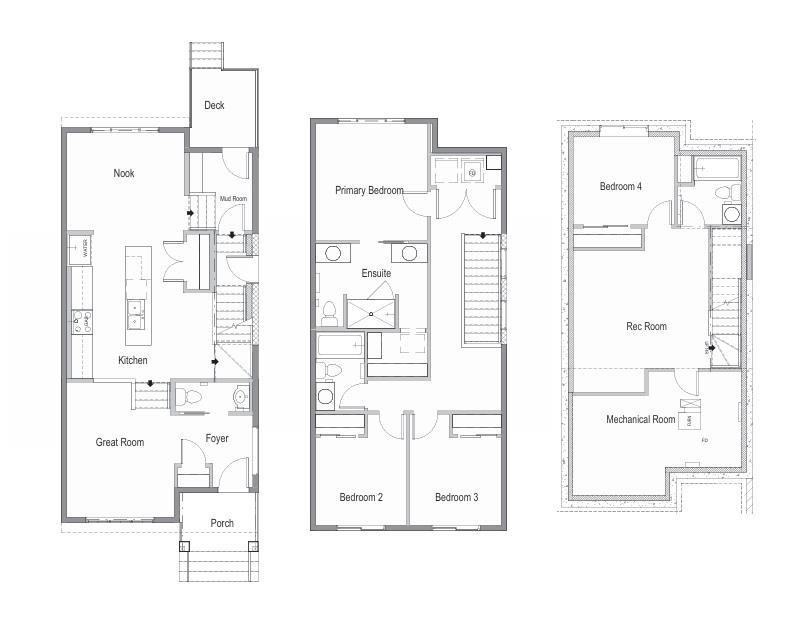 Every detail of this home is designed to elevate everyday living. Welcome to The Strathcona by Cedarglen Homes. A stunning four-bedroom laned home in the heart of Logan Landing, one of southeast Calgary’s most exciting new communities. Thoughtfully planned, beautifully finished, and built for the way modern families live. This home blends style, comfort, and flexibility in all the right ways. Step inside and feel the light pour in. The open-concept main floor flows effortlessly with luxury vinyl plank flooring throughout, setting a warm contemporary tone. The kitchen is the showpiece – where form meets function – anchored by a long quartz island perfect for meal prep, morning coffee, or casual conversations with friends and family. Sleek hardware and designer finishes add a touch of sophistication, while pot lighting keeps the space bright and inviting. You’ll also receive a $6,900 appliance allowance to personalize your kitchen at the builder’s supplier – a chance to make it truly yours. Just steps below, the great room rises with soaring ceilings, creating a sense of openness and drama ideal for entertaining or cozy nights in. The adjacent dining nook, framed by a large window, invites natural light and easy connection between indoors and out. Step onto the finished rear deck, ready for weekend BBQs, evening unwinds, or quiet mornings overlooking your private backyard. Upstairs, thoughtful design keeps life flowing smoothly. The primary suite is a serene retreat, featuring a walk-in closet and a spa-inspired ensuite with dual sinks and a tiled walk-in shower. Two additional bedrooms, a stylish full bathroom, and an upper laundry room bring everyday convenience right where you need it. Downstairs, the fully developed basement extends your living space with a spacious rec room – perfect for movie nights, a home gym, or a kids’ play zone. A fourth bedroom, another full bathroom, and a separate side entry add flexibility for guests, extended family, or even future rental potential. Logan Landing is Calgary’s hidden gem. Nestled along the Bow River valley, this community connects you to nature with walking trails, playgrounds, and endless outdoor spaces just beyond your doorstep. Here, neighbours still say hello, kids ride bikes till dusk, and the city’s best amenities are just minutes away. It’s where peaceful living meets everyday convenience – a place you’ll be proud to call home. Move-in ready and designed to impress, the Strathcona checks every box from curb appeal to comfort, from design to flexibility. Ready to experience it for yourself? Book your private tour today and discover why life feels better at Logan Landing. *Some photos are virtually staged.